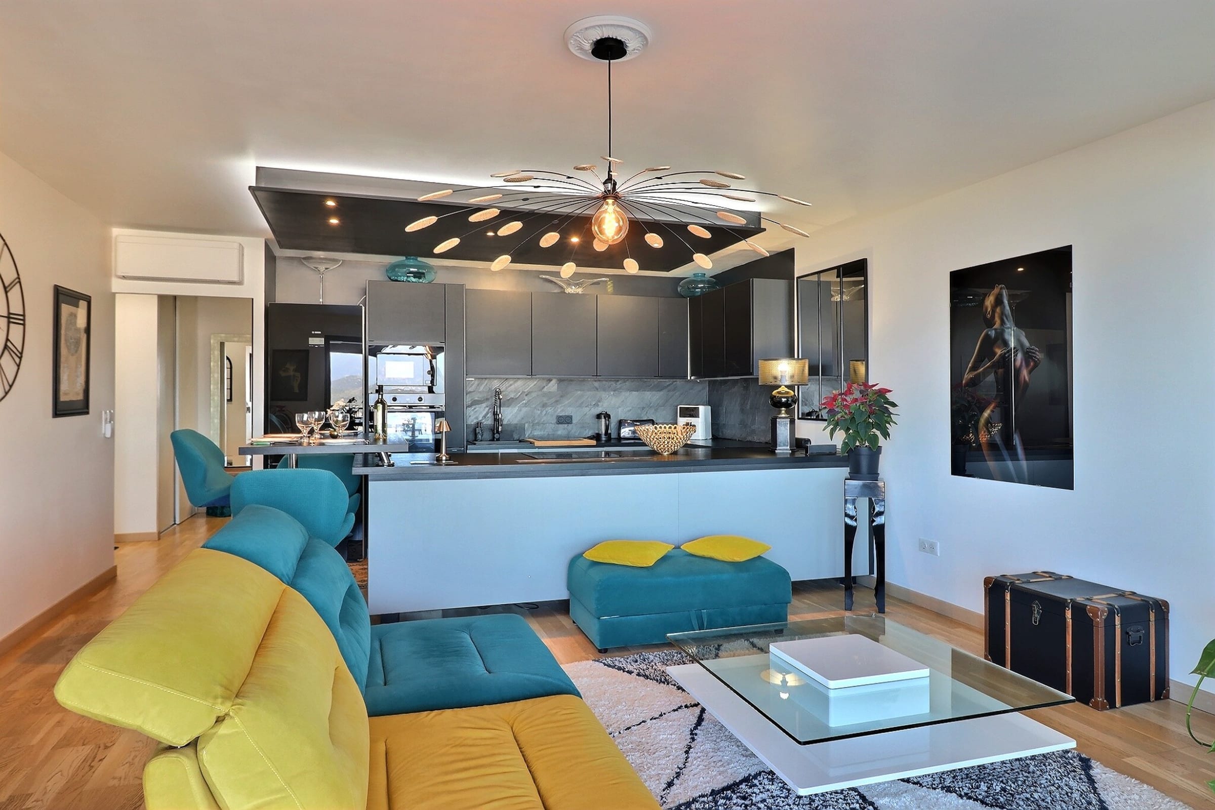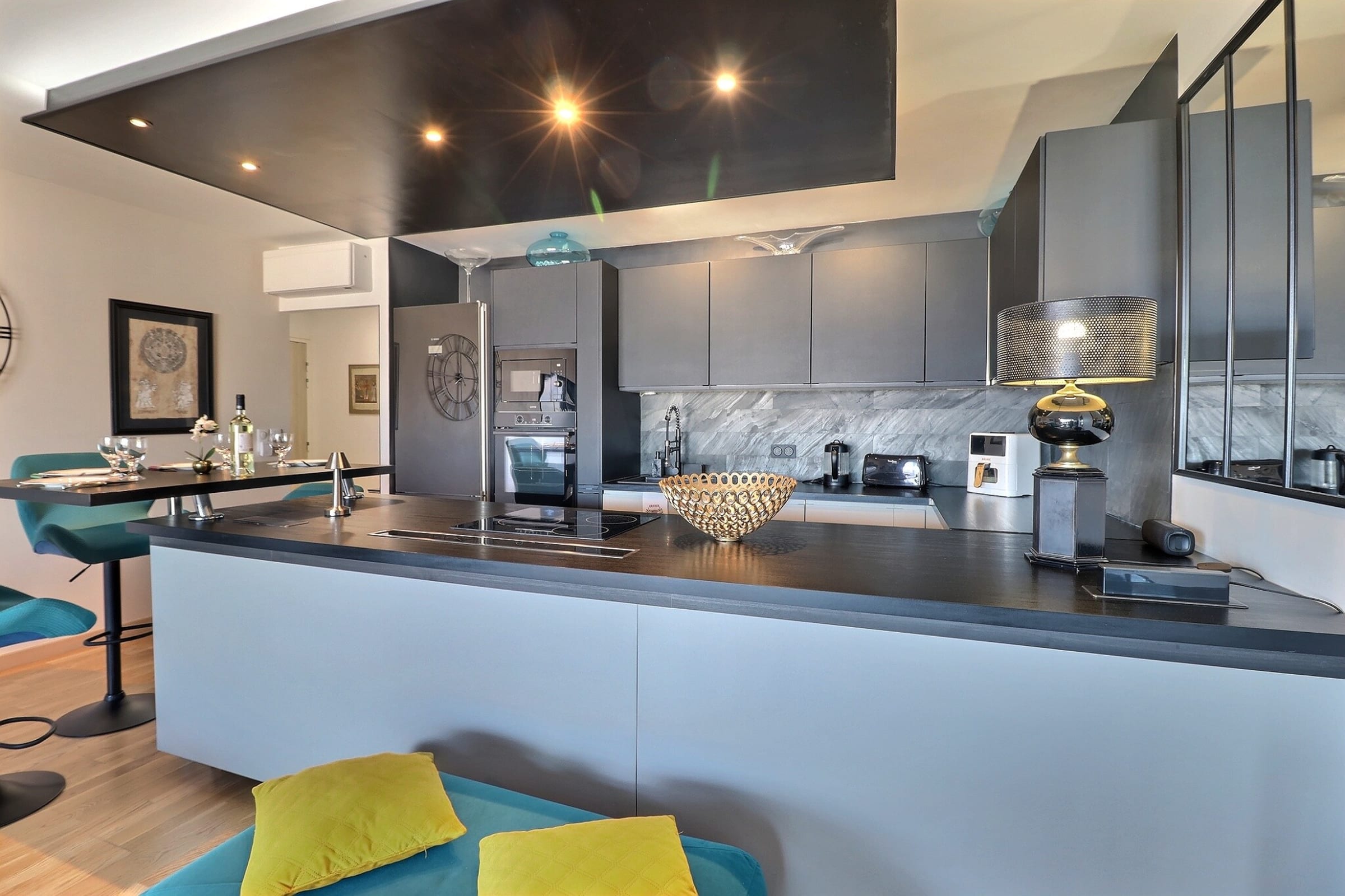 The apartment is located within a secure, high-end residence. A private underground parking space completes the property, ensuring comfort and peace of mind from the moment you arrive.
