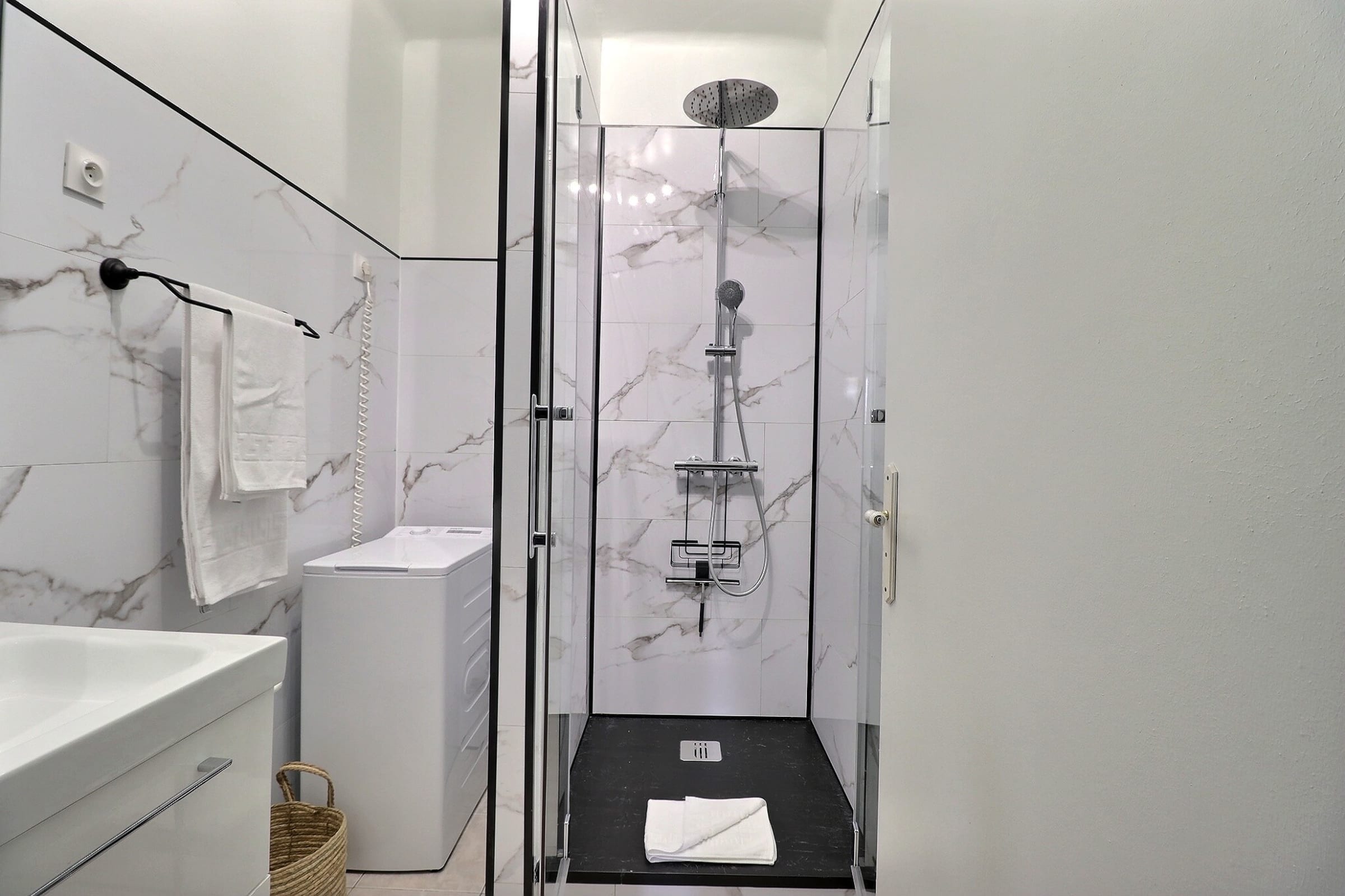 The sleeping area has been thoughtfully arranged to ensure peace and comfort, while the renovated bathroom offers modern amenities with clean, elegant finishes.