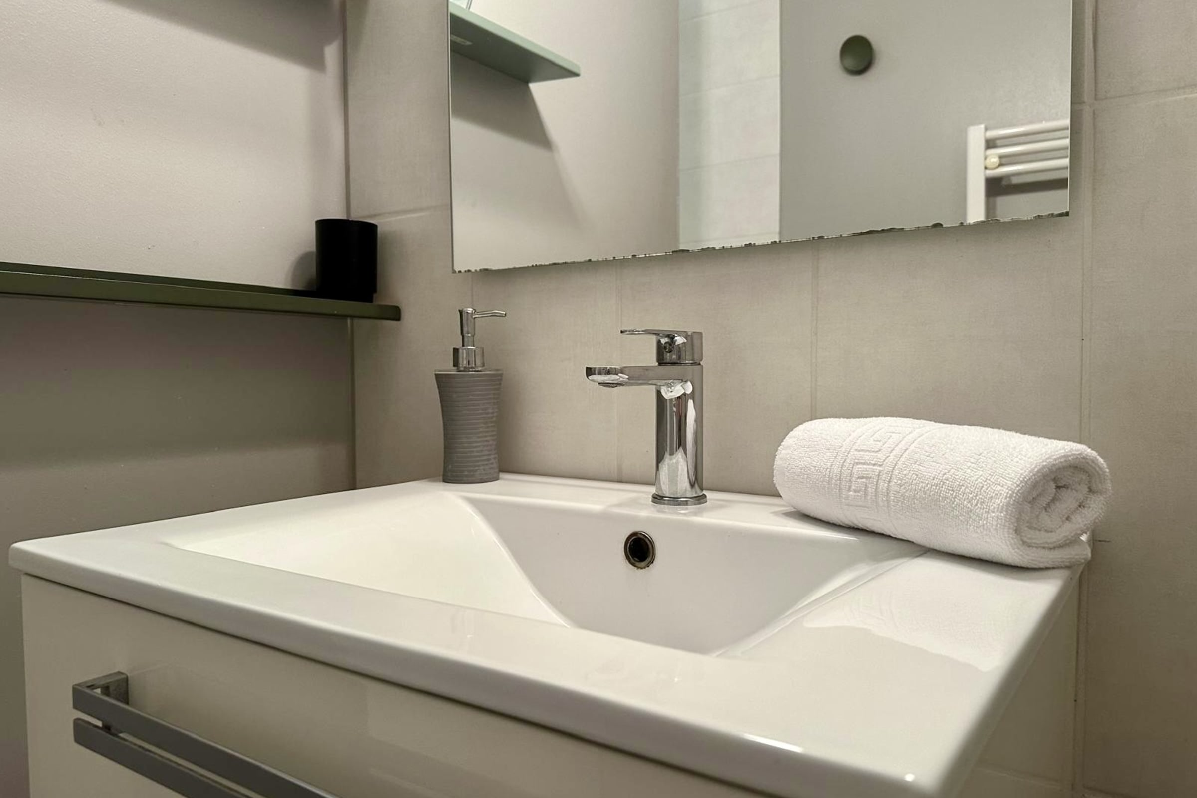 - 1 bathroom with shower, single sink