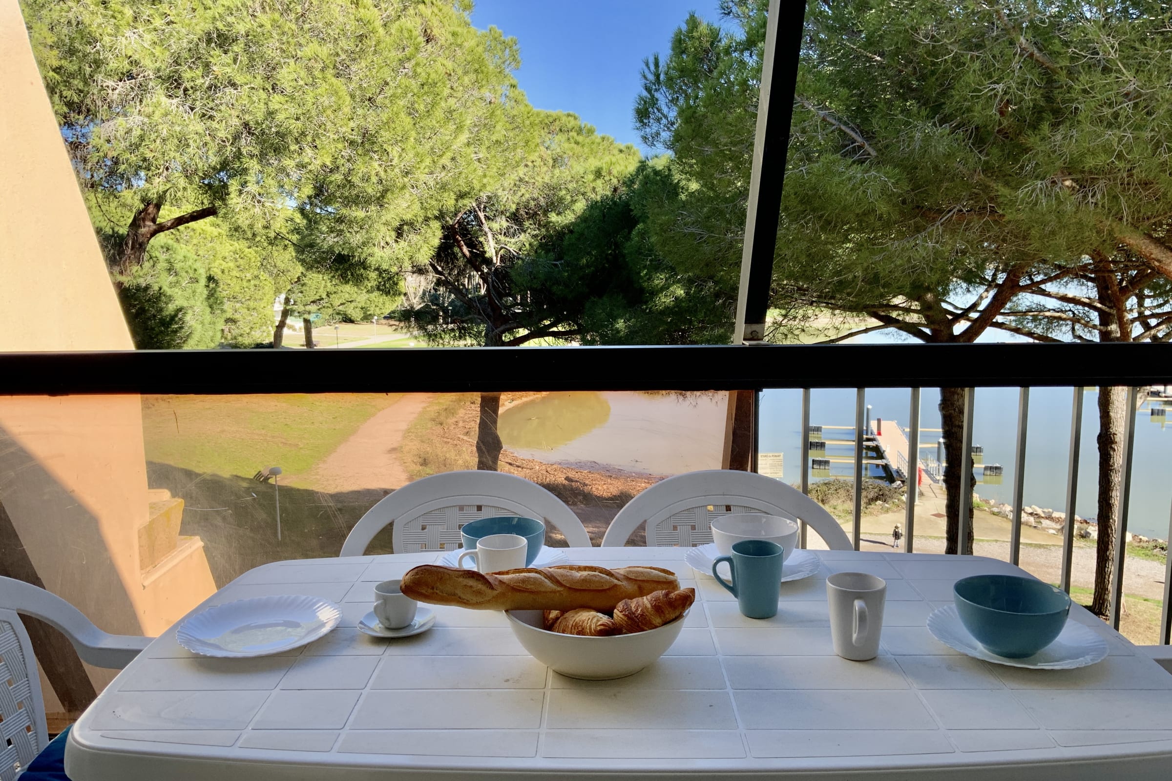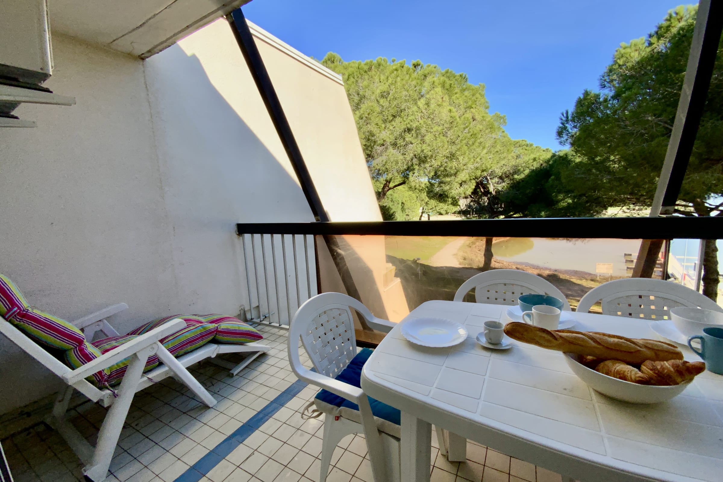 • A beautiful furnished balcony with an outdoor dining table and electric plancha, offering an open view of Étang du Ponant — a real bonus for outdoor meals and peaceful evenings