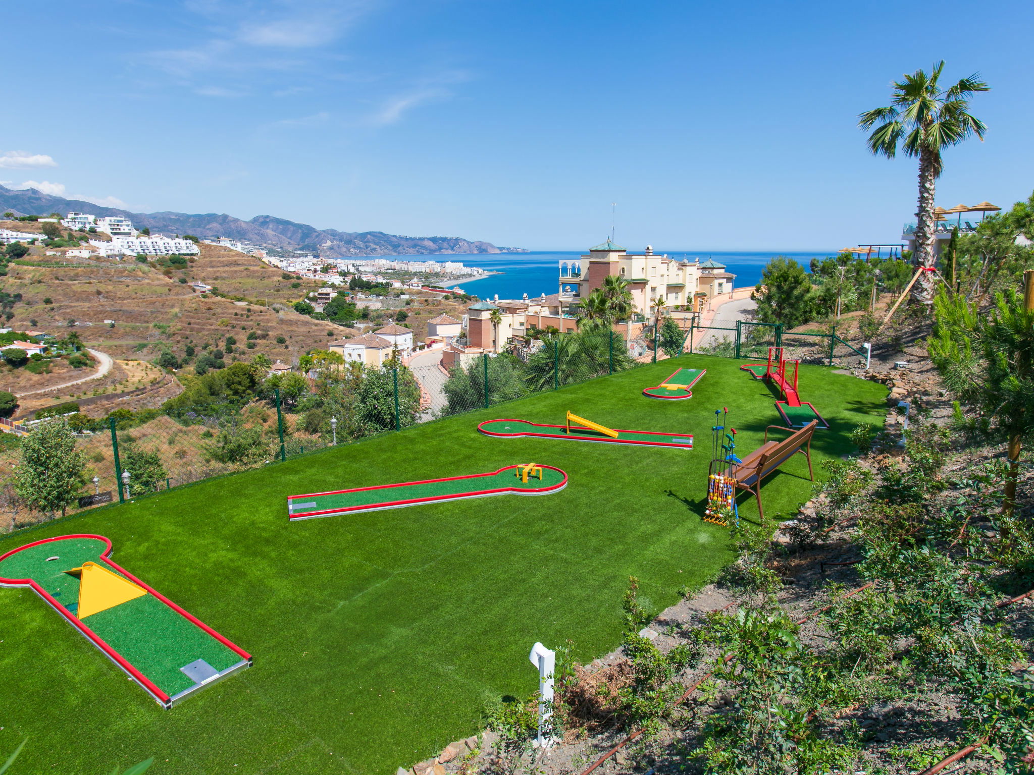 Facilities within the community available: indoor lap pool, indoor gym, outdoor gym, mini golf, padel court, basket and futbol pitch, movie theatre, golf simulator, pool for swiming. Very beautiful, cosy apartment block "D´Mediterranea private pool & sauna". 1.5 km from the beach. For shared use: 4 swimming pools, indoor pool (depth 100 - 175 cm, seasonal availability: 01.Jan. - 31.Dec.). Children's pool, outdoor shower, hot tub, table tennis, basketball, arbour, pergola, terrace, garden furniture, barbecue, children's playground (slide, swing), pool maintenance by the owner/gardener. Private: swimming pool (2 x 4 m, depth 100 - 100 cm, seasonal availability: 01.Jan. - 31.Dec.). In the house: lounge with TV, sauna, fitness room, steam room, hot tub (all included), spa area, table tennis (all included), billiard table, playroom, table football, lift, air conditioning. Roofed, parking space n 38. Bus stop 500 m, pebble beach "Calaceite" 700 m, diving center 1.5 km. Sports harbour 17 km, marina 1.7 km, golf course (18 hole) 23 km, tennis 1.5 km. Nearby attractions: Aquatropic, Cuevas de Nerja, Acantilados de Maro, Museo de Nerja, Museo de Miel de Caña, Pueblo de Frigiliana. Well-known ski regions can easily be reached: Sierra Nevada. Hiking paths: Sierra Tejeda, Sierra Almijara, Sierra Alpujarras. Please note: car recommended. Not suitable for children under 6 years. The owner does not accept any youth groups. Loading and unloading of baggage is possible at the holiday house. Property ref. ES5405.776.1 is situated on the same property.