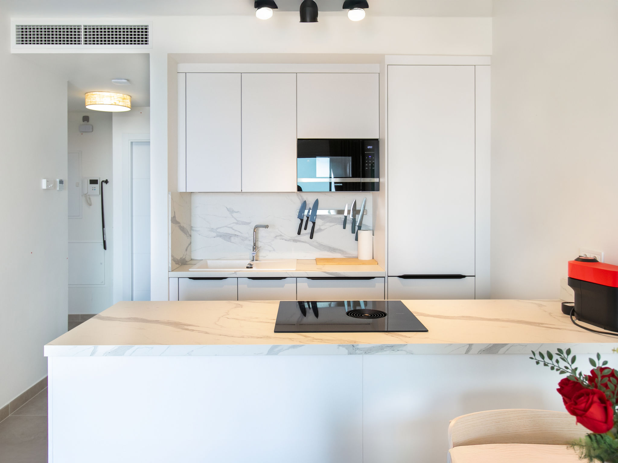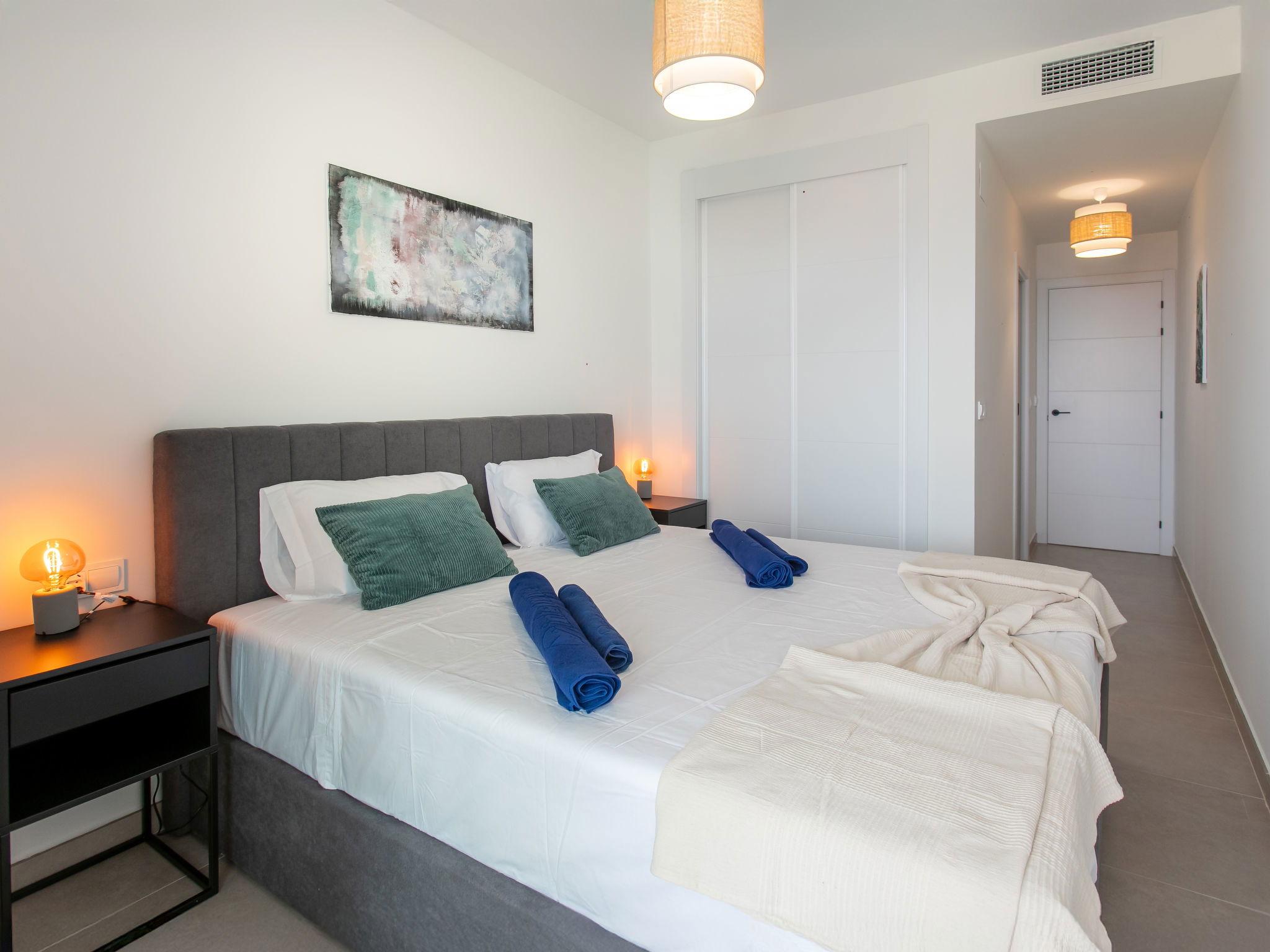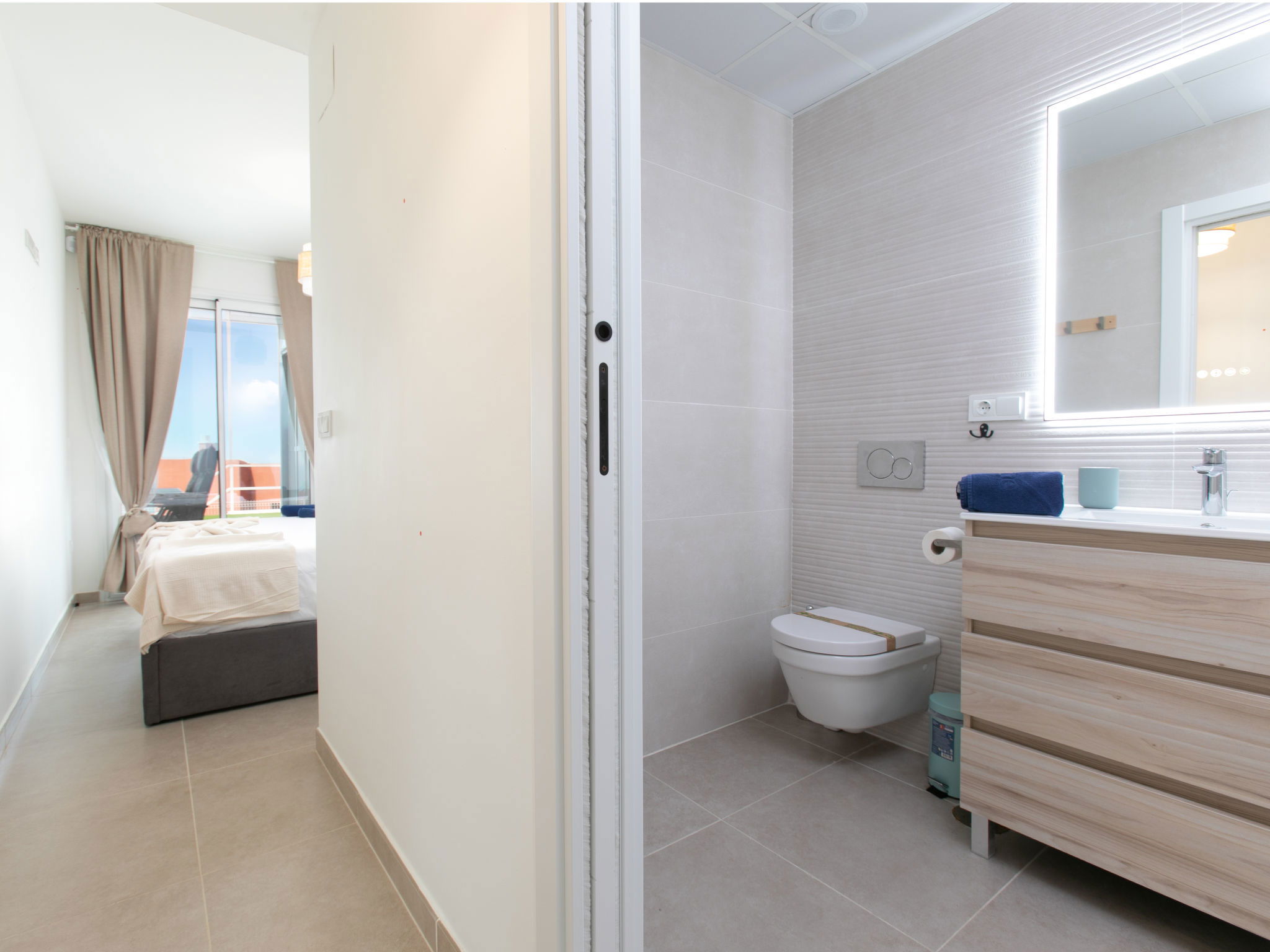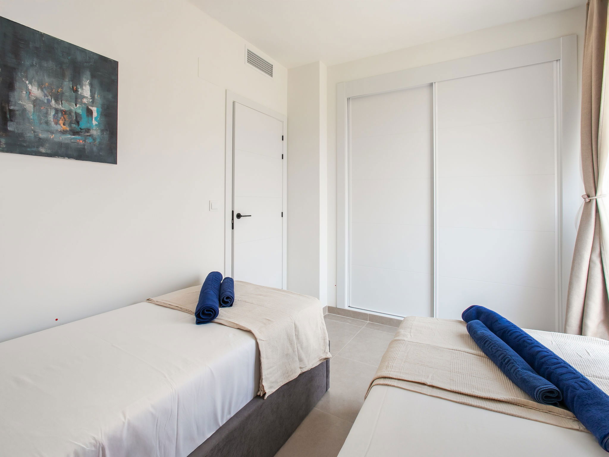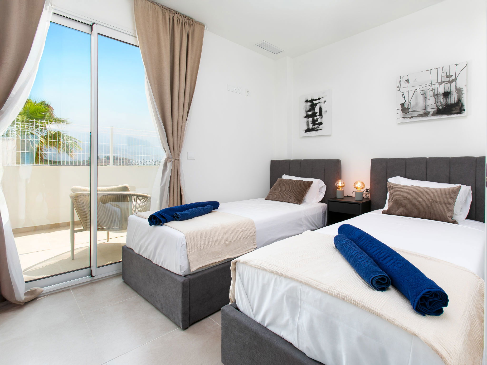 "Heaven Free Spa & Padel", 3-room apartment 80 m2. Practical and comfortable furnishings: living/dining room with digital TV, air conditioning and forced-air heating. Exit to the terrace, to the swimming pool. 1 room with 2 beds (90 cm, length 200 cm), air conditioning and forced-air heating. Exit to the terrace. 1 room with 1 french bed (180 cm, length 200 cm), shower/WC, air conditioning and forced-air heating. Exit to the terrace, to the swimming pool. Open kitchen (oven, dishwasher, 4 ceramic glass hob hotplates, toaster, kettle, microwave, freezer, electric coffee machine, cooking island). Exit to the terrace, to the swimming pool. Shower/WC. Large terrace, small terrace. Terrace furniture, barbecue, deck chairs (2). Very beautiful view of the sea. Facilities: washing machine, dryer, safe, iron, children's high chair, baby cot for up to 2 year olds, hair dryer. Internet (WiFi, free). Parking space n 2 (roofed). Please note: smoke alarm, fire extinguisher. Apple tv in lounge. Private pool can be heated. There is an extra charge for that if required. VUT/MA/959105 // Reg. Nr.: ESFCTU000029013001120320000000000000000VUT/MA/059105
