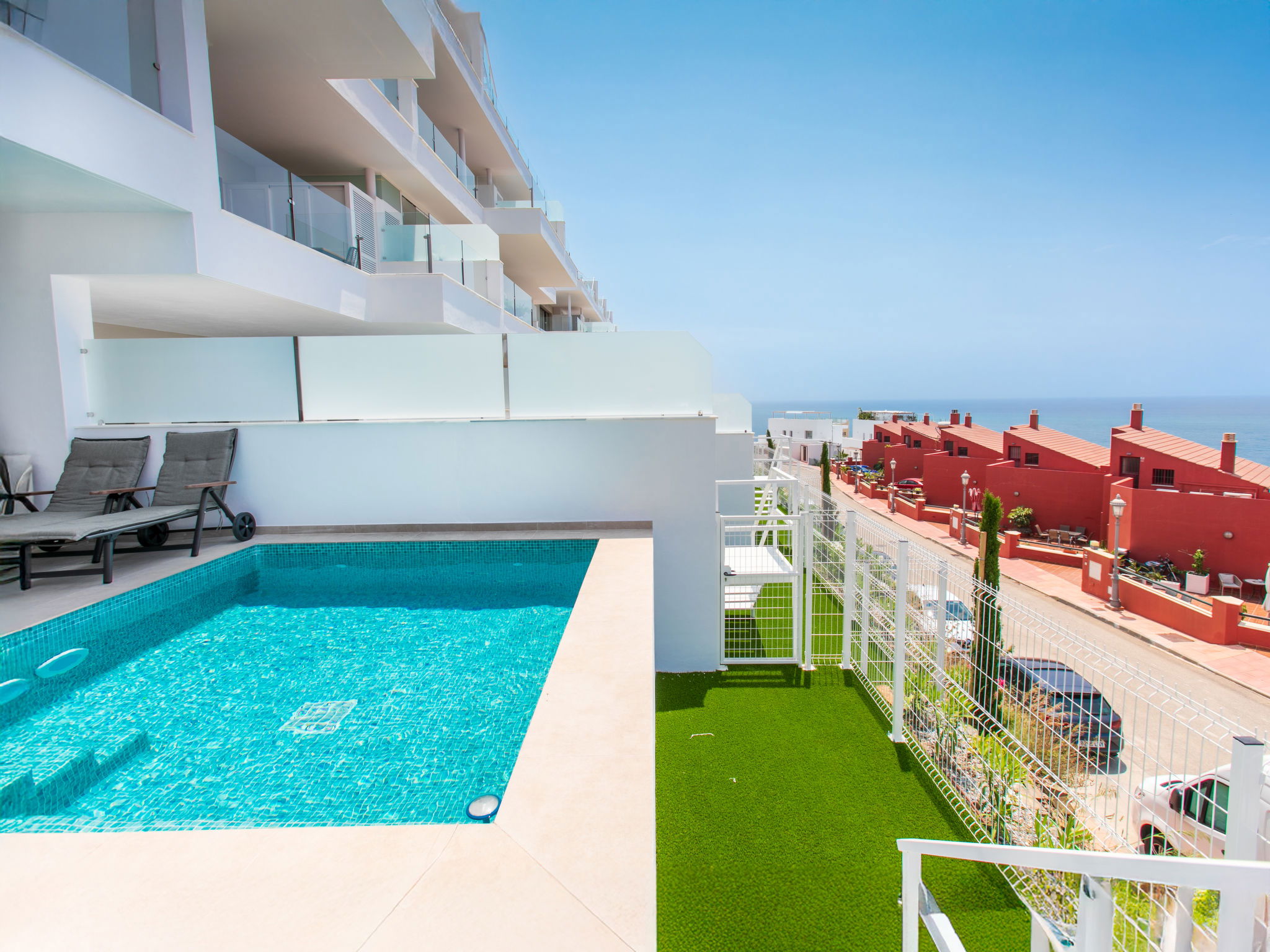 Modern, beautiful, comfortable apartment block "Heaven Free Spa & Padel". In a quiet position in the residential district, residential area (villas), 1 km from the sea, 1 km from the beach. For shared use: 4 swimming pools, indoor pool angular (seasonal availability: 01.Jan. - 31.Dec.). WC in the pool area, children's pool, outdoor shower, hot tub, table tennis, basketball, arbour, pergola, terrace, garden furniture, barbecue, children's playground (slide, swing), pool maintenance by the owner/gardener. Private: swimming pool (3 x 4 m, depth 120 - 120 cm, seasonal availability: 01.Jan. - 31.Dec.). Basketball. In the complex: lounge with TV, WiFi, sauna, fitness room, steam room, hot tub (all included), table tennis (all included), billiard table, playroom, table football, lift, air conditioning. Roofed, parking space n 2. Shop 1.5 km, grocery 1 km, shopping centre 1.7 km, restaurant 1 km, bus stop 1 km, diving center 17 km. Sports harbour 17 km, marina 17 km, golf course (18 hole) 23 km. Nearby attractions: Museo de Nerja, Cuevas de Nerja, Acantilados de Maro, Aquavelis, Museo de Miel de Caña, La Alhambra. Well-known ski regions can easily be reached: Sierra Nevada. Hiking paths: Sierra Tejeda, Sierra Almijara. Please note: car recommended. The owner does not accept any youth groups. Loading and unloading of baggage is possible at the holiday house. Property ref. ES5405.54.1 is situated on the same property. Two indoor heated comunal pools, indoor gym, wine room, golf simulator room.,Amazing complex with: indoor/outtwodoor gym, cinema room, wine room, golf training room, two indoor pools, sauna, hot bath, games room, padel court. Situated within less than 5 minutes drive from Nerja´s town centre and beach.