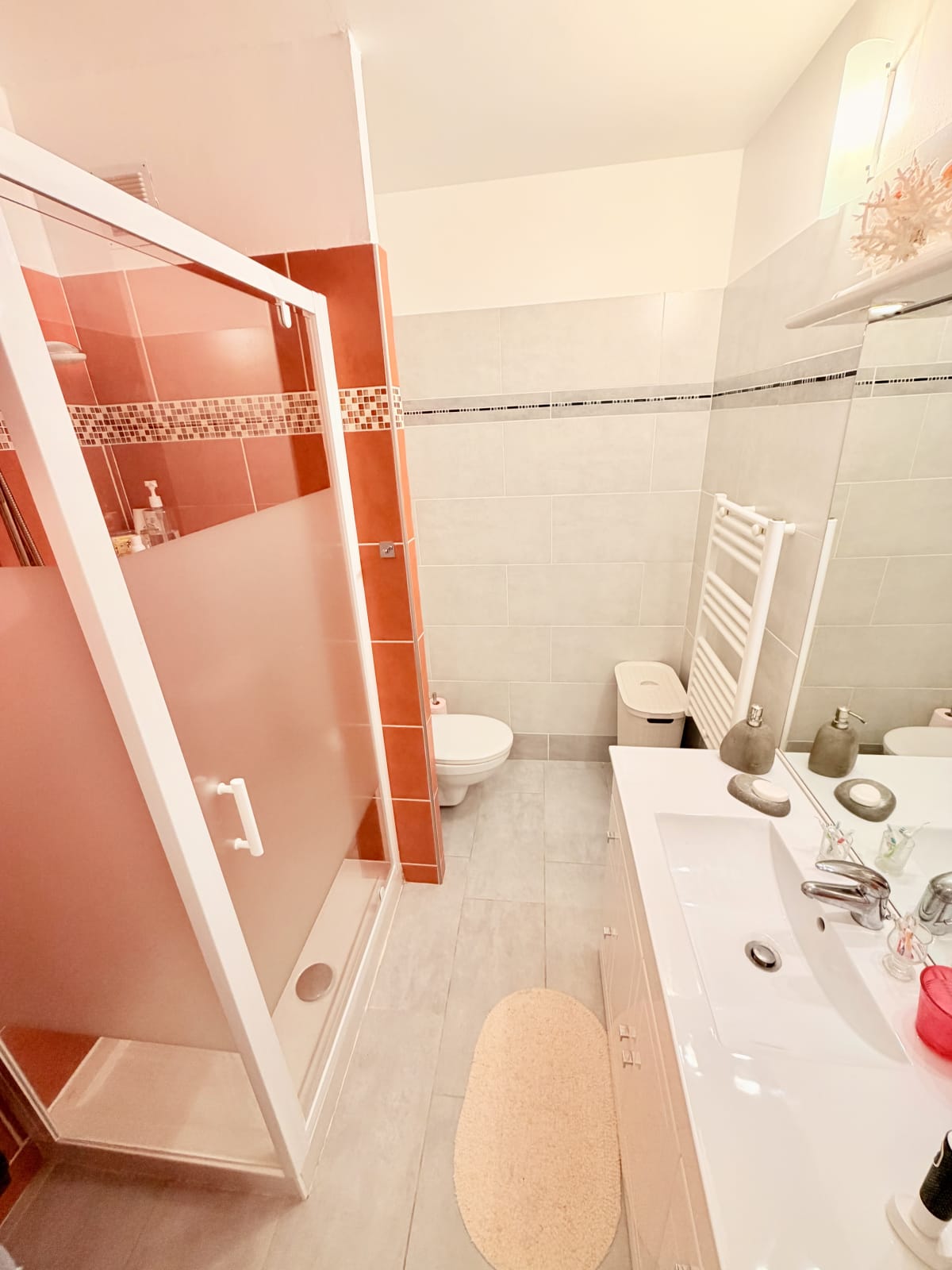 À l'entrée, vous trouverez 1 couchages canapé lit 130/200 et une salle de bain avec douche et toilettes