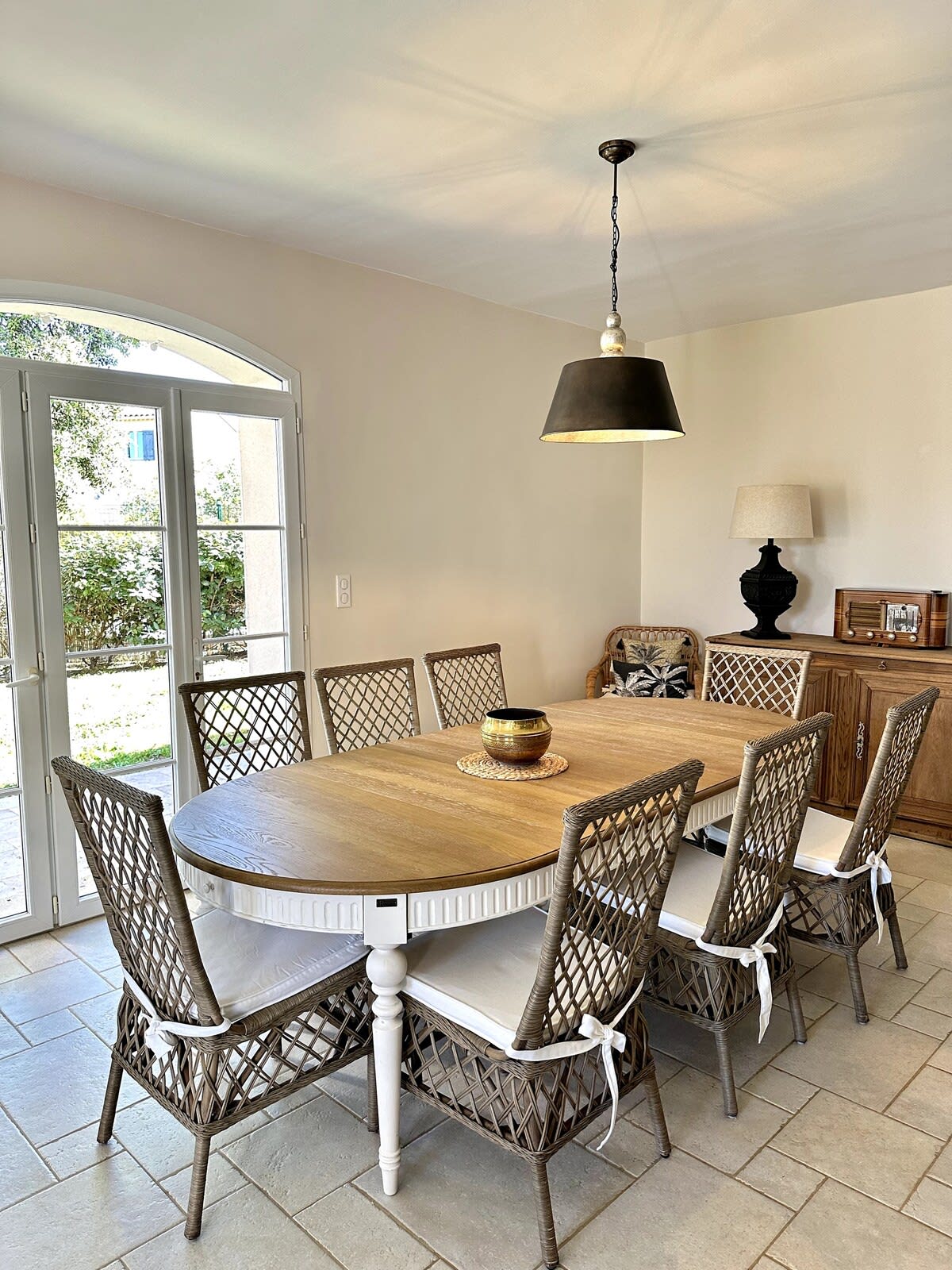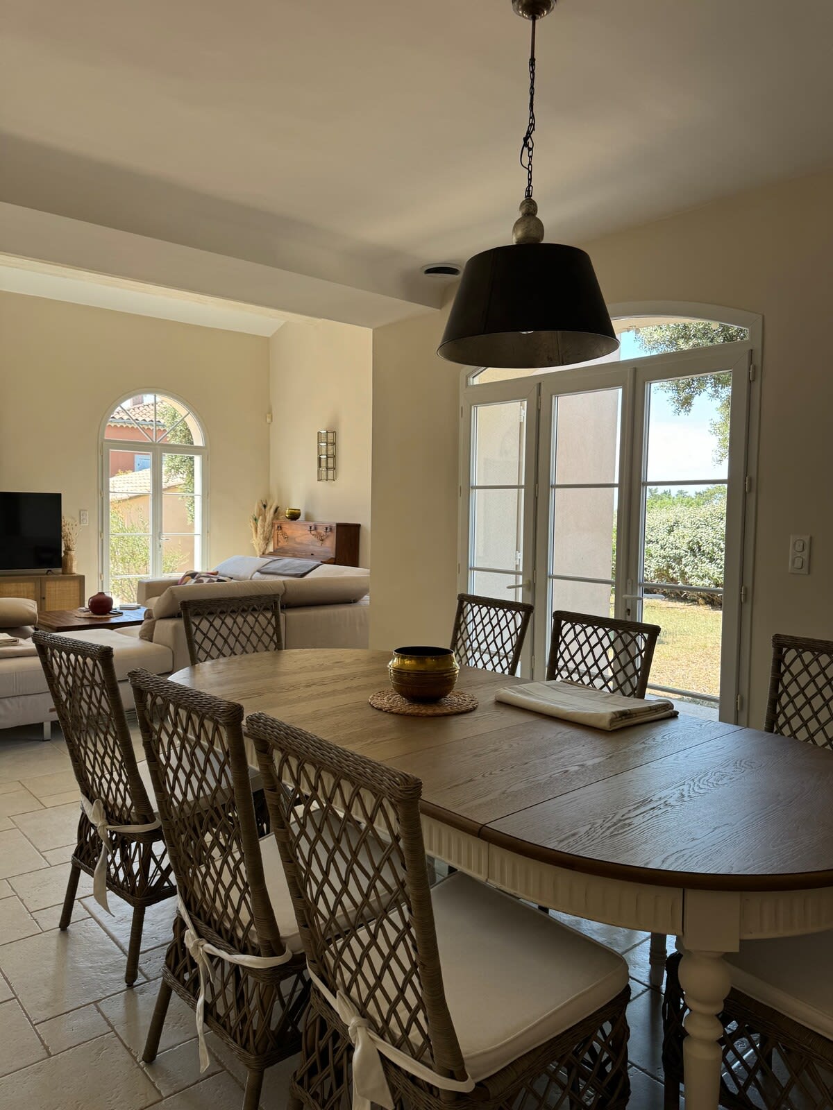 This single-storey house is located in a very quiet neighborhood of L’Isle-sur-la-Sorgue, about 10 minutes by car from the town center and local shops.