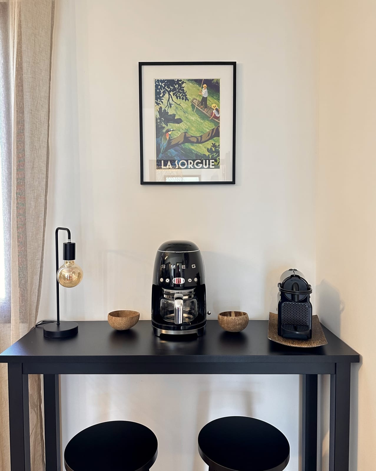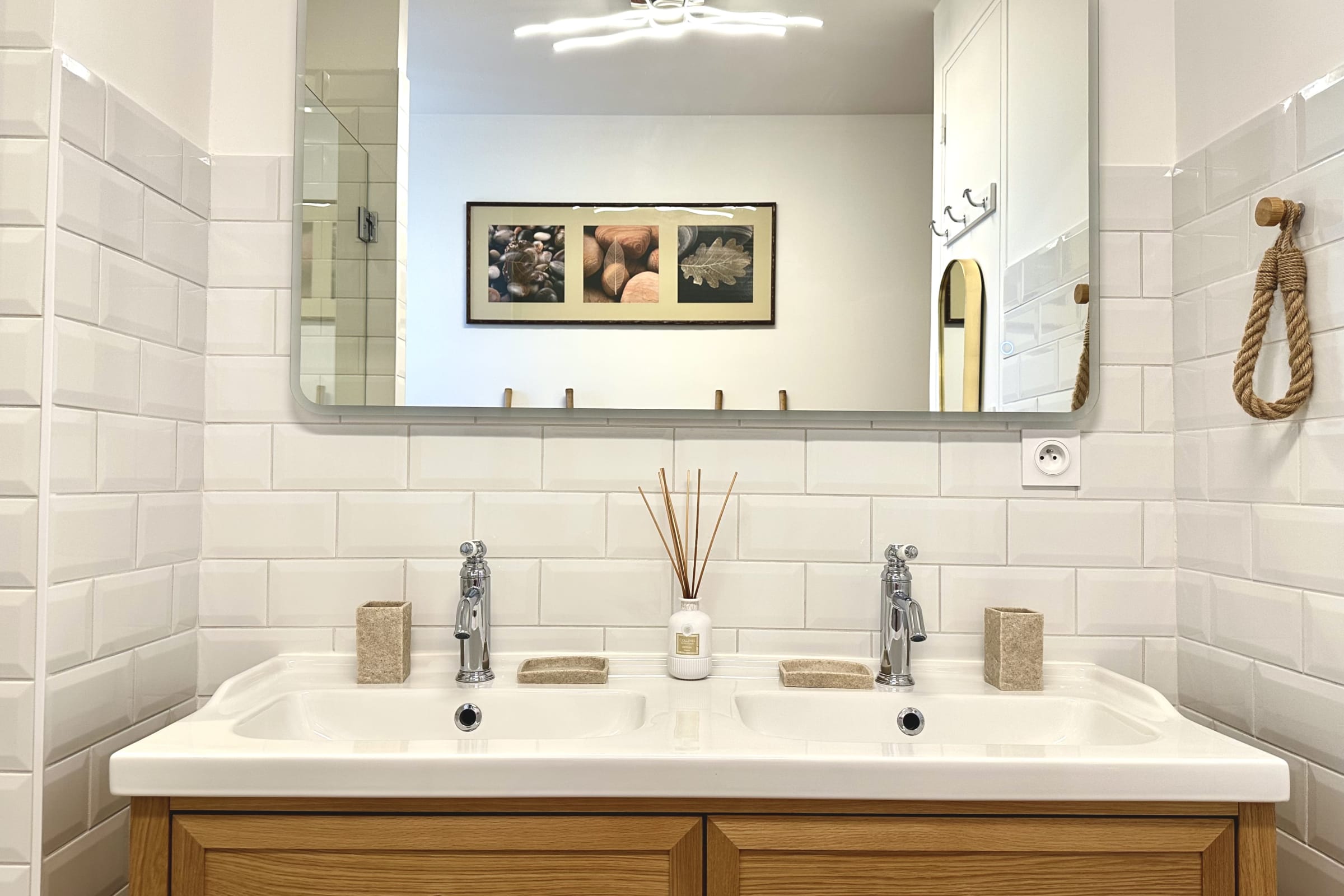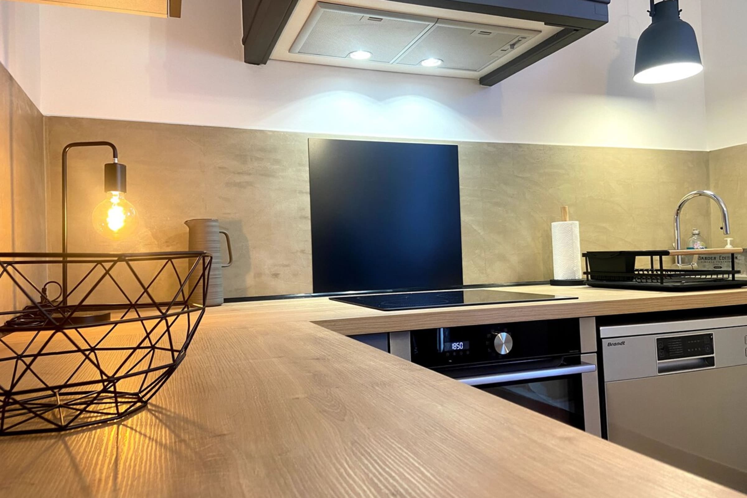 On the ground floor, you’ll find a fully equipped kitchen (oven, microwave, dishwasher, fridge/freezer, hob, toaster, kettle, Nespresso machine and Smeg filter coffee maker). Essentials such as oil, salt and pepper are provided.