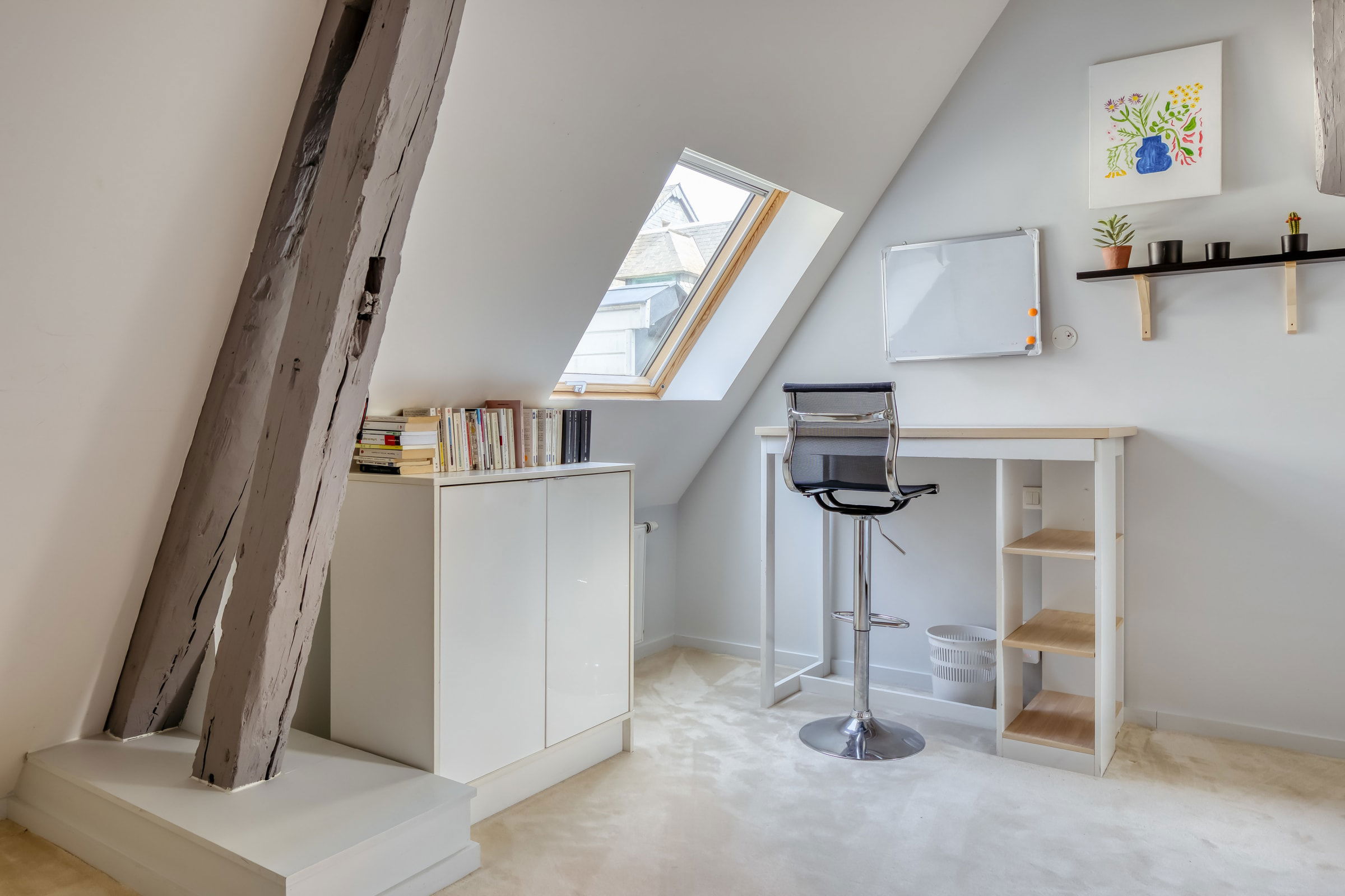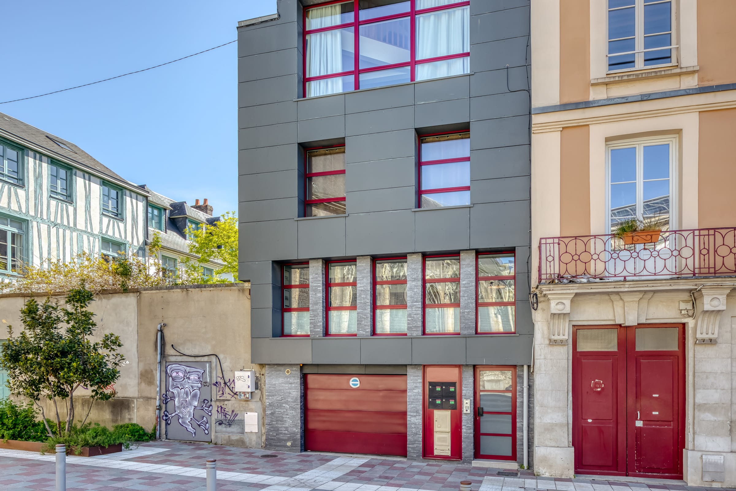 In the heart of Rouen, on Rue Charles Lepneveu, this exceptional property feels like a small townhouse nestled in an intimate condominium, where you immediately feel at home. The magic begins as soon as you arrive: a view of Place du Chêne Rouge, a stone's throw from Saint-Godard Church, and just opposite... the Jacques-Villon heritage library. Here, you can enjoy the city centre on foot: shops are just a minute away, charming narrow streets, lively squares and historic façades are within walking distance.
