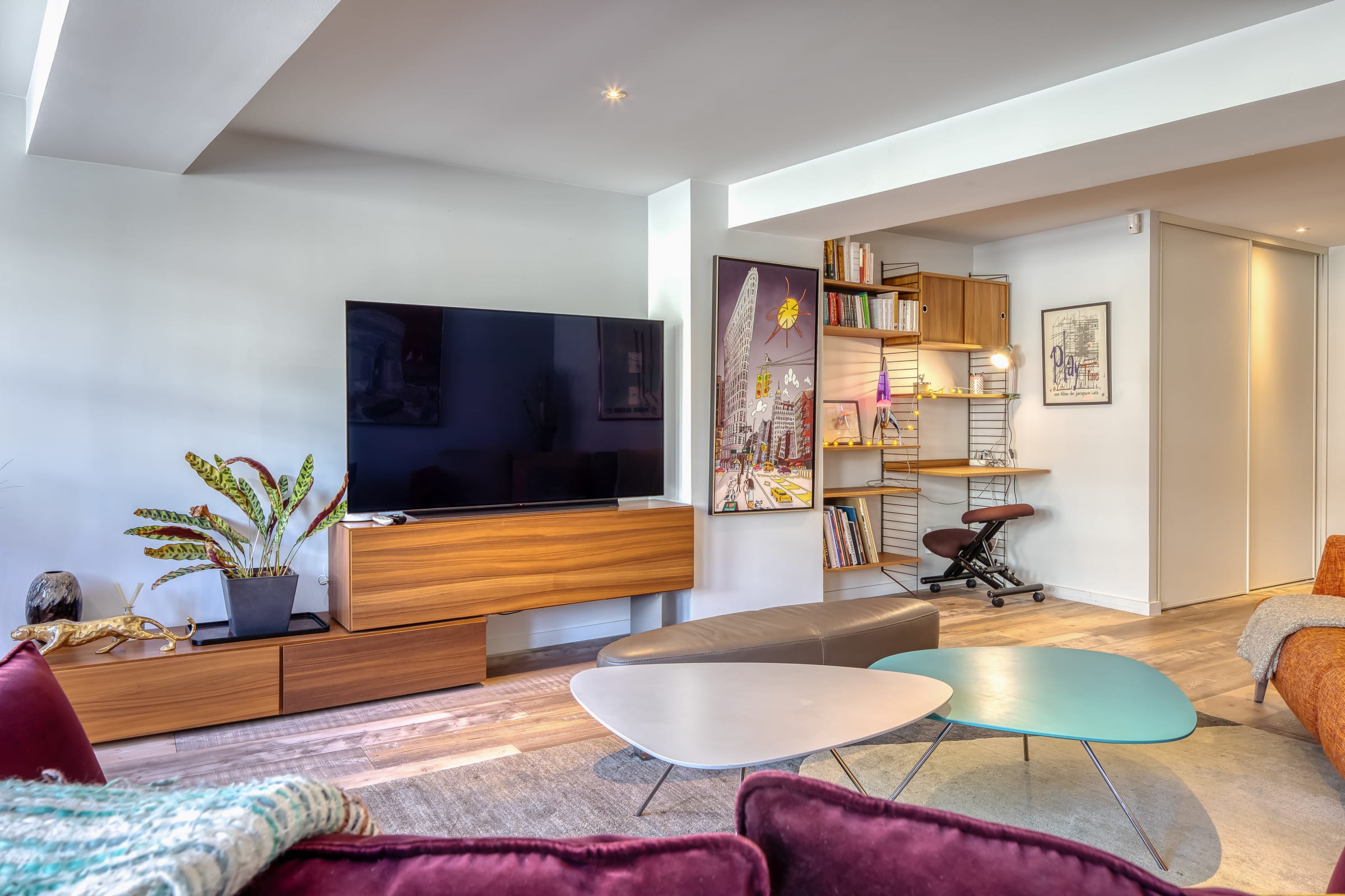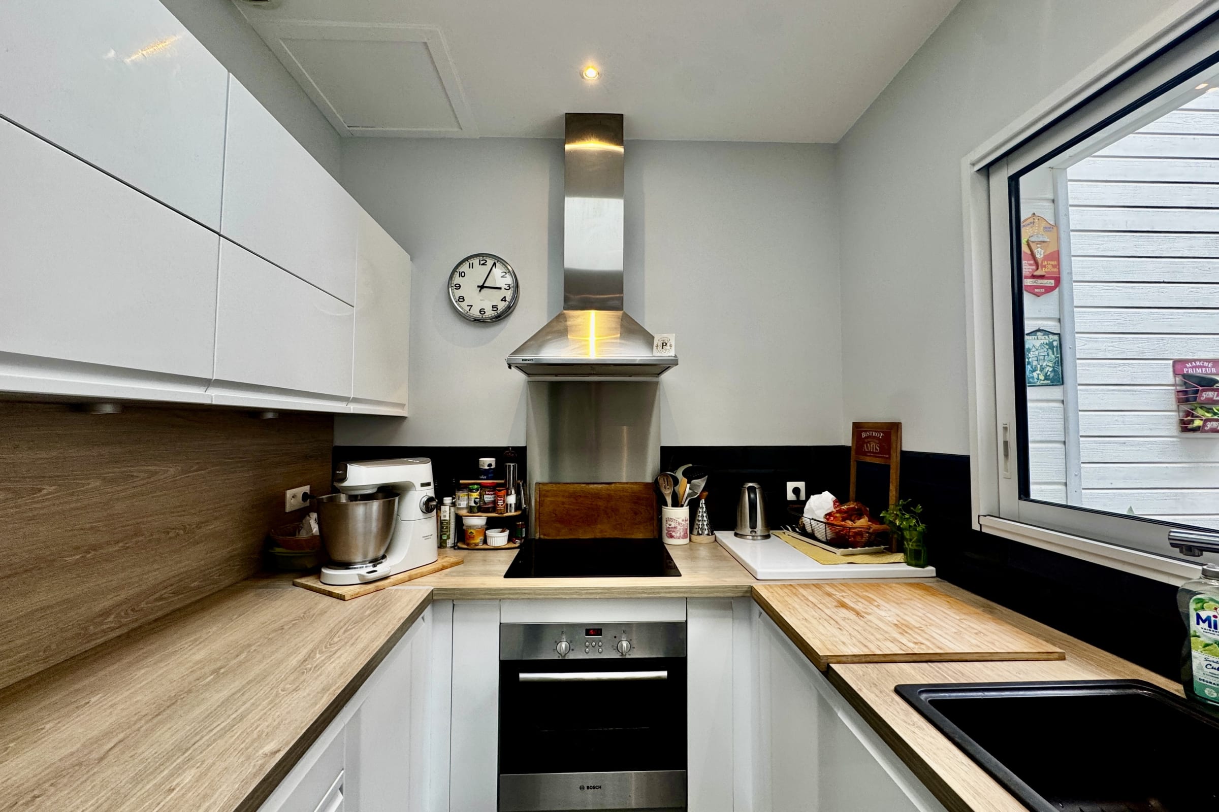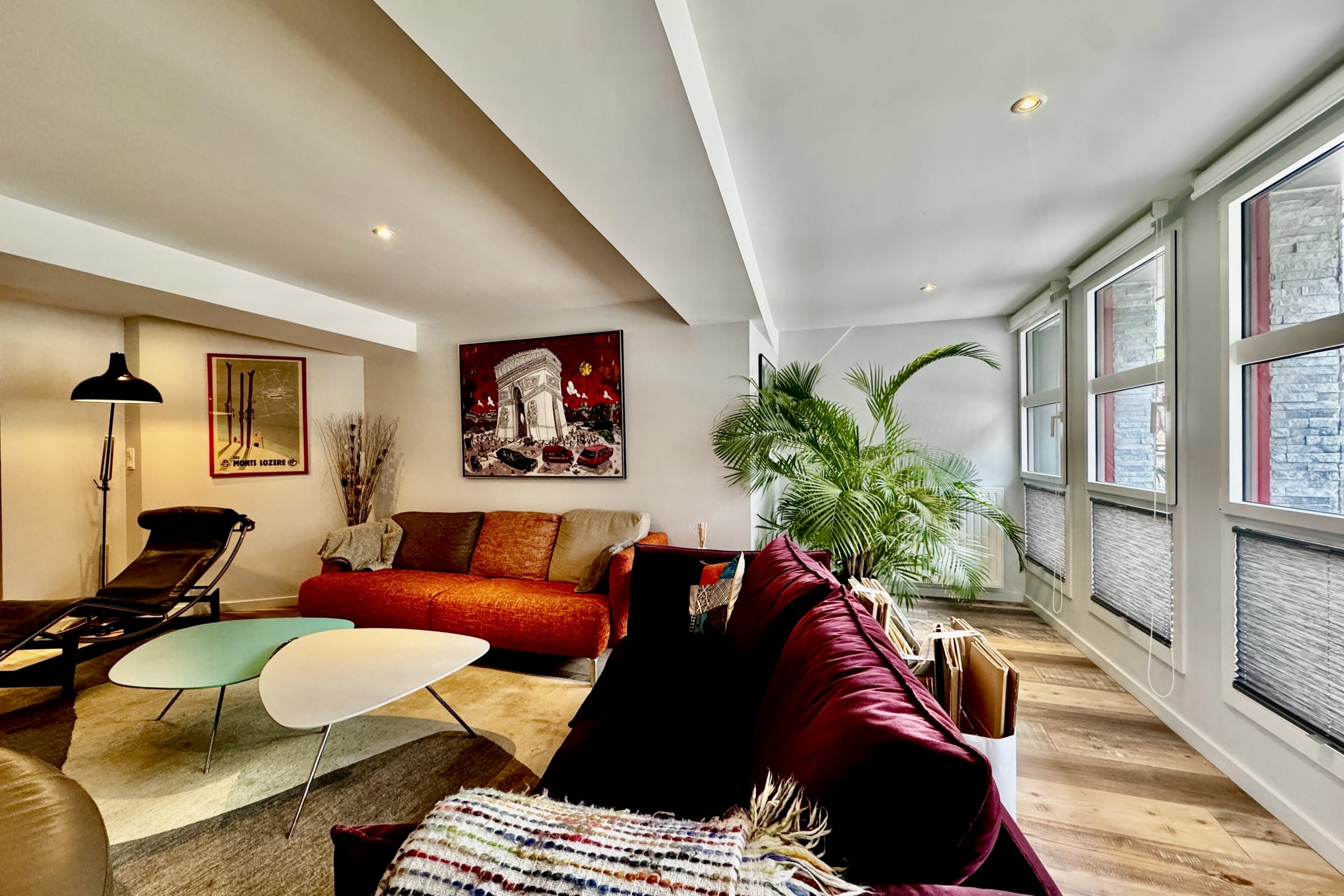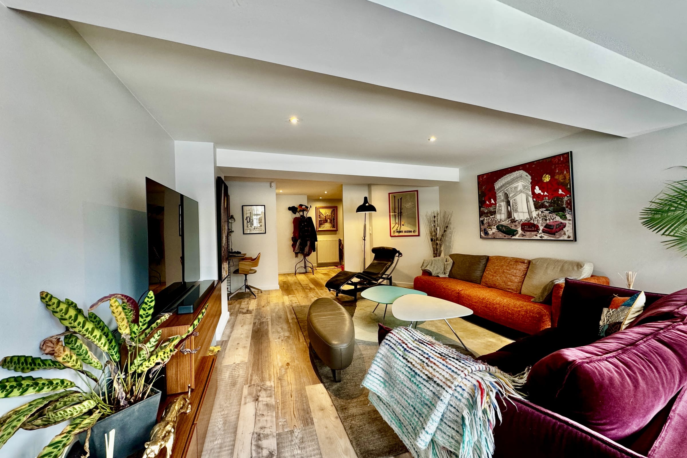 There are two ways to access the property: via the garage on the ground floor or via the building (a few steps) to reach the accommodation. Spread over three floors and offering around 140 m² of space, the flat combines volume, privacy and comfort — a real favourite.