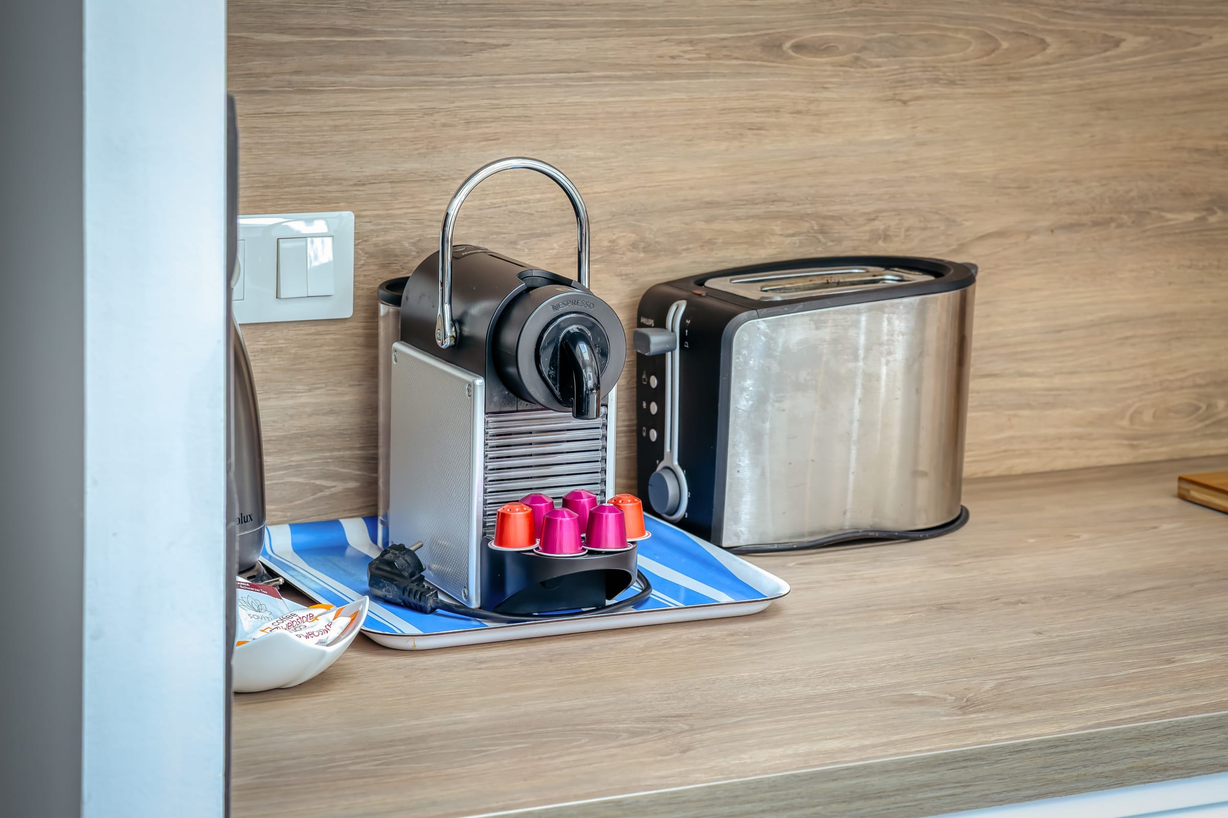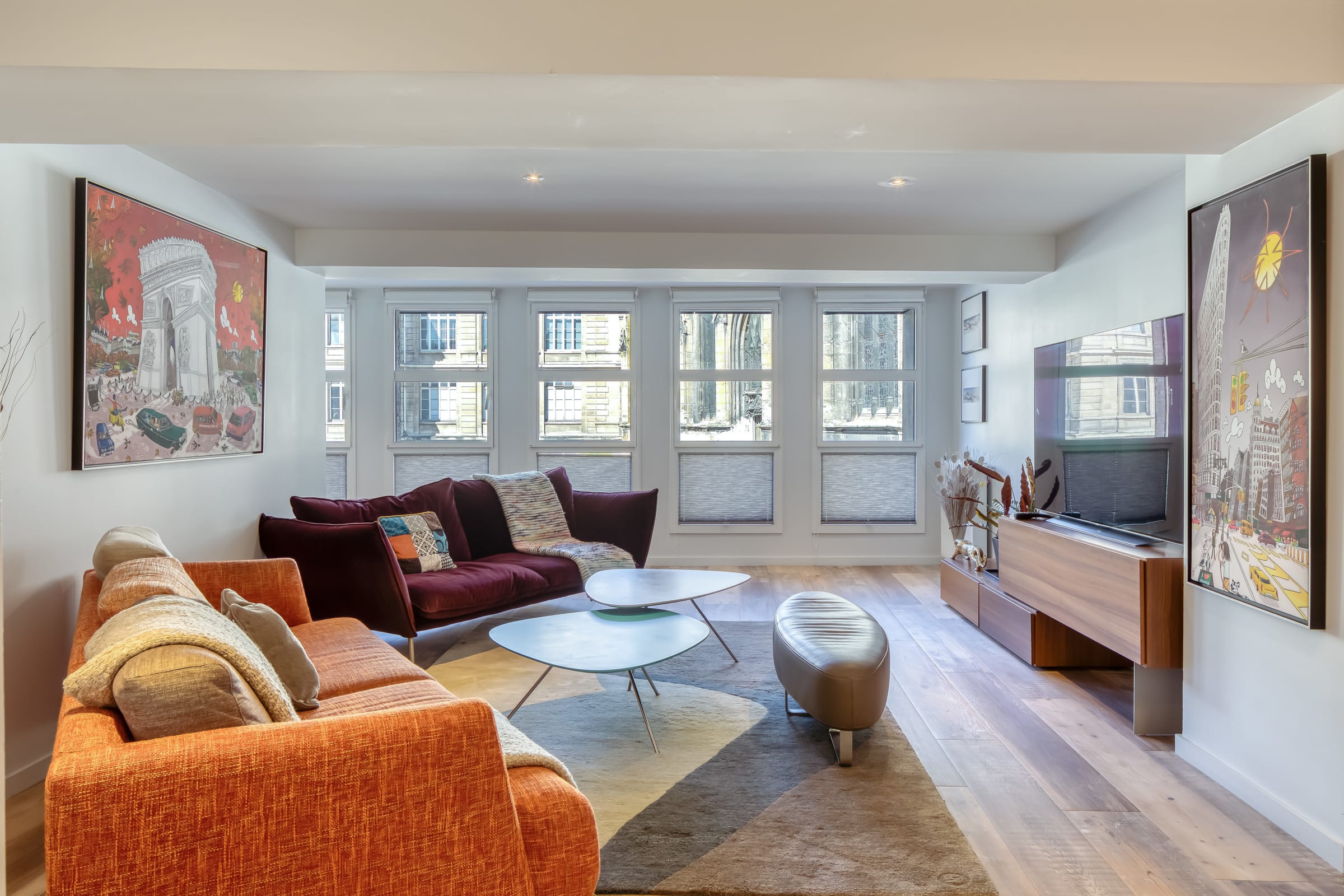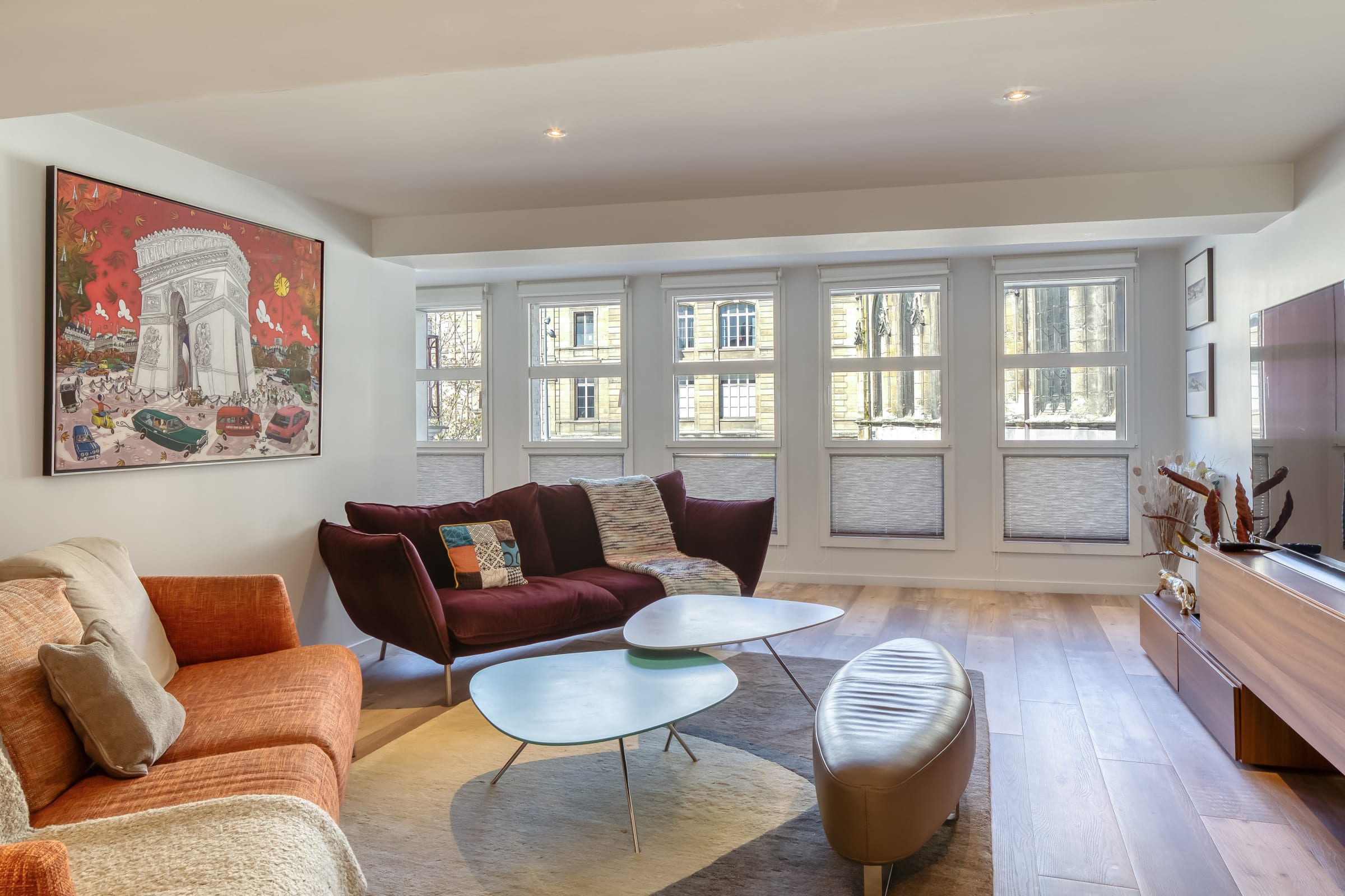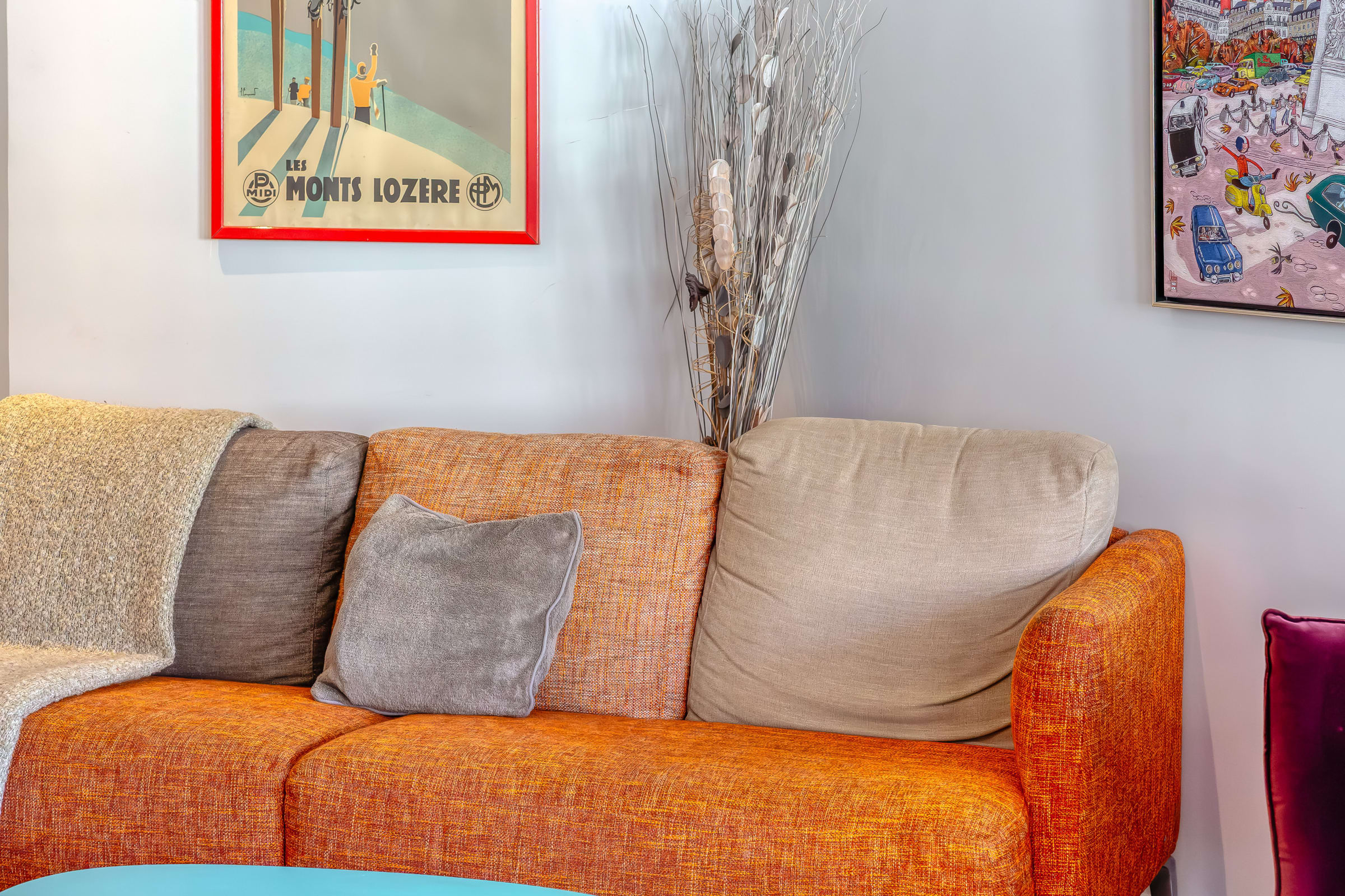 Main floor (1st floor of the building): Here you will find a fully fitted and equipped kitchen: hob, oven, extractor hood, dishwasher, microwave, Nespresso machine, toaster, kettle, blender... Everything you need is there. The light-filled living room is the ideal place to get together: comfortable sofa, large smart TV, convivial table for sharing meals, all with a view of the square in Rouen. Also on this level: a bedroom with its own shower room and WC, as well as direct access to the patio, a real outdoor cocoon for special moments.