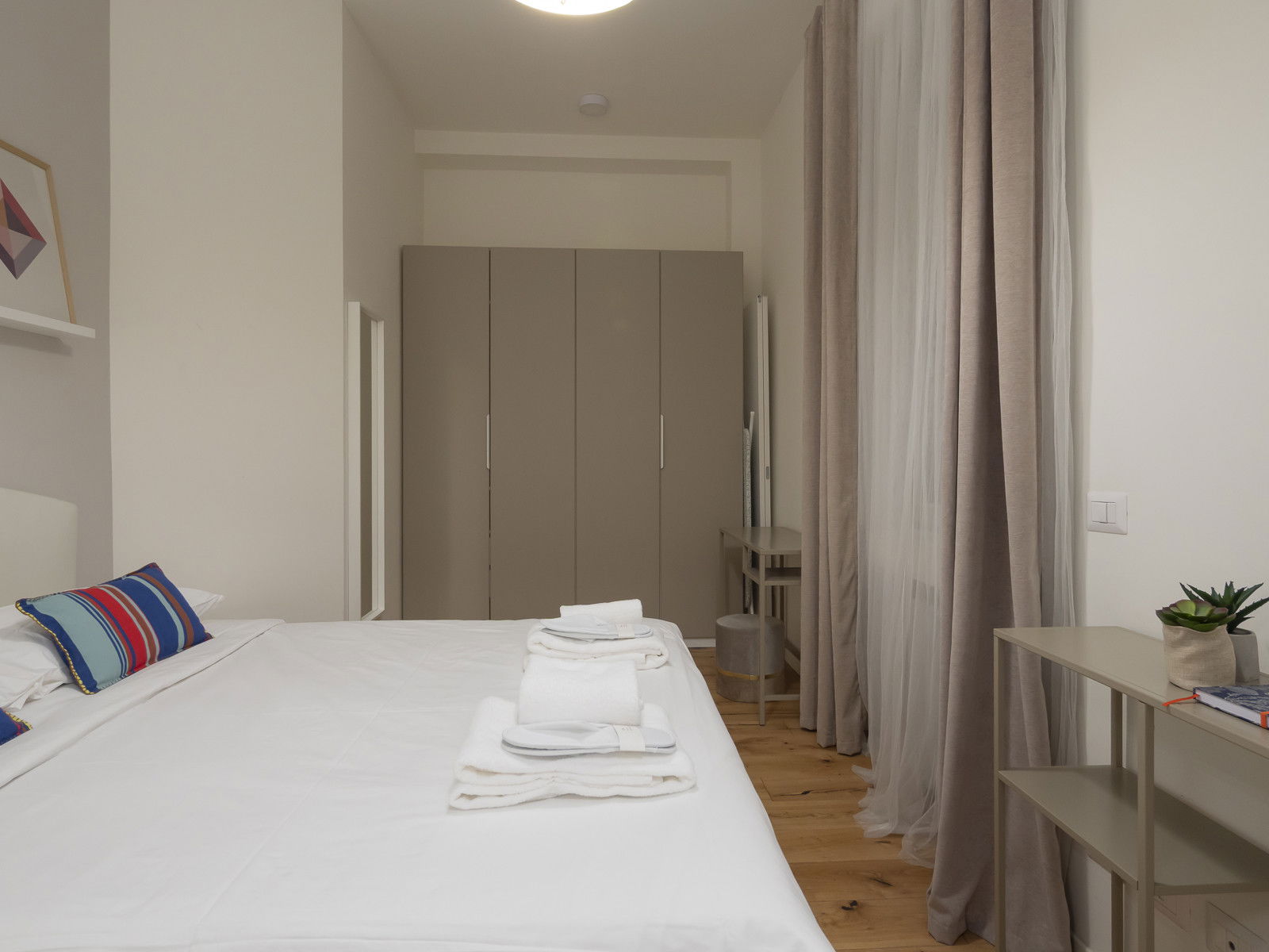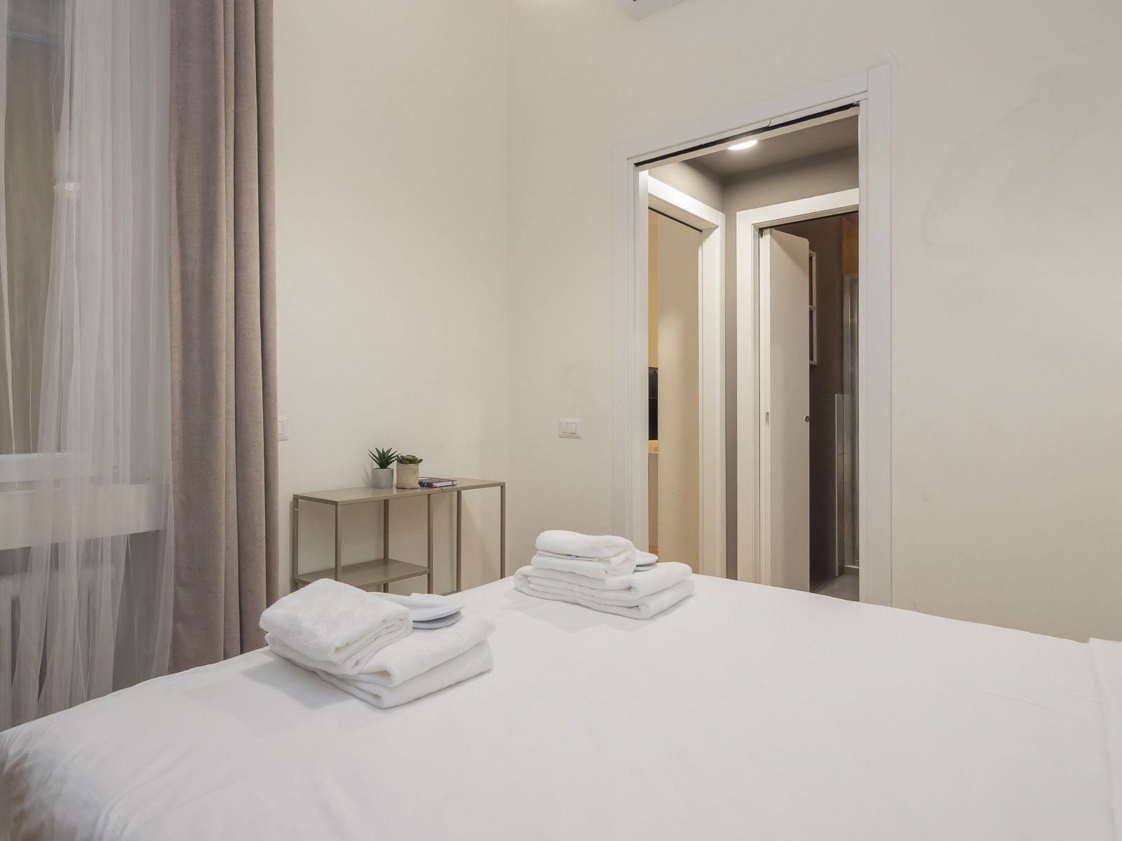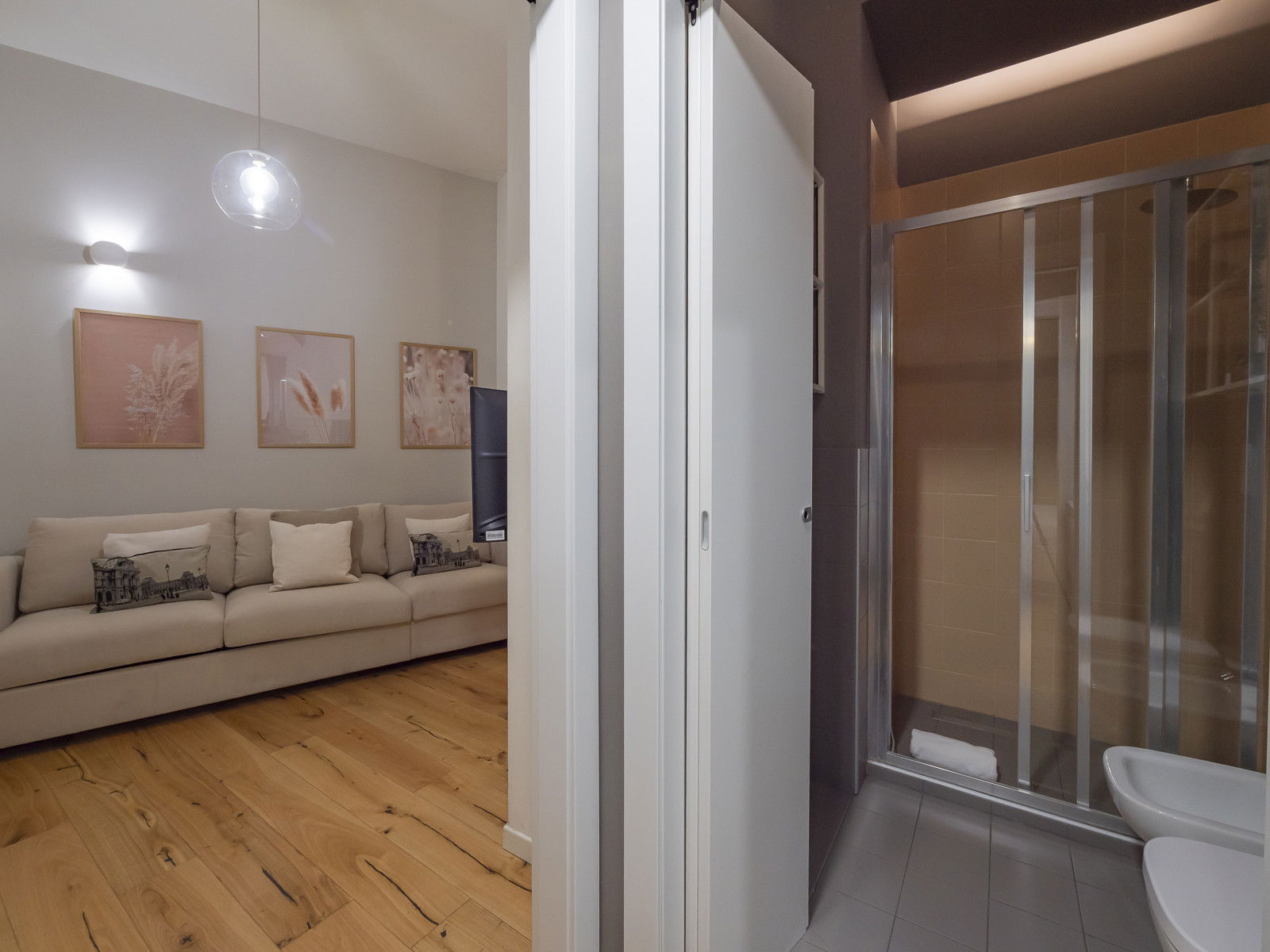 Spacious and functional one-bedroom apartment in the heart of the city, just a few steps from the Duomo and the courthouse. This spacious apartment features a living area with an open-plan kitchen and a double sofa bed, a master bedroom with a large wardrobe, and a bathroom with a shower enclosure.