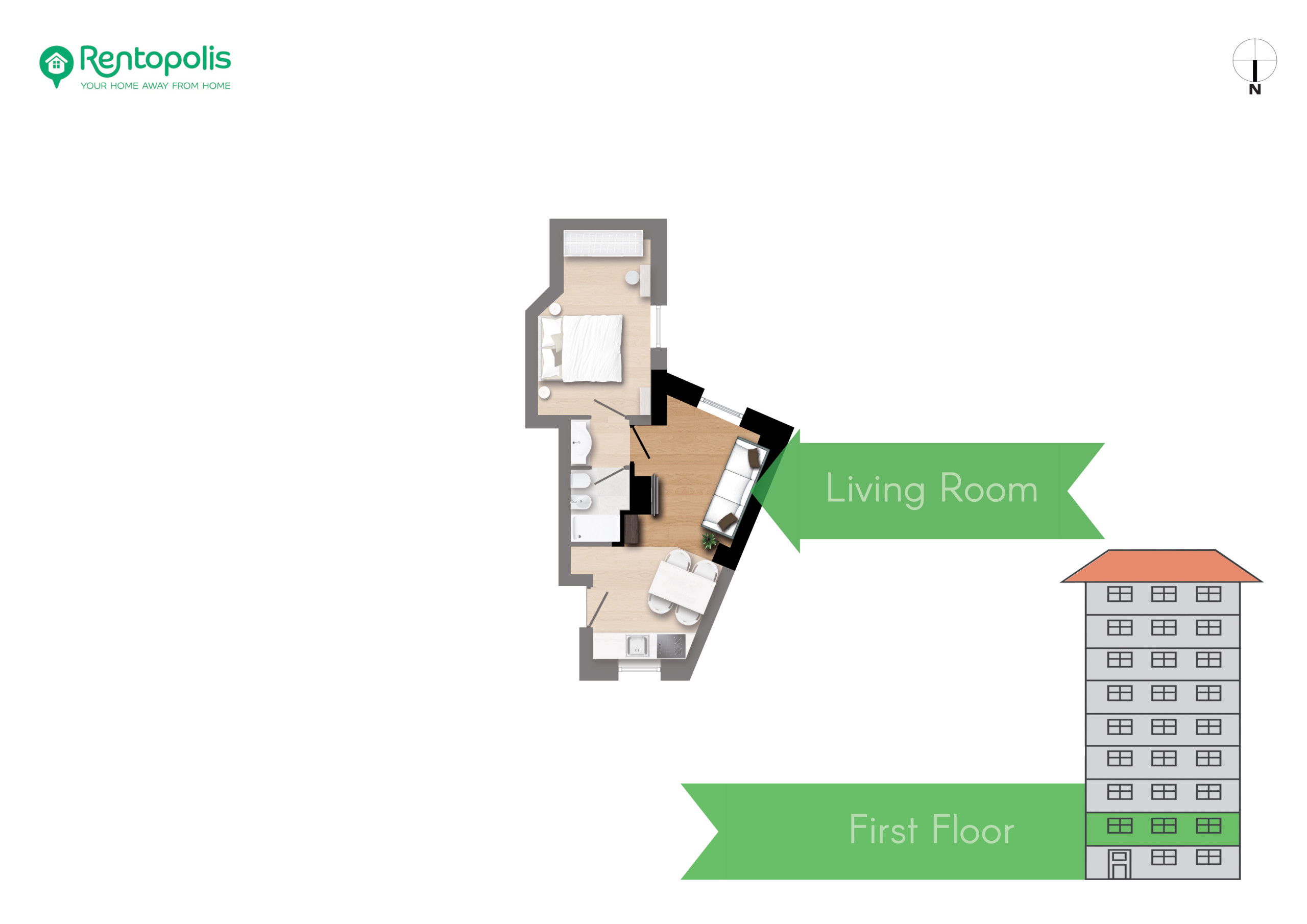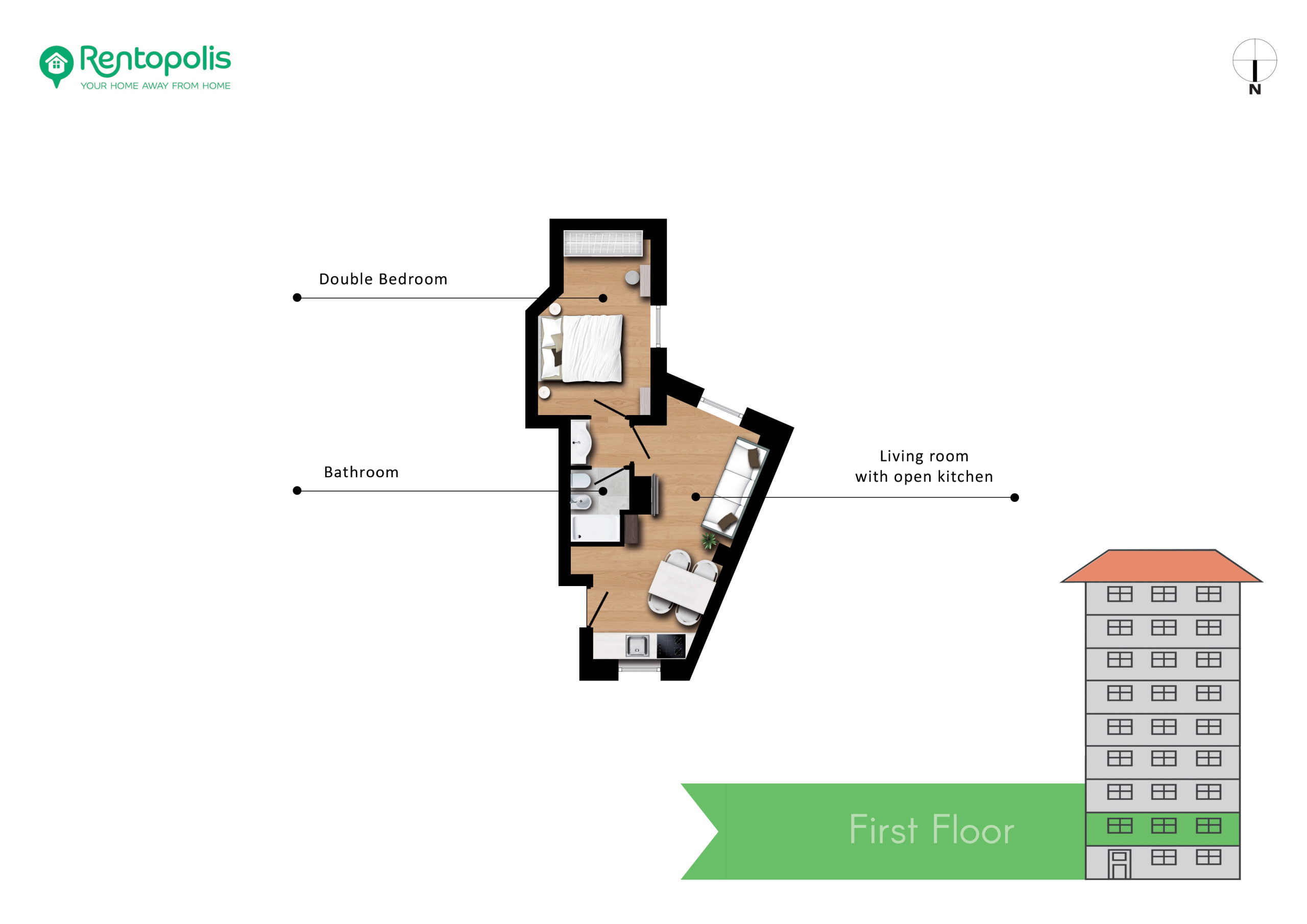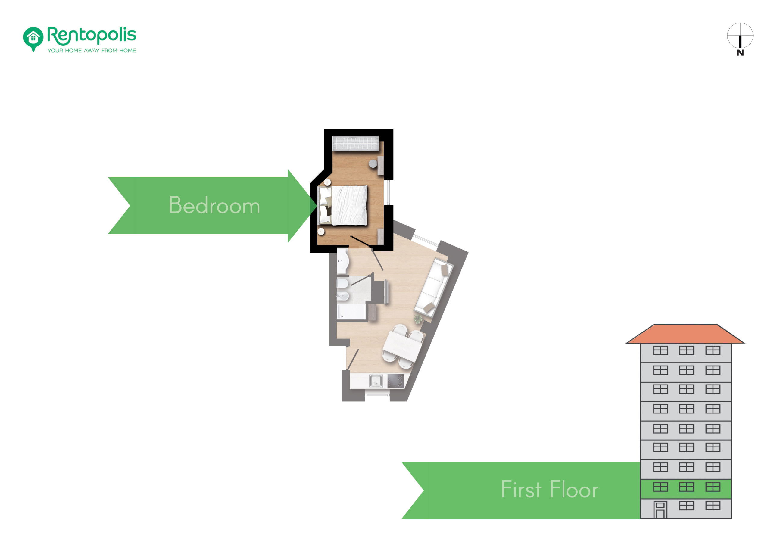 - 1 bedroom