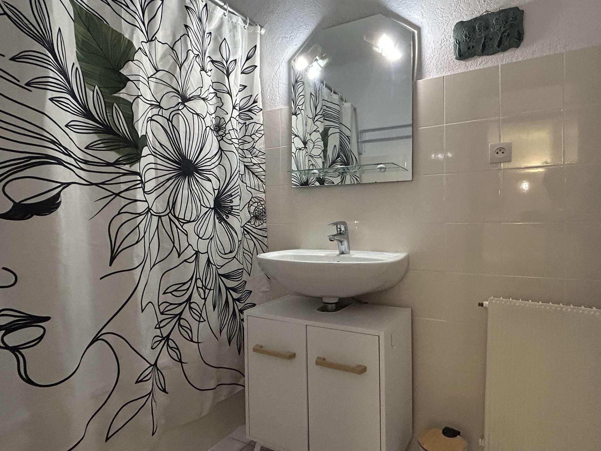 Situé en rez-de-chaussée, cet appartement traversant séduit par son atmosphère chaleureuse, son charme et sa décoration soignée. Aménagé avec goût, il offre un cadre à la fois confortable et accueillant. Il se compose d’un séjour lumineux avec un canapé convertible 2 places (140 x 190 cm), d’une cuisine indépendante entièrement équipée, d’une chambre avec un lit double, d’une salle de bain, de WC séparés ainsi que d’une agréable loggia.