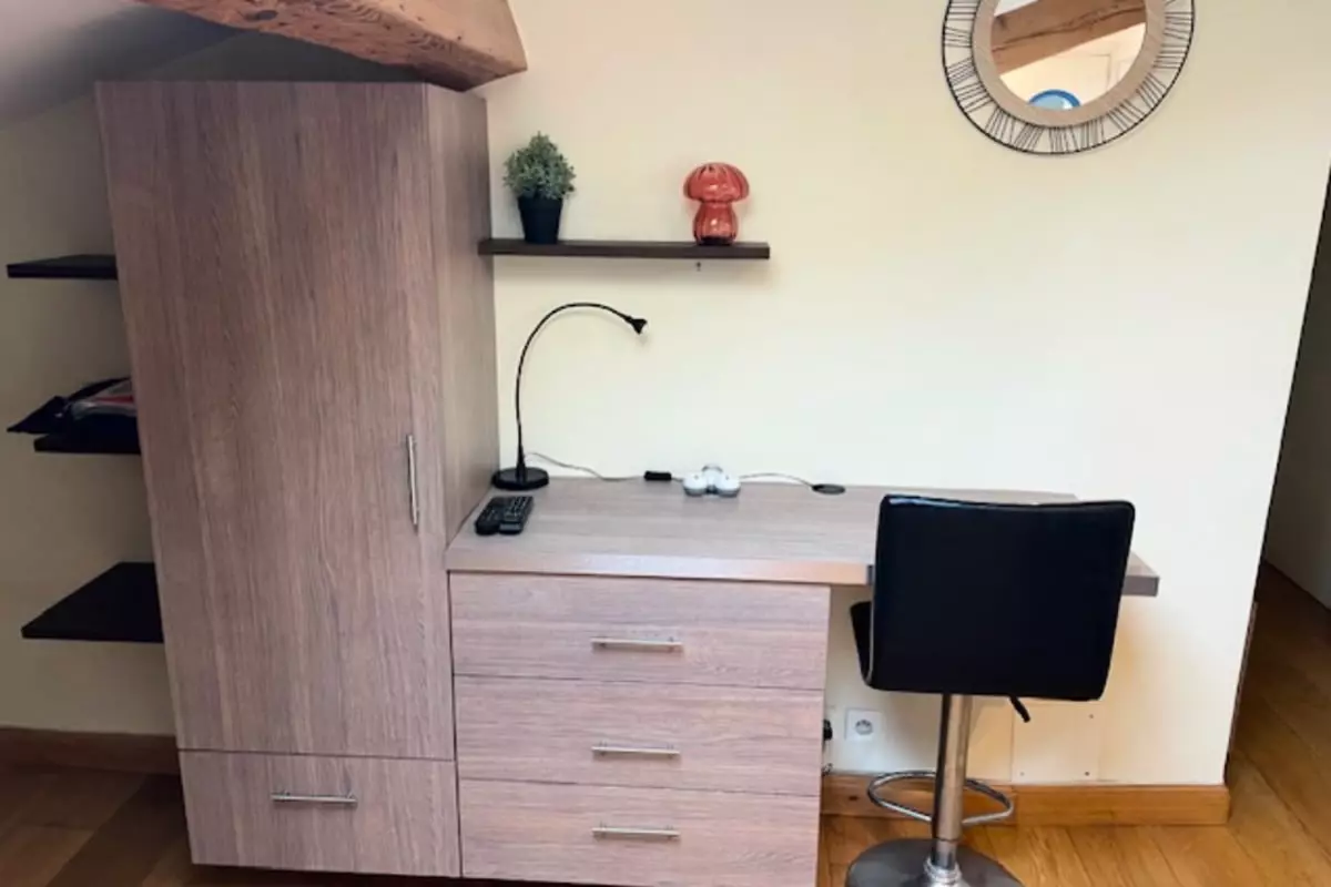 The accommodation is fully equipped with a complete kitchen including oven, microwave, raclette machine, coffee machine and refrigerator, as well as a modern shower room, washing machine, iron, air conditioning and a smoke detector for your safety.