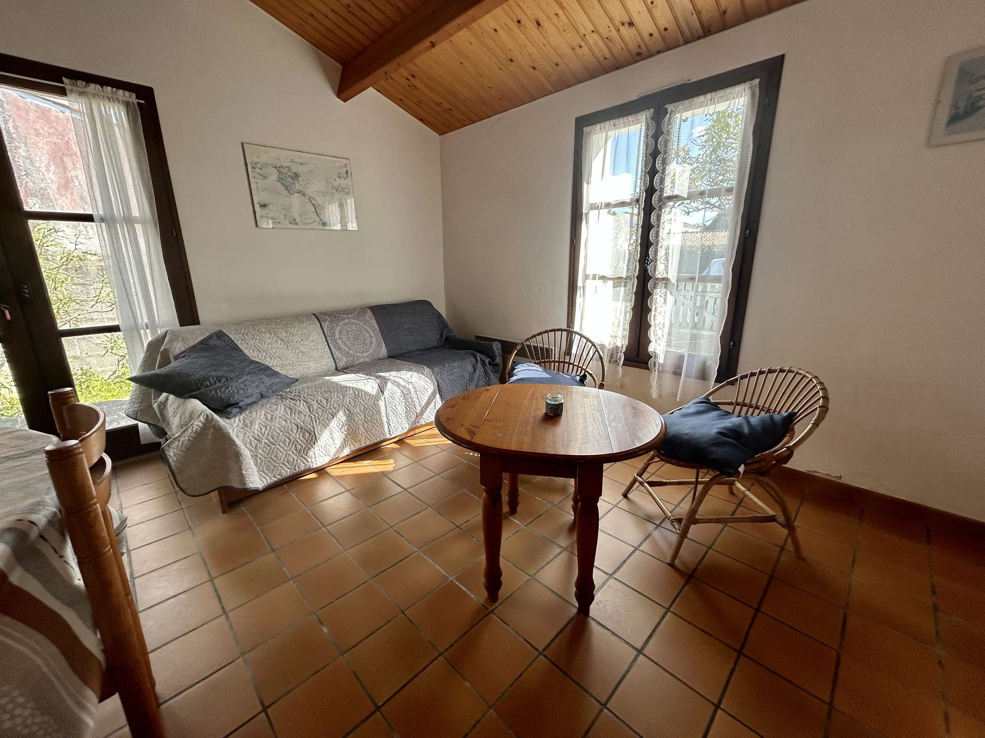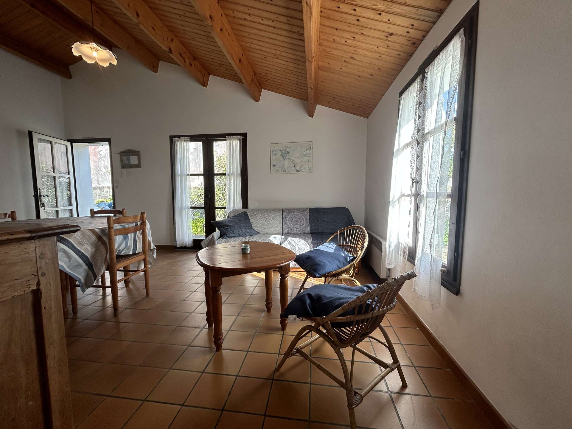 Noirmoutier en l'Ile (85) - Between the town center and the Bois de la Chaise beaches 2-room house of around 45 m² - up to 4 people Located 1,200 m from the beach and 800 m from the shops, this semi-detached holiday home on one level, consists of a living room with television and a pull-out sofa for two people, an open kitchen, a bedroom with a double bed, a bathroom, a separate toilet. The garden is enclosed with a parking space. The advantages of this seaside rental: In a quiet cul-de-sac, you will enjoy the terrace with its garden furniture and barbecue. End of stay cleaning included.