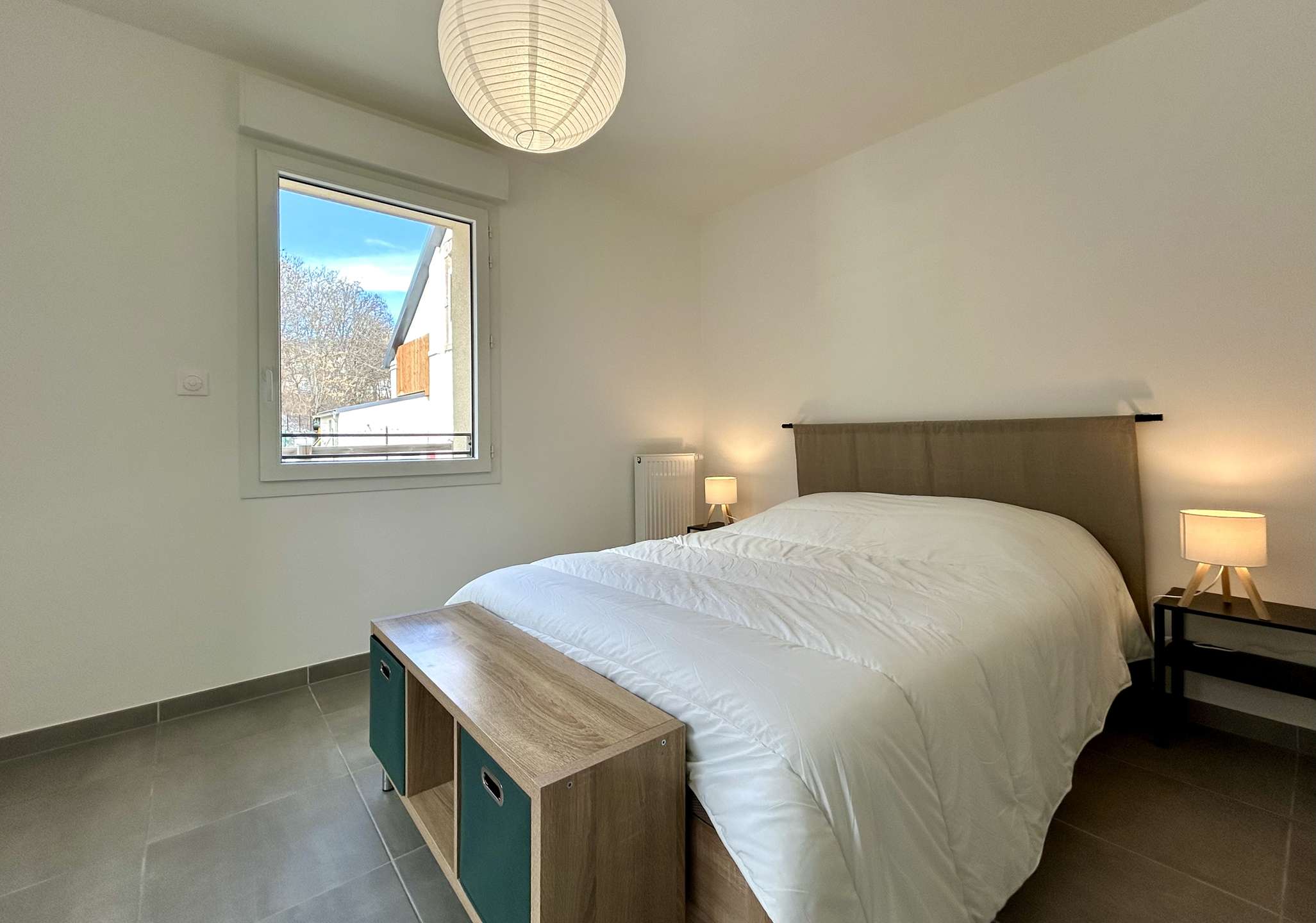 - A second bedroom with two single beds (90 x 190 cm) that can be pushed together to form a double bed