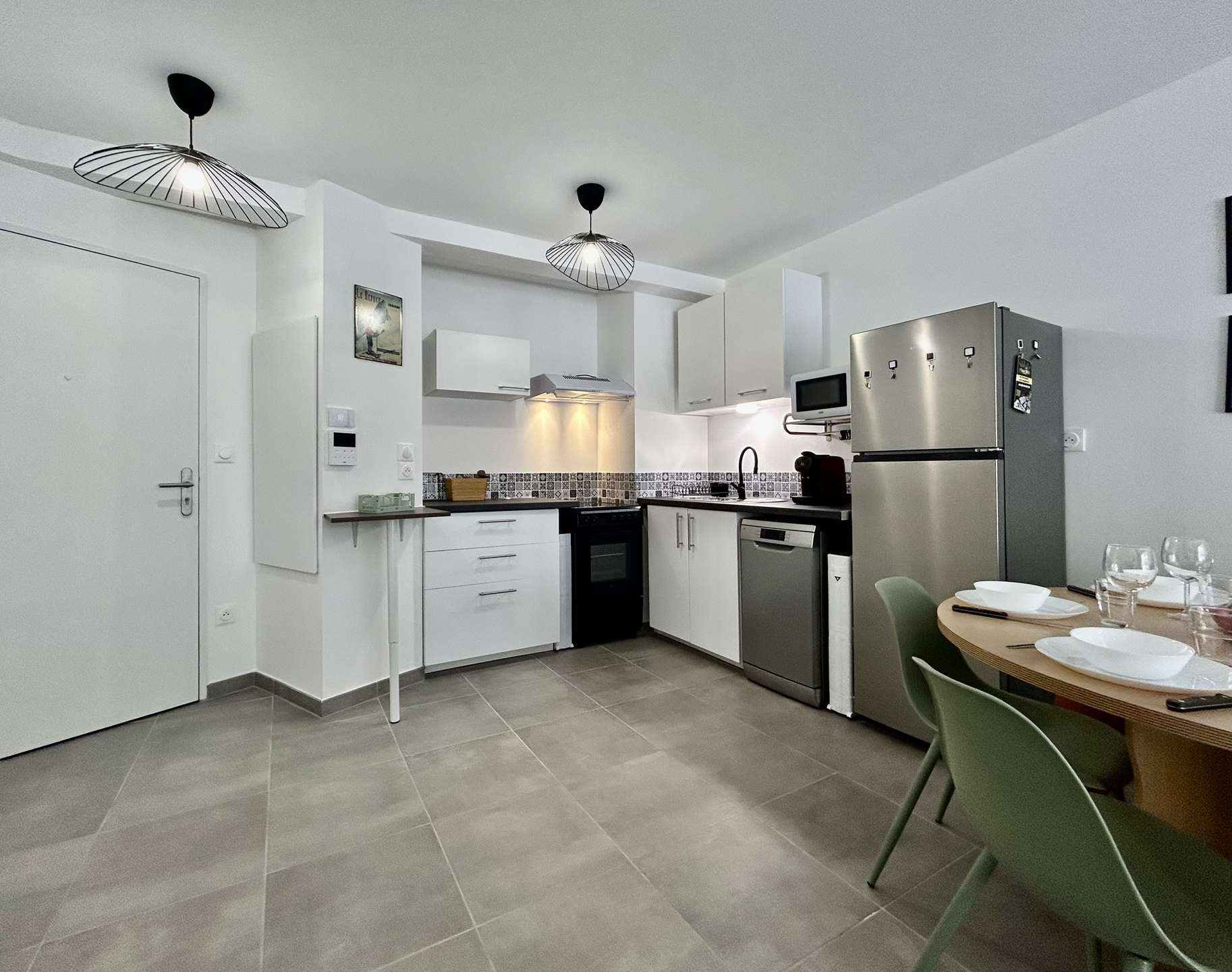 - A fully equipped open-plan kitchen, opening onto the relaxation area