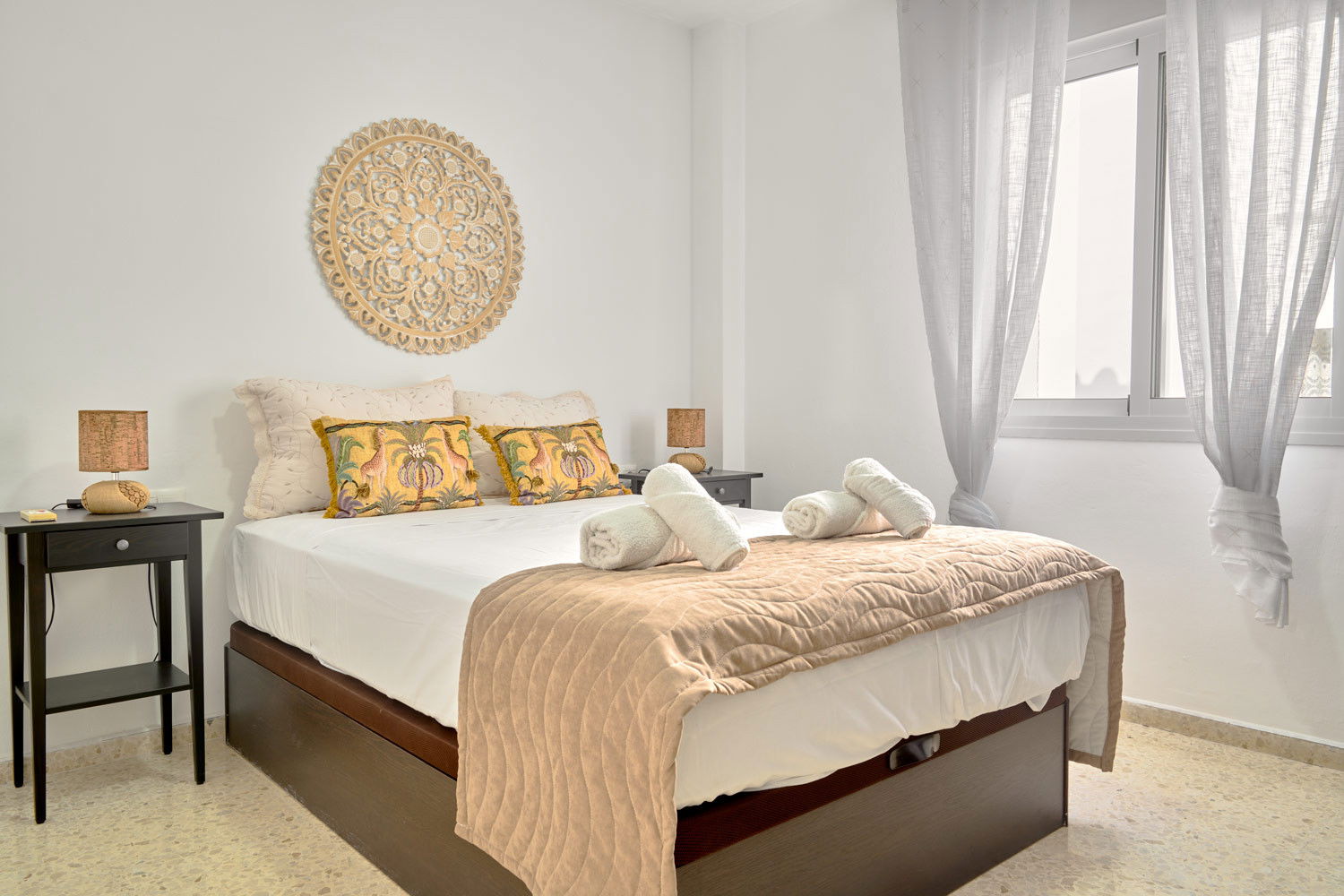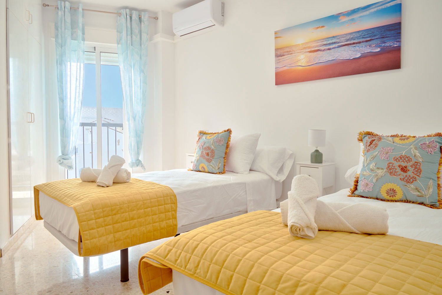 Apartment for 5 in Los Huertos (Nerja Centre) + Balcony with direct sunlightEnjoy the natural light that floods every corner of this refuge in the heart of Nerja, where the south-facing sun shines directly onto the balconies from early in the morning. It is the ideal place for families looking to have breakfast with the gentle bustle of the centre before walking just a few minutes to the beach, or for those who need a bright teleworking space thanks to its built-in desk in the living room.