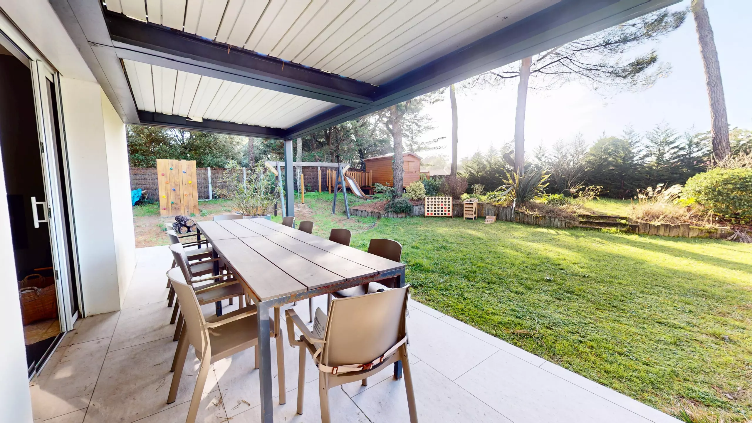 In front of the veranda, a second terrace completes the outdoor spaces.
