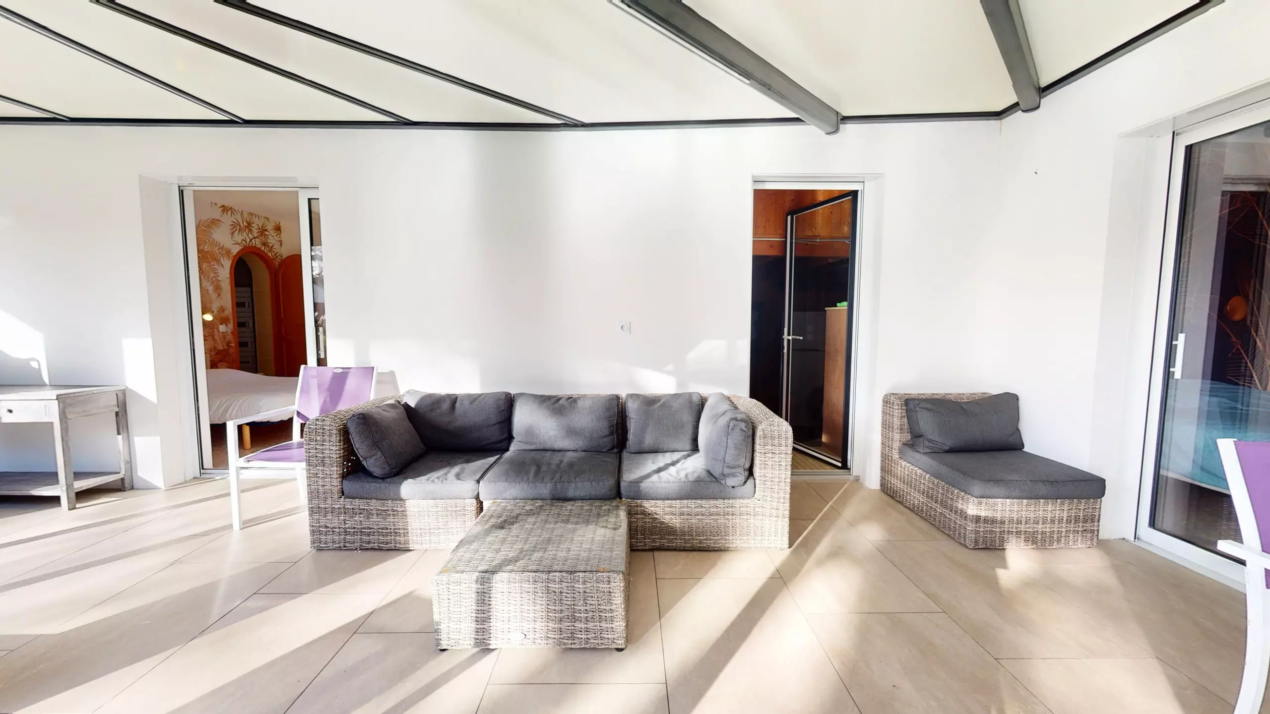 From the living room, you have direct access to a large terrace furnished with garden furniture.