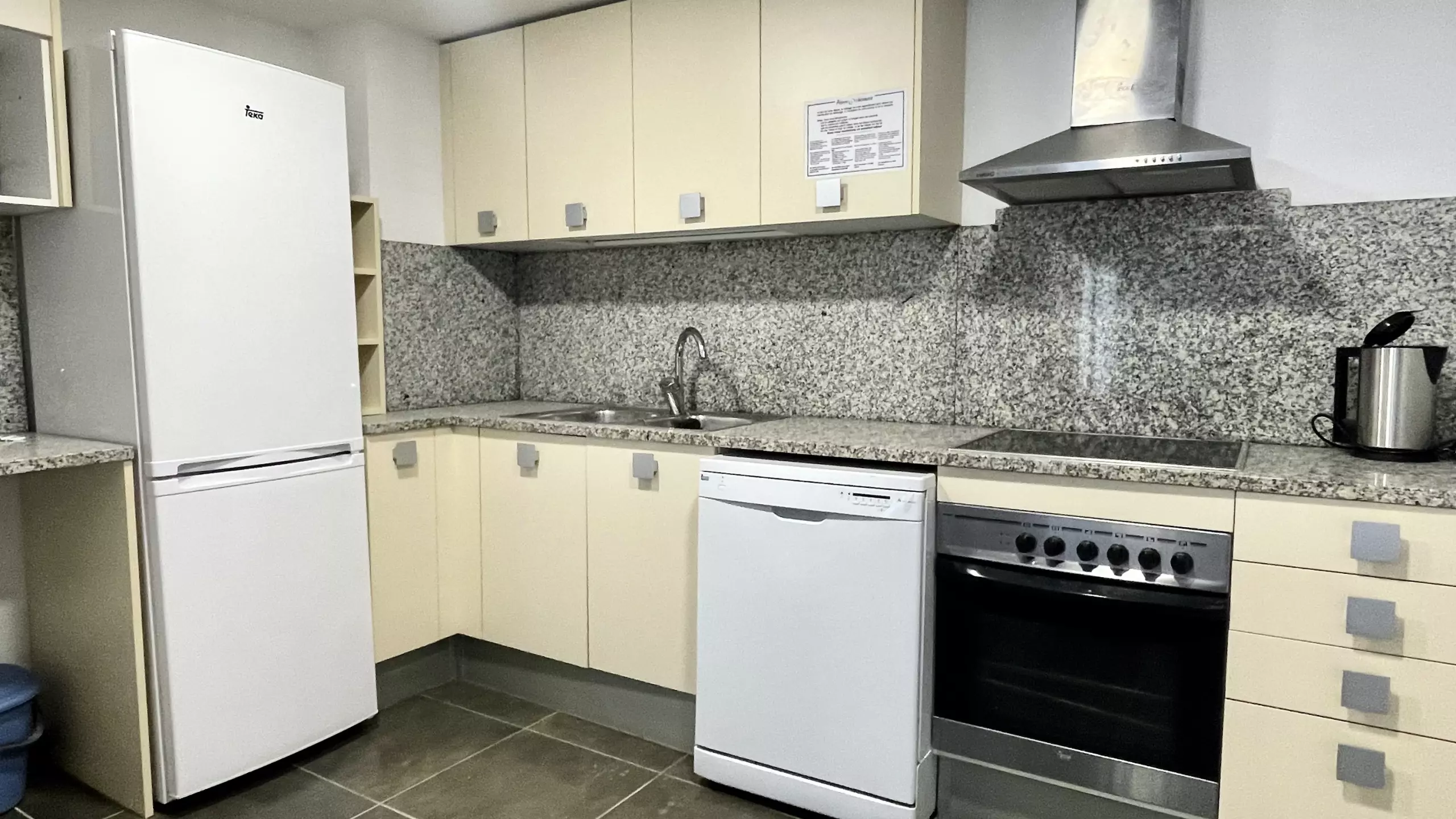 The apartment has two well-spaced bedrooms: a master bedroom with a double bed and another with two single beds, as well as a sofa bed to accommodate more people. The living area is spacious and bright, with a fully equipped open-plan kitchen that will make preparing family meals easy.