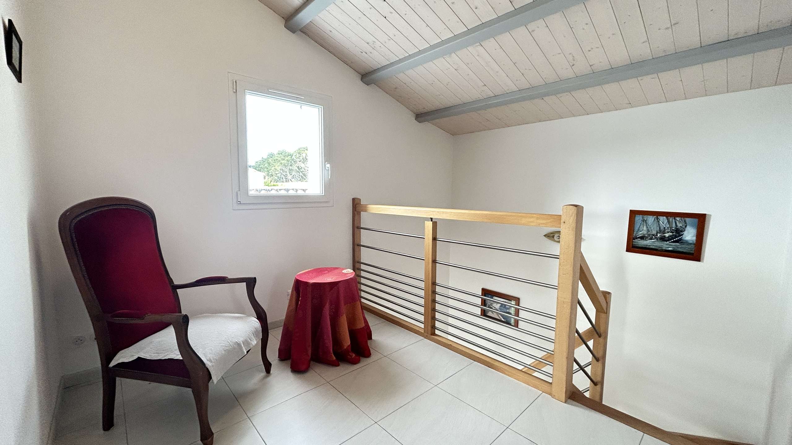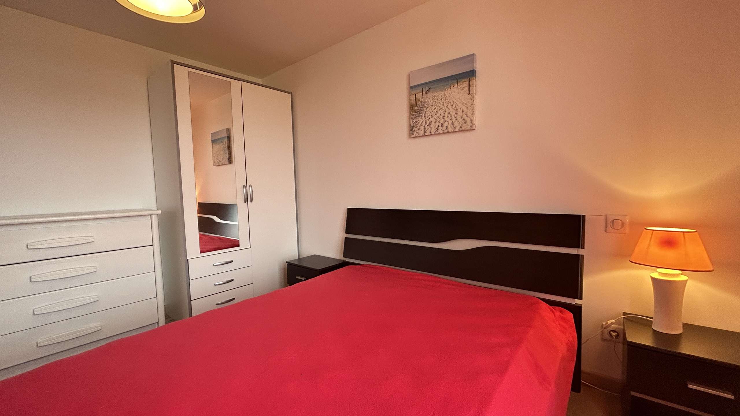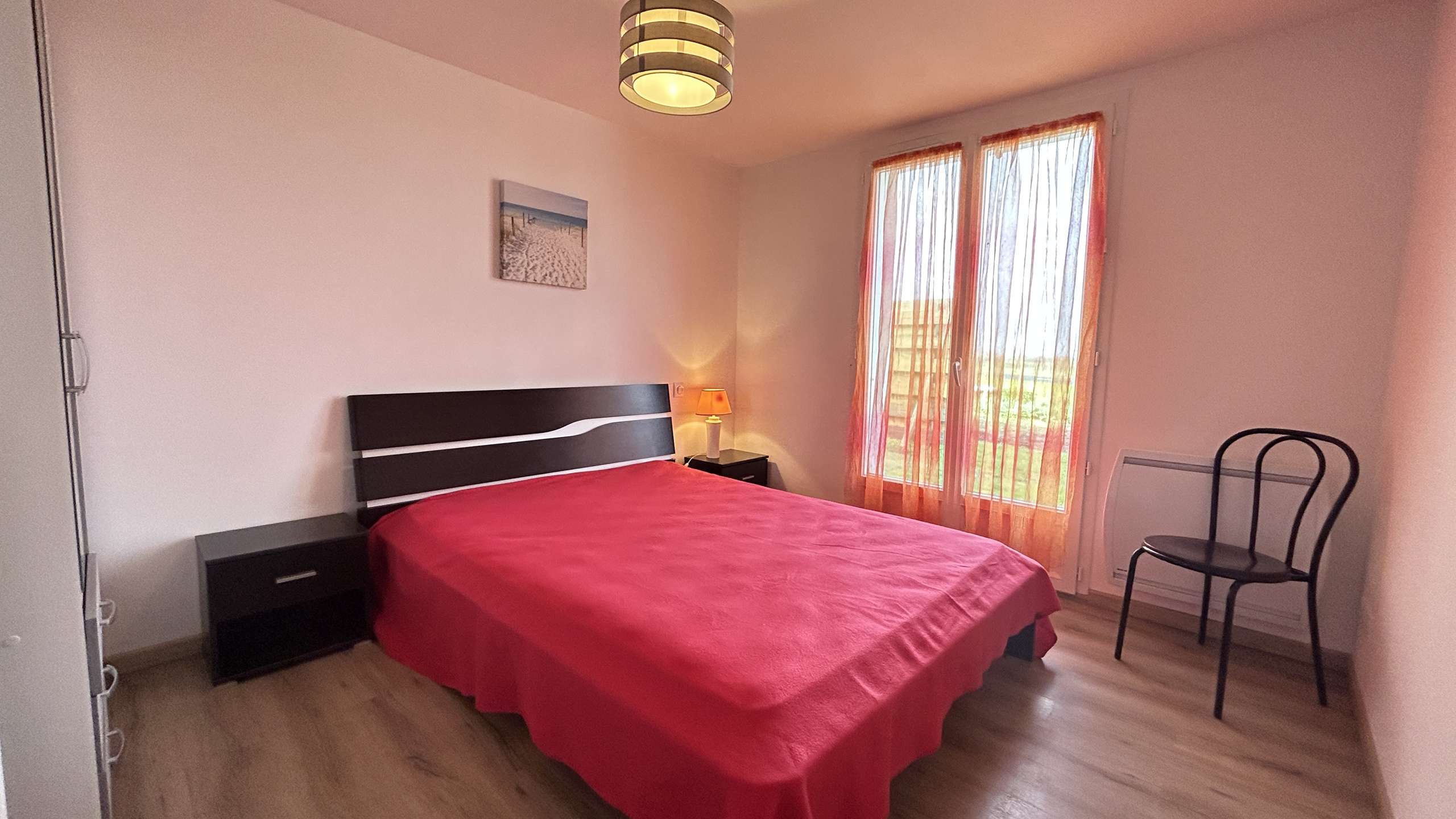 BARBATRE (85) - LA MAISON ROUGE DISTRICT 4-room house - approximately 105 m² - up to 6 people 800 m from a beautiful beach and close to the dunes, this new independent house located in a dead end, consists on the ground -floor of a living room with television, an American-style kitchen offering the necessary comfort, a pantry, a bedroom with a double bed, as well as a shower room and separate WC. The floor has two bedrooms totaling a double bed and two single beds, another bathroom and a toilet. The advantages of this holiday accommodation: Enclosed grounds with garden furniture, parking in front of the house. End of stay cleaning included.
