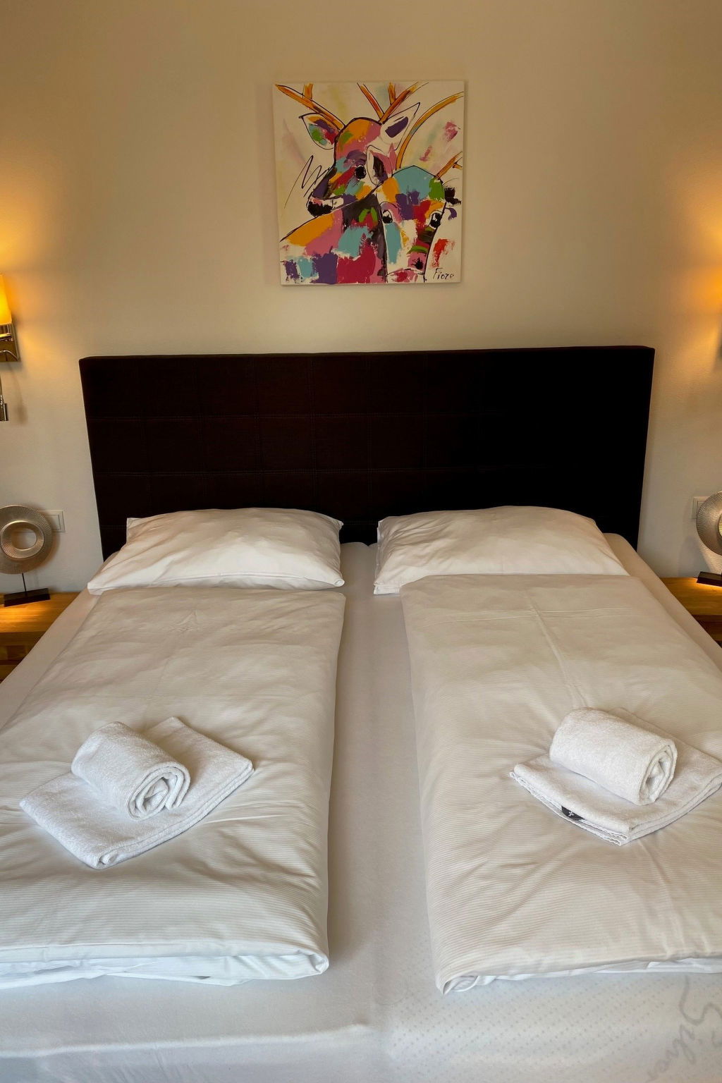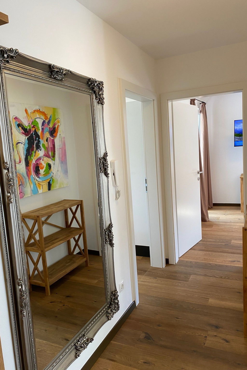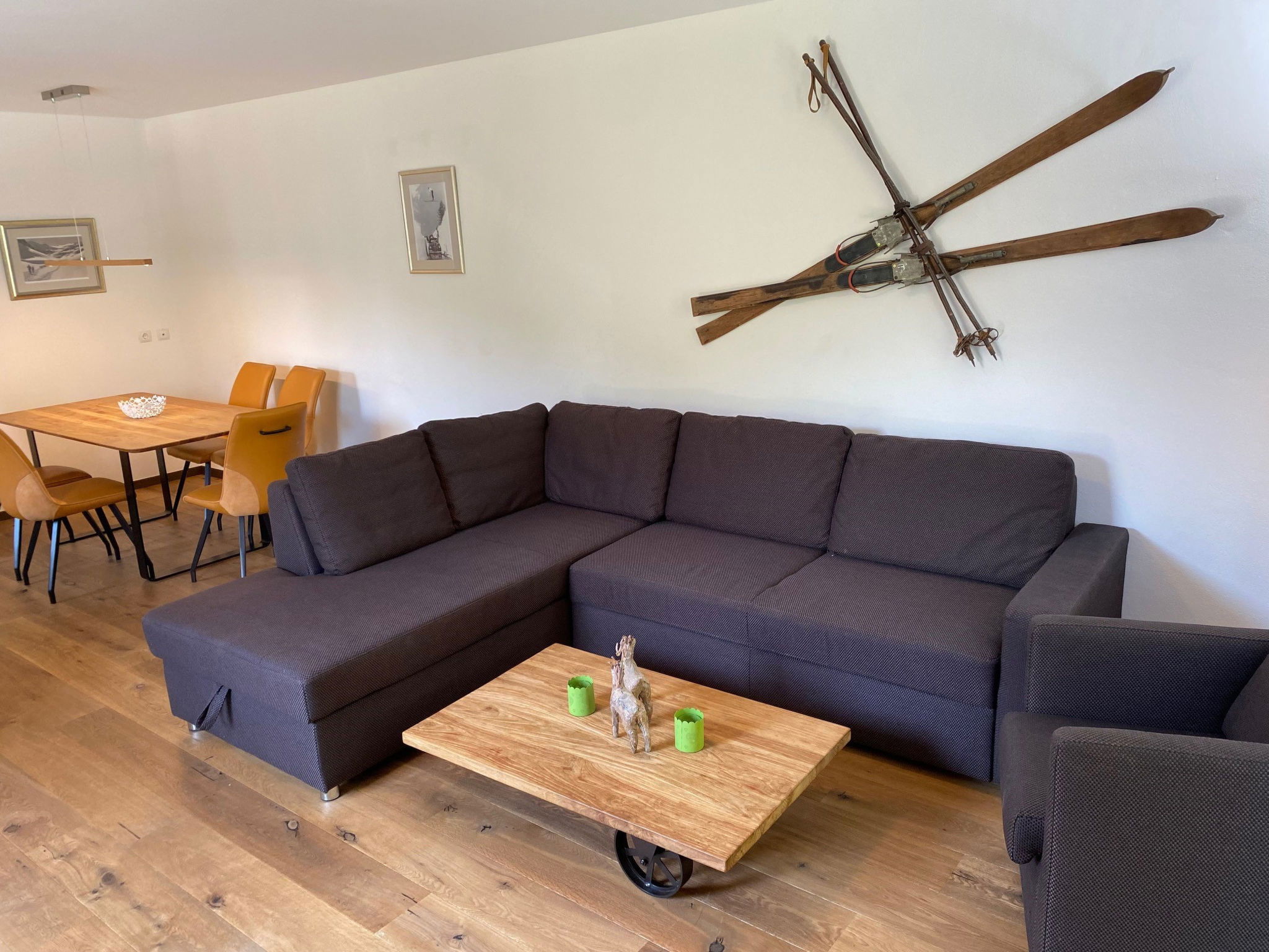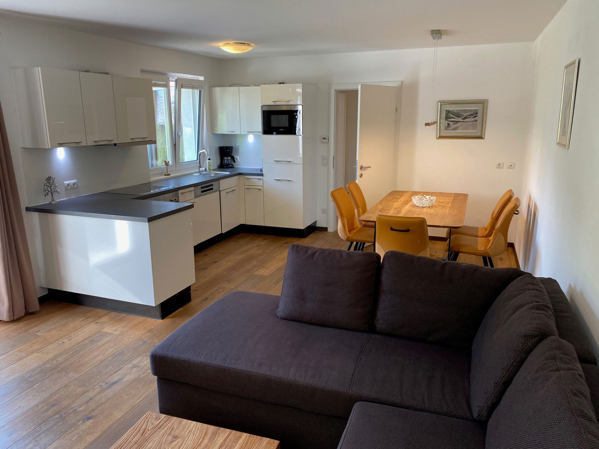 "4_Zell - FöhrenNest Zell am See", 3-room apartment 68 m2, on the ground floor. Object suitable for 6 adults. Living room with 1 sofabed, 1 pull-out bed and TV. 1 room with 1 french bed and TV. 1 room with 2 beds and TV. Open kitchen (oven, dishwasher, 4 ceramic glass hob hotplates, toaster, kettle, microwave, freezer, electric coffee machine). Shower/WC. Terrace 30 m2. View of the mountains. Facilities: washing machine, iron, hair dryer. Internet (WiFi, free). Parking (2 cars). Please note: non-smokers only. Maximum 2 pets/ dogs allowed.