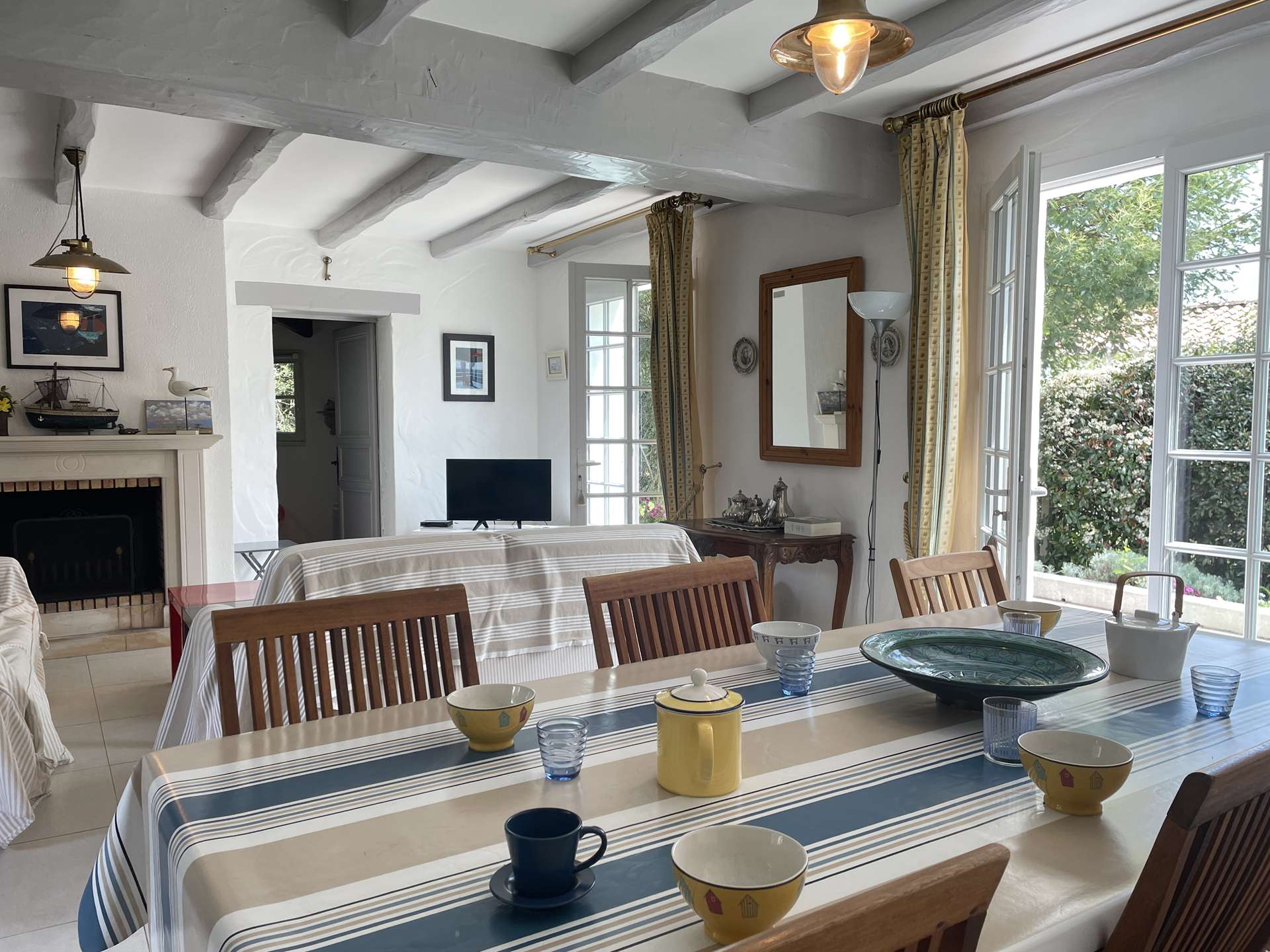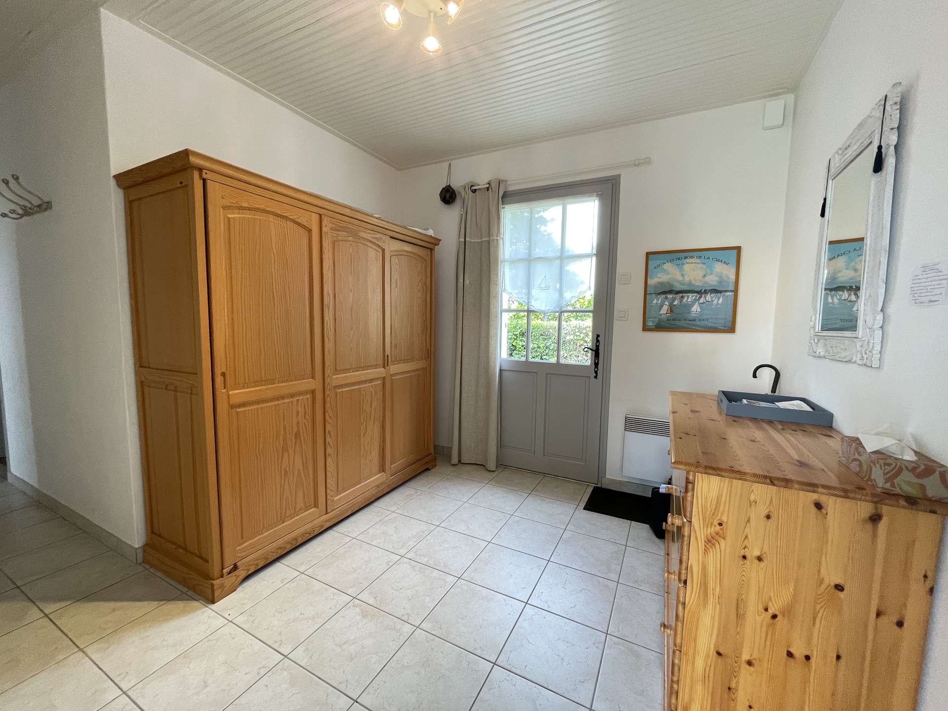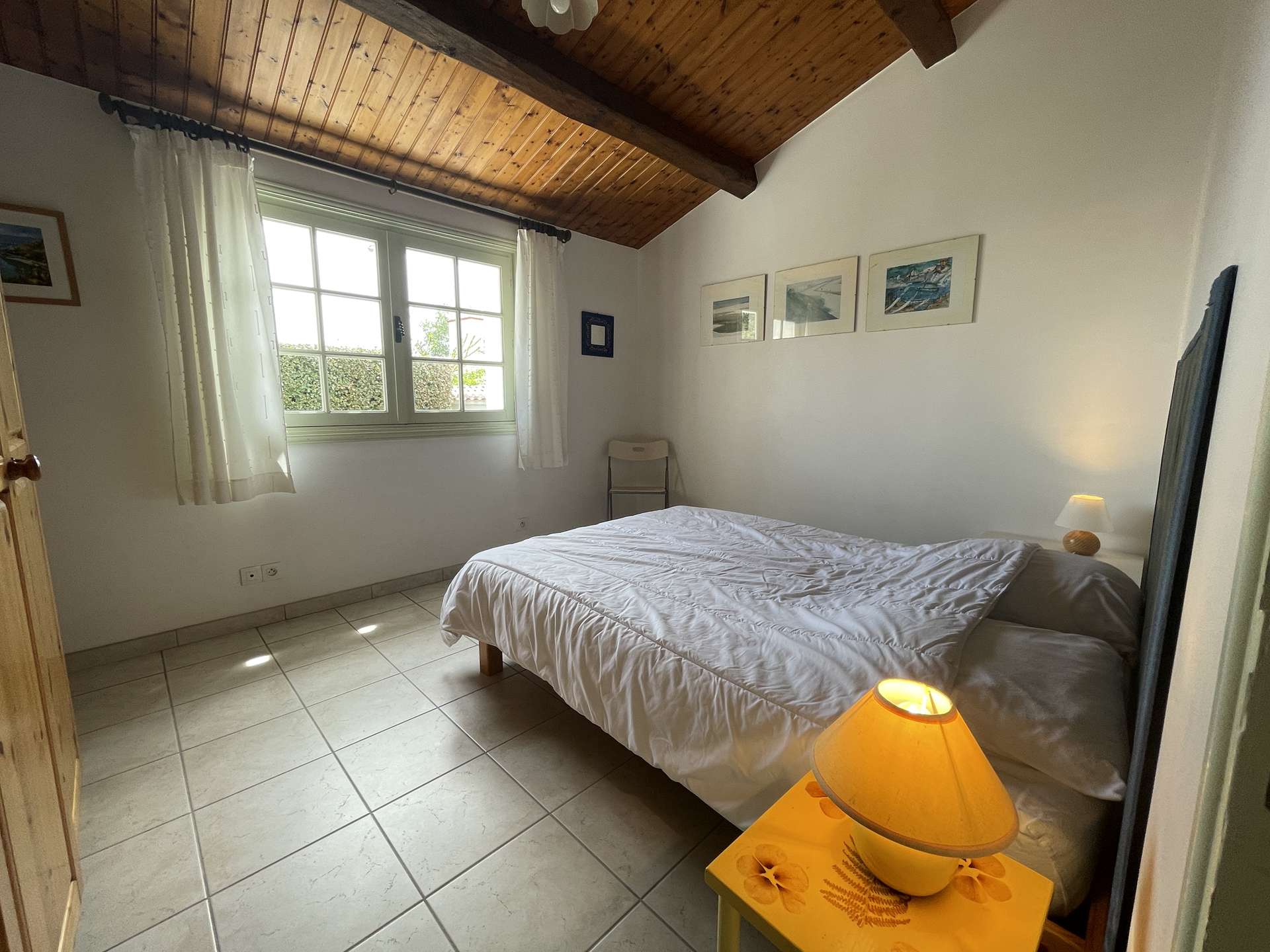 Noirmoutier en l'Ile (85) - Bois de la Chaise district 5-room house of approximately 140 m² - up to 8 people Located 950 m from Saint Pierre beach and 1,500 m from the shops, this comfortable house consists on the ground floor of an entrance, a beautiful living room opening onto the terrace and with television and WIFI, a kitchen offering the necessary comfort, two bedrooms totaling a double bed and two single beds, a shower room, a toilet, a storeroom. Upstairs two bedrooms totaling a double bed and two single beds, a bathroom with wc. Parking is on the property. The advantages of this rental by the sea: In a beautiful environment, you will enjoy the beautiful garden, the terrace with awning and equipped with garden furniture and barbecue. The neighborhood is quiet and pleasant. Cleaning with disinfection included.