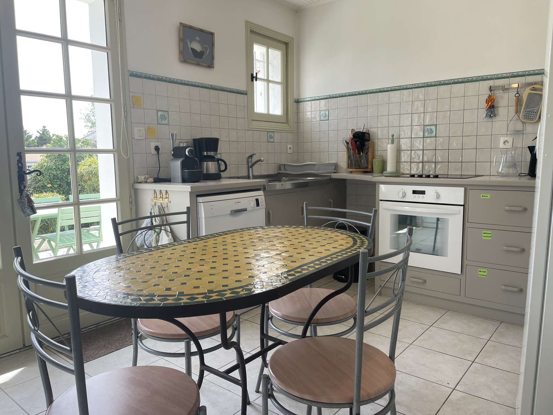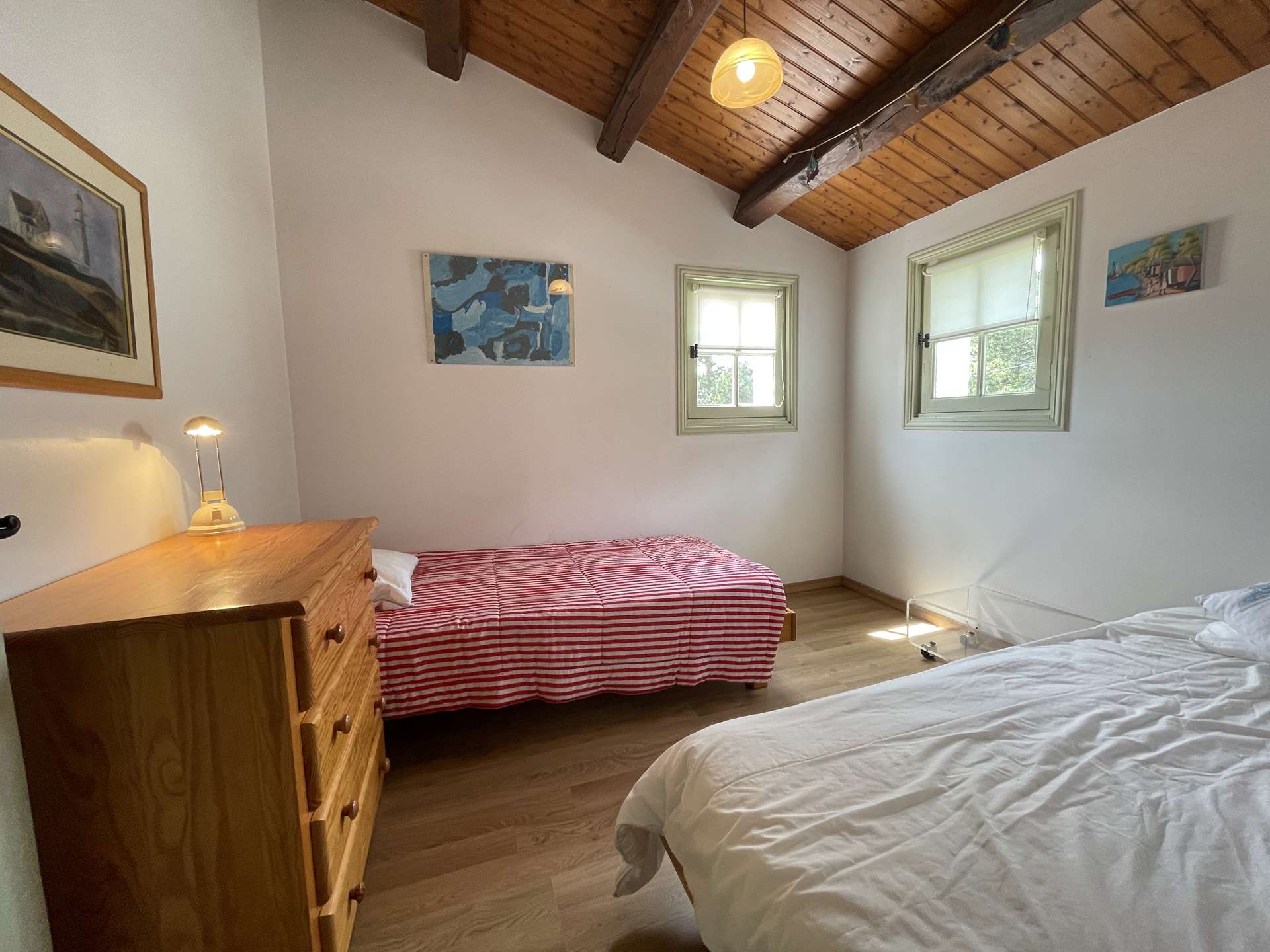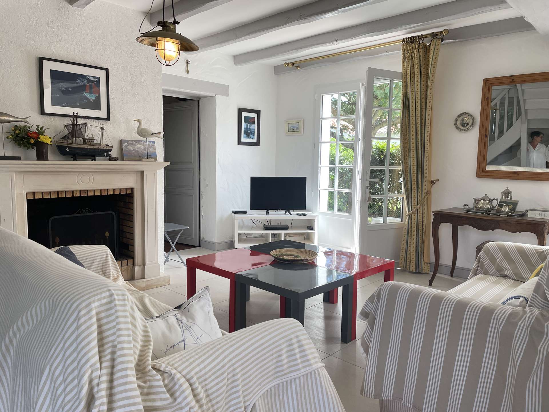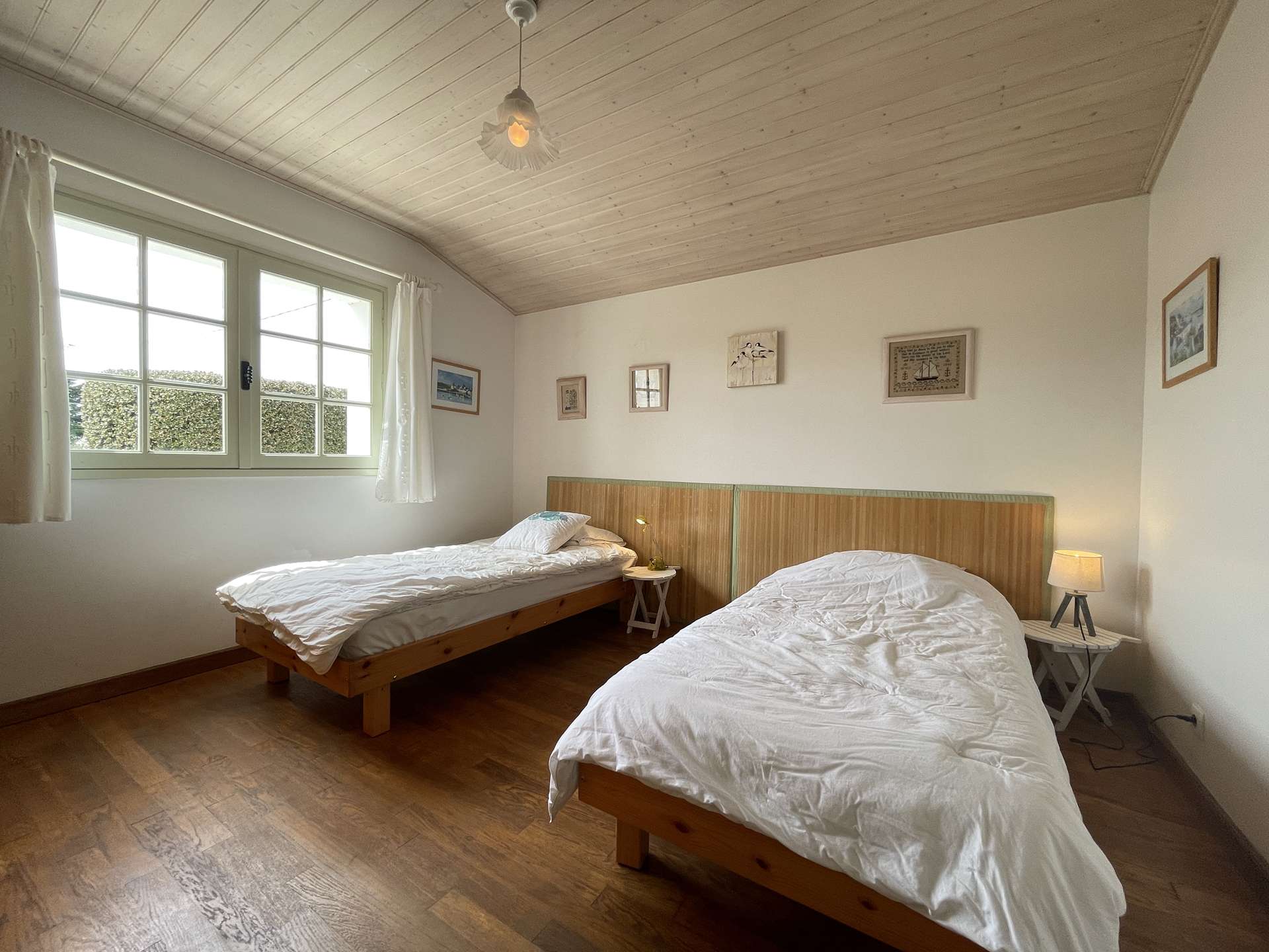 Noirmoutier en l'Ile (85) - Bois de la Chaise district 5-room house of approximately 140 m² - up to 8 people Located 950 m from Saint Pierre beach and 1,500 m from the shops, this comfortable house consists on the ground floor of an entrance, a beautiful living room opening onto the terrace and with television and WIFI, a kitchen offering the necessary comfort, two bedrooms totaling a double bed and two single beds, a shower room, a toilet, a storeroom. Upstairs two bedrooms totaling a double bed and two single beds, a bathroom with wc. Parking is on the property. The advantages of this rental by the sea: In a beautiful environment, you will enjoy the beautiful garden, the terrace with awning and equipped with garden furniture and barbecue. The neighborhood is quiet and pleasant. Cleaning with disinfection included.