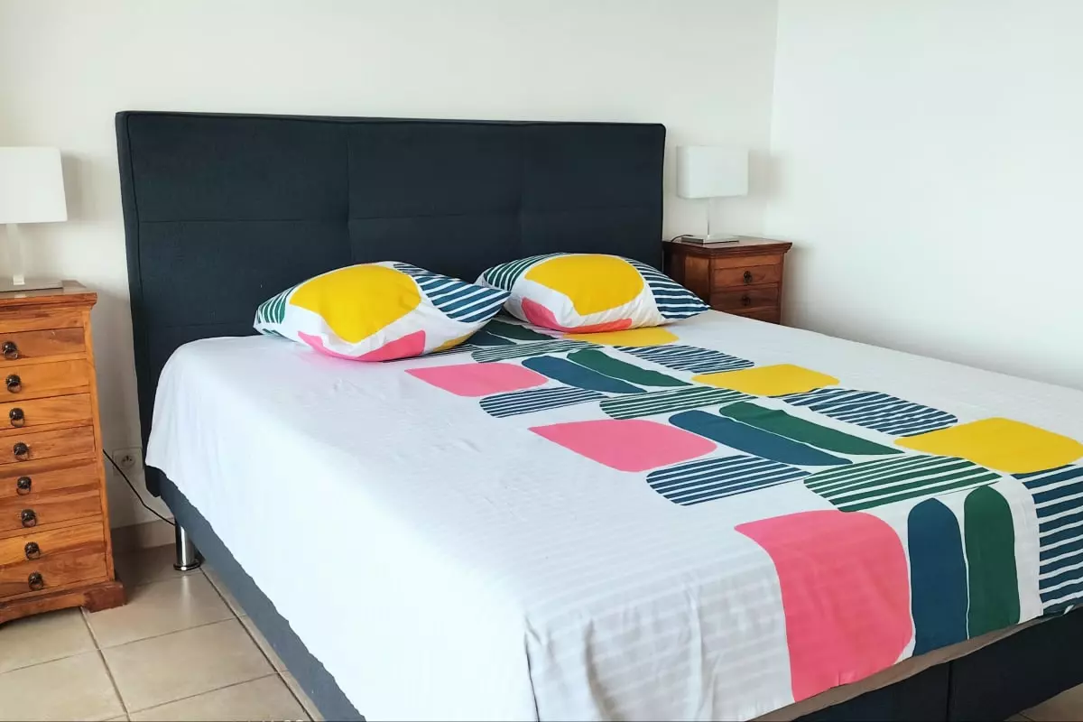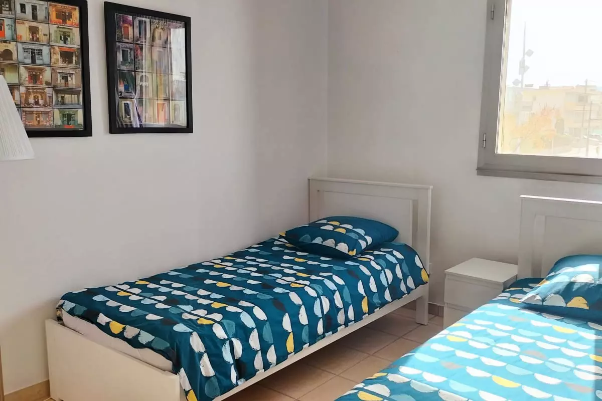 The sleeping area consists of a spacious bedroom with a large double bed of 180x200 and a second bedroom with two single beds of 90x190 to comfortably accommodate up to 4 travelers.