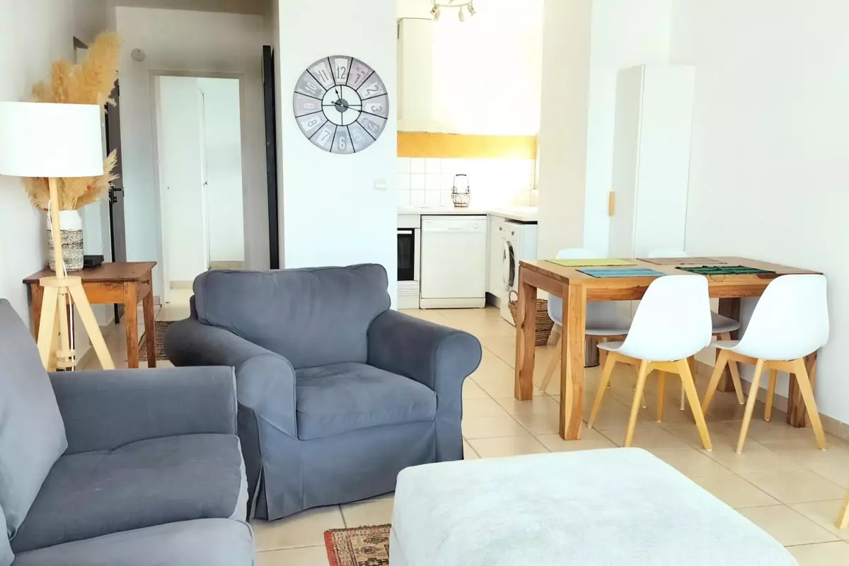 Discover this superb 60 m² apartment bathed in light, a veritable balcony overlooking the Mediterranean, ideally located in Six-Fours-les-Plages for a stay combining comfort and une conciergerie.