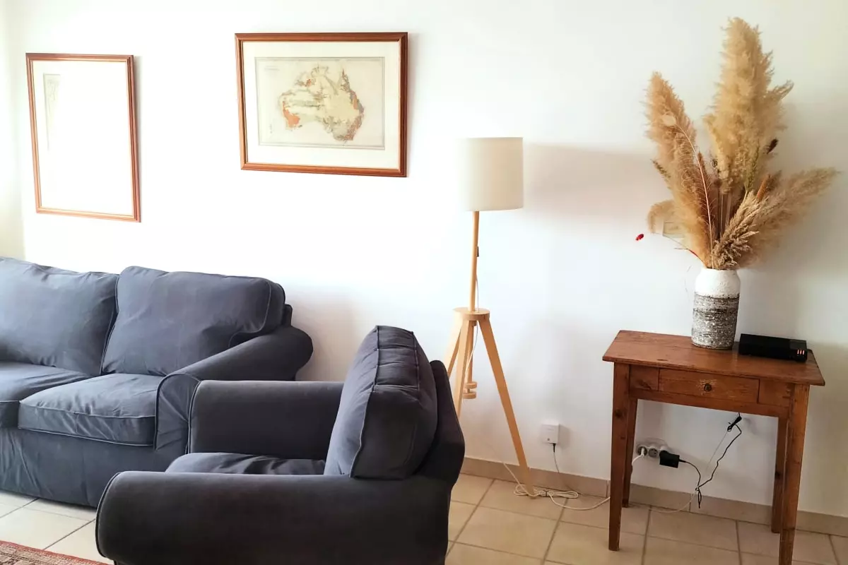 Located on the second floor of a quiet residence, this air-conditioned apartment features a relaxing living room with a television and a fully equipped kitchen with a dishwasher, oven, microwave, coffee machine, refrigerator and washing machine, not forgetting the iron and hair dryer.