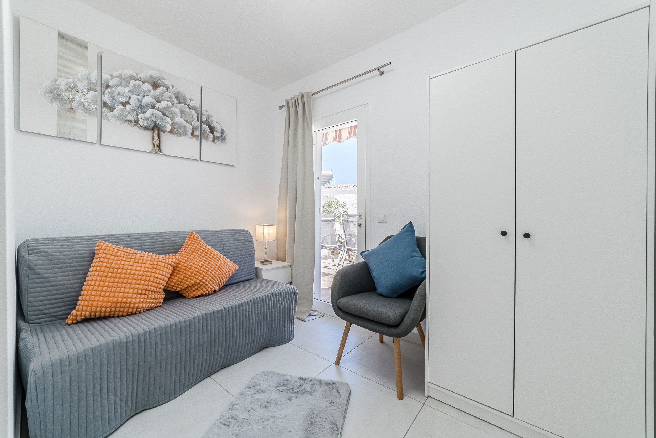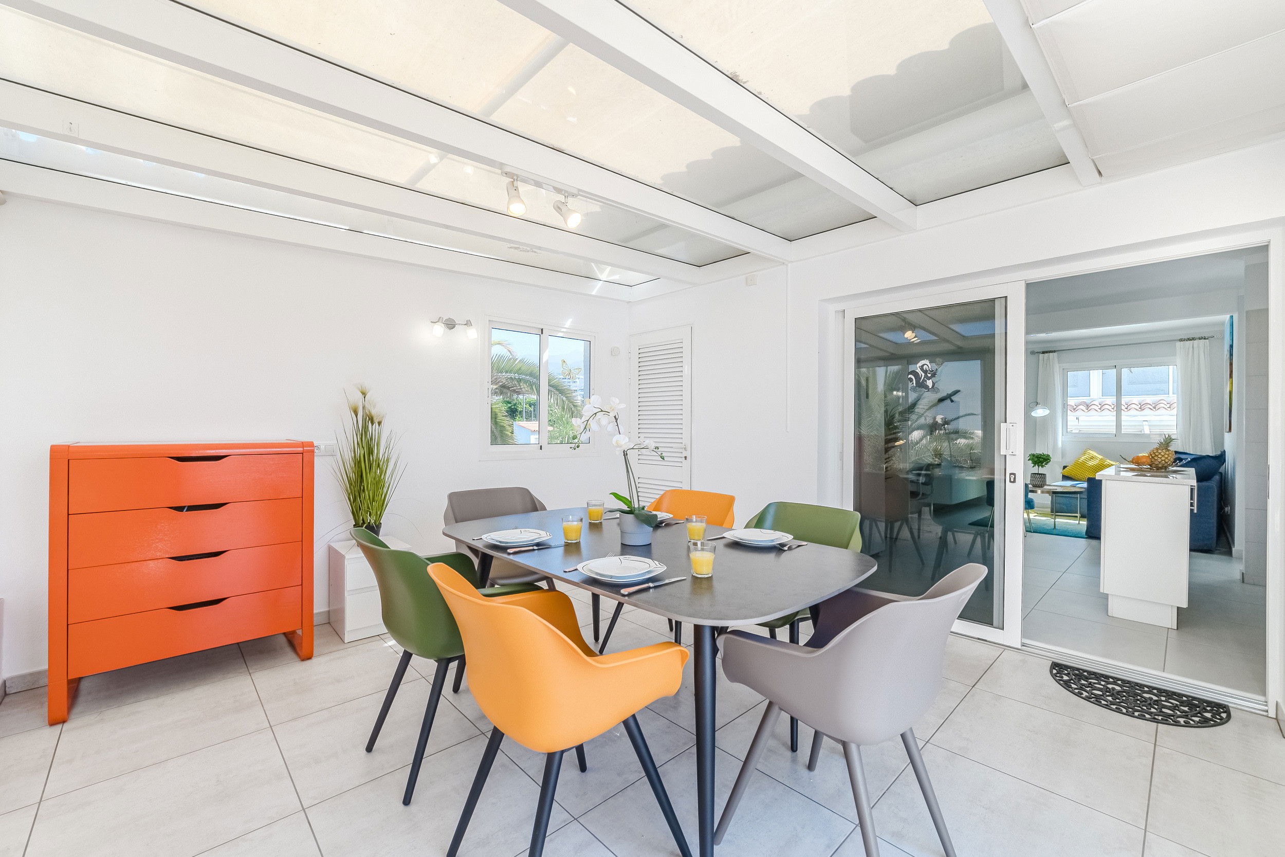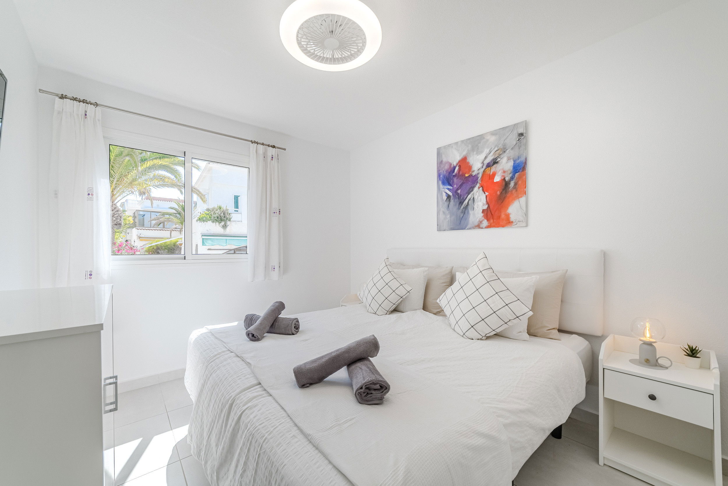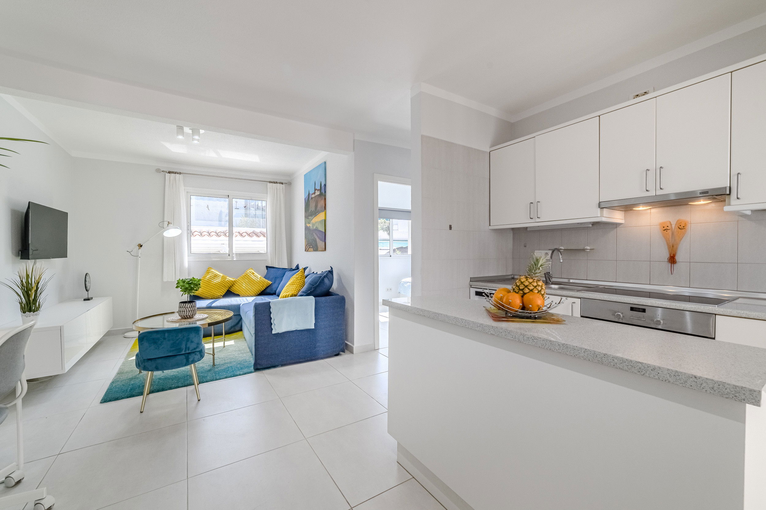 Welcome to a newly renovated apartment that leaves nothing to be desired. Just 200 metres from Tenerife's most beautiful beach promenade, you will find stylishly furnished accommodation in a well-maintained and quiet complex – ideal for those seeking comfort, tranquillity and proximity to the sea. The apartment has three bedrooms – two with comfortable double beds and one with a cosy sofa bed. In addition, there is a large sofa bed for two more people in the living area. The modern bathroom is as high-quality as it is functional. A special highlight is the light-filled conservatory, which houses the dining area – perfect for convivial evenings or relaxed breakfasts. If you want to do a little work while on holiday, you will find a practical desk in the living area. The spacious terrace with sea views is ideal for sunbathing and relaxing. The heated communal pool – new this year – rounds off the offer and ensures year-round bathing pleasure. Here you are just a few steps away from restaurants, cafés, shopping facilities and, of course, the Atlantic Ocean. Whether as a family, couple or digital nomad, this apartment is the perfect starting point for unforgettable days in Tenerife.