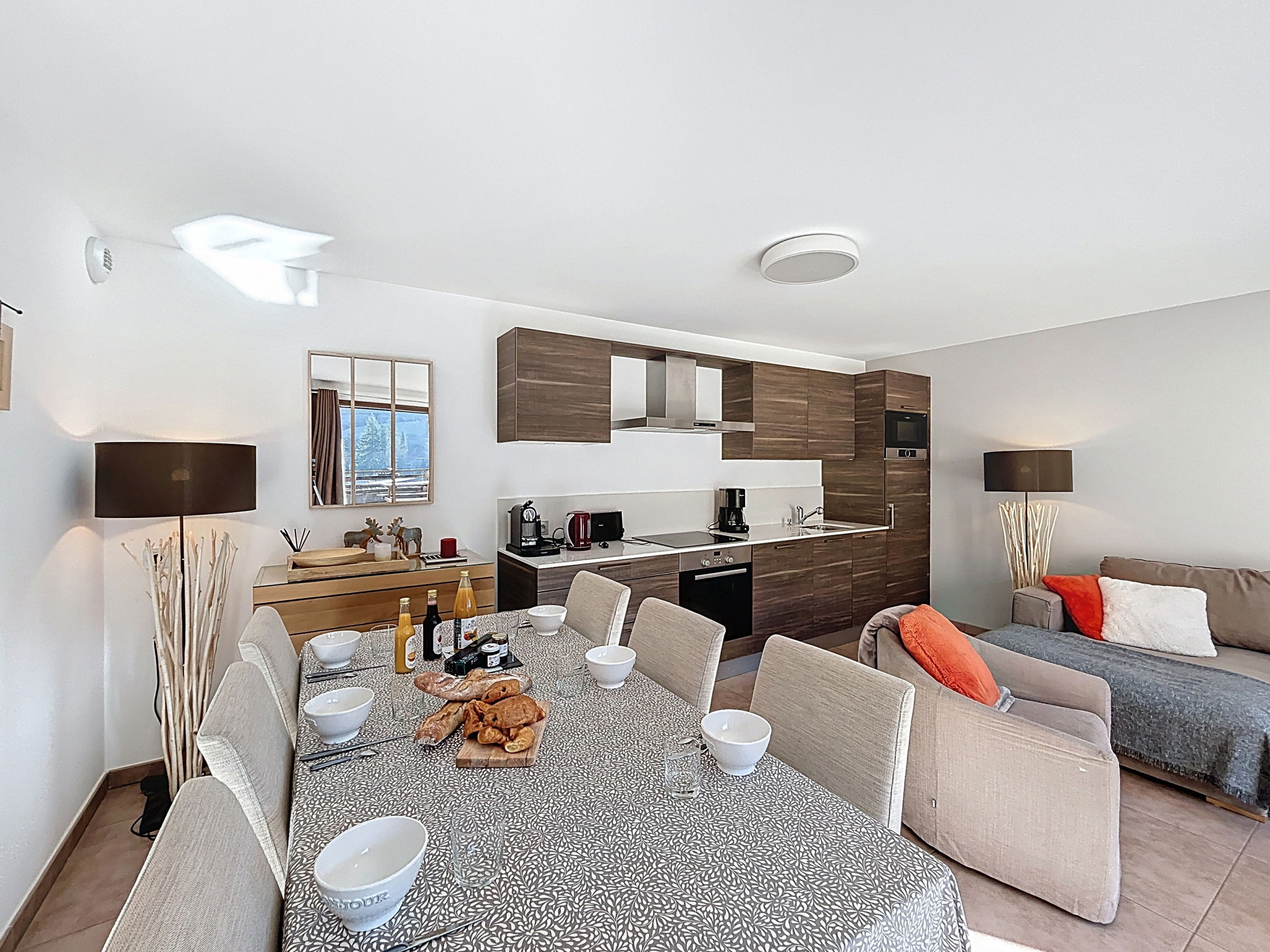 With its large terrace, it offers a magnificent view of the slopes, ideal for relaxing in the open air. The warm, well-equipped interior provides optimum comfort for up to 6 people.