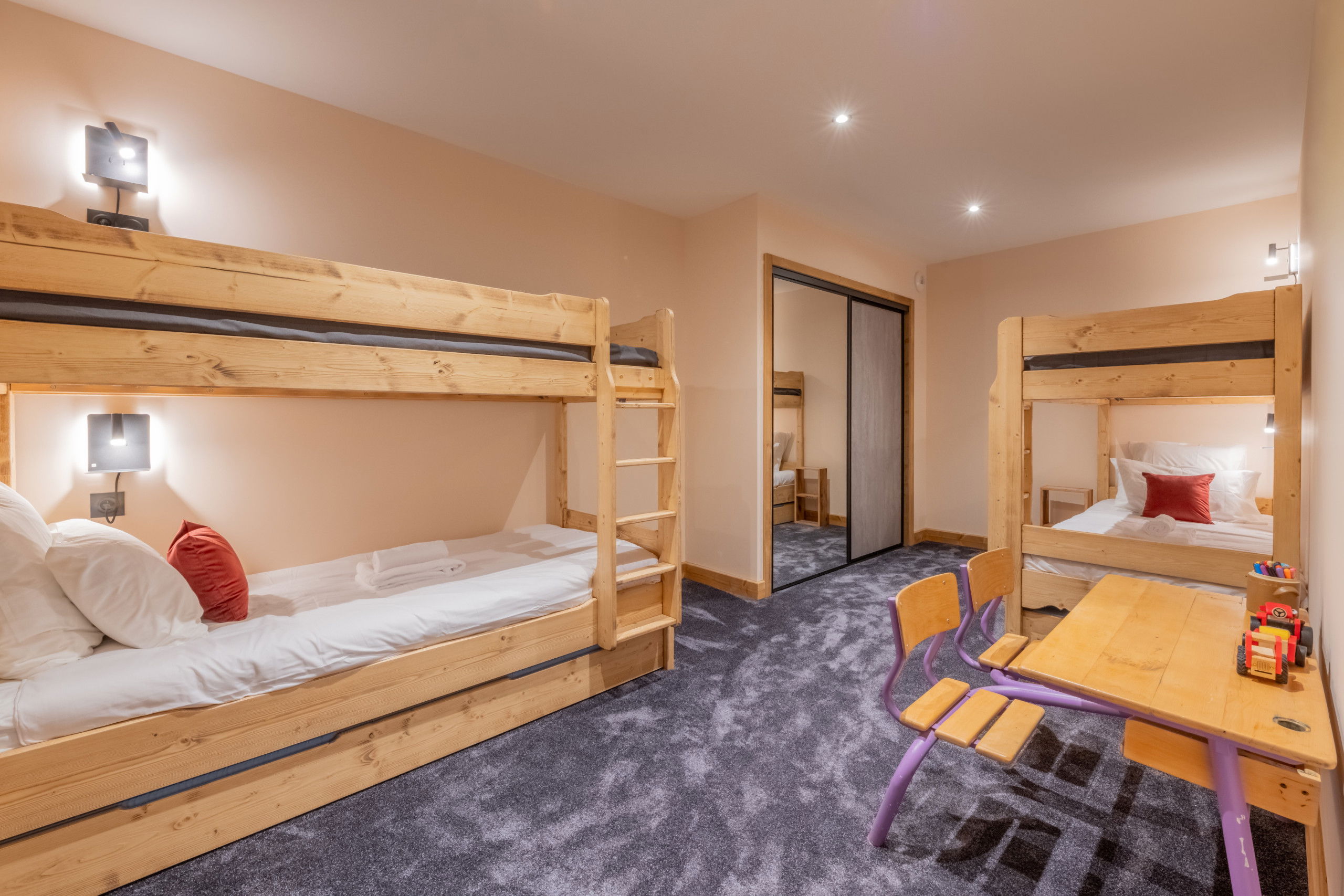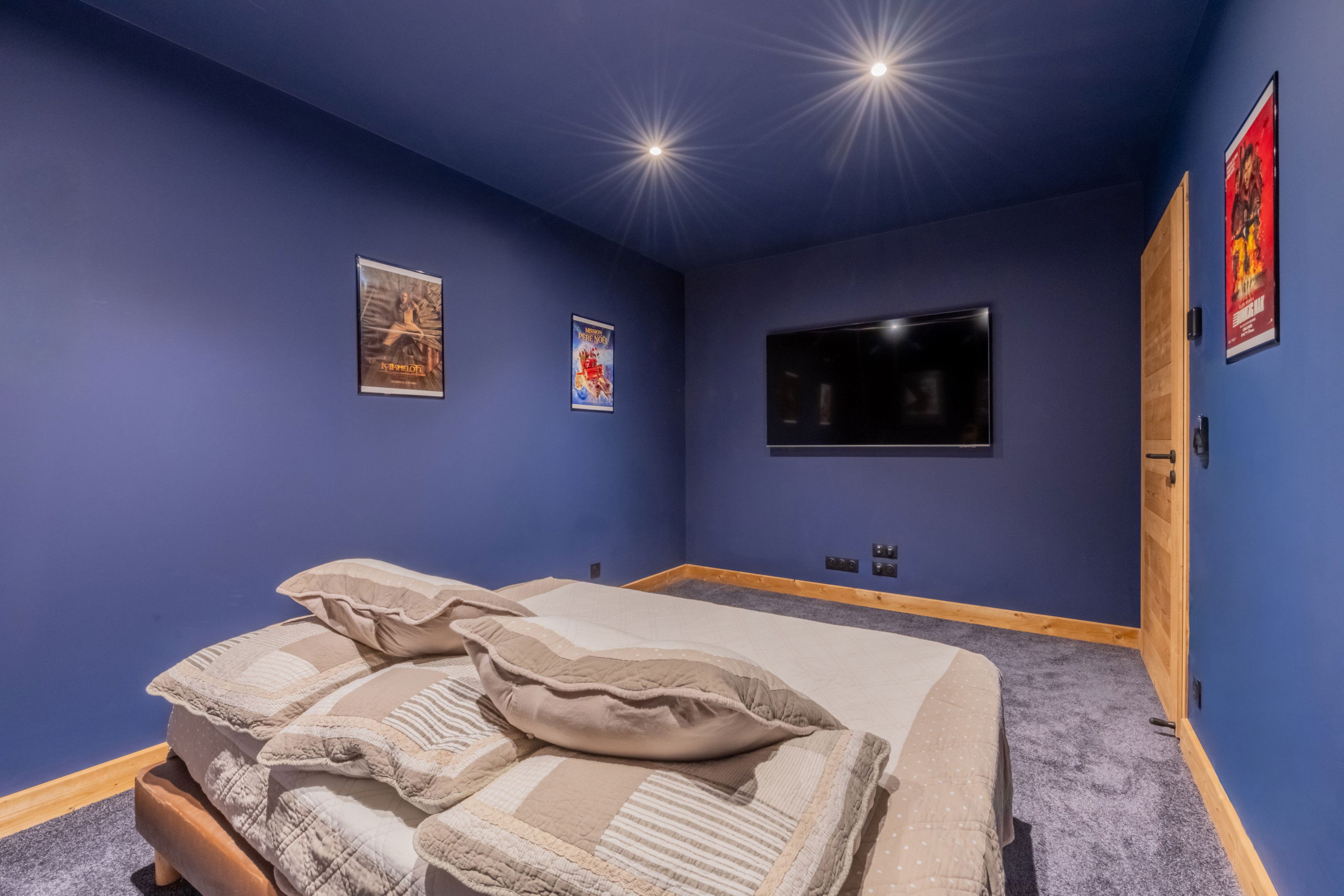 With an area of approximately 400 m², the chalet can accommodate up to fourteen people in comfortable conditions. It has six bedrooms with private bathrooms, offering each person their own space and good independence. The sleeping configuration is suitable for both family stays and groups of friends, with several rooms equipped with king-size beds and a dormitory intended for children.