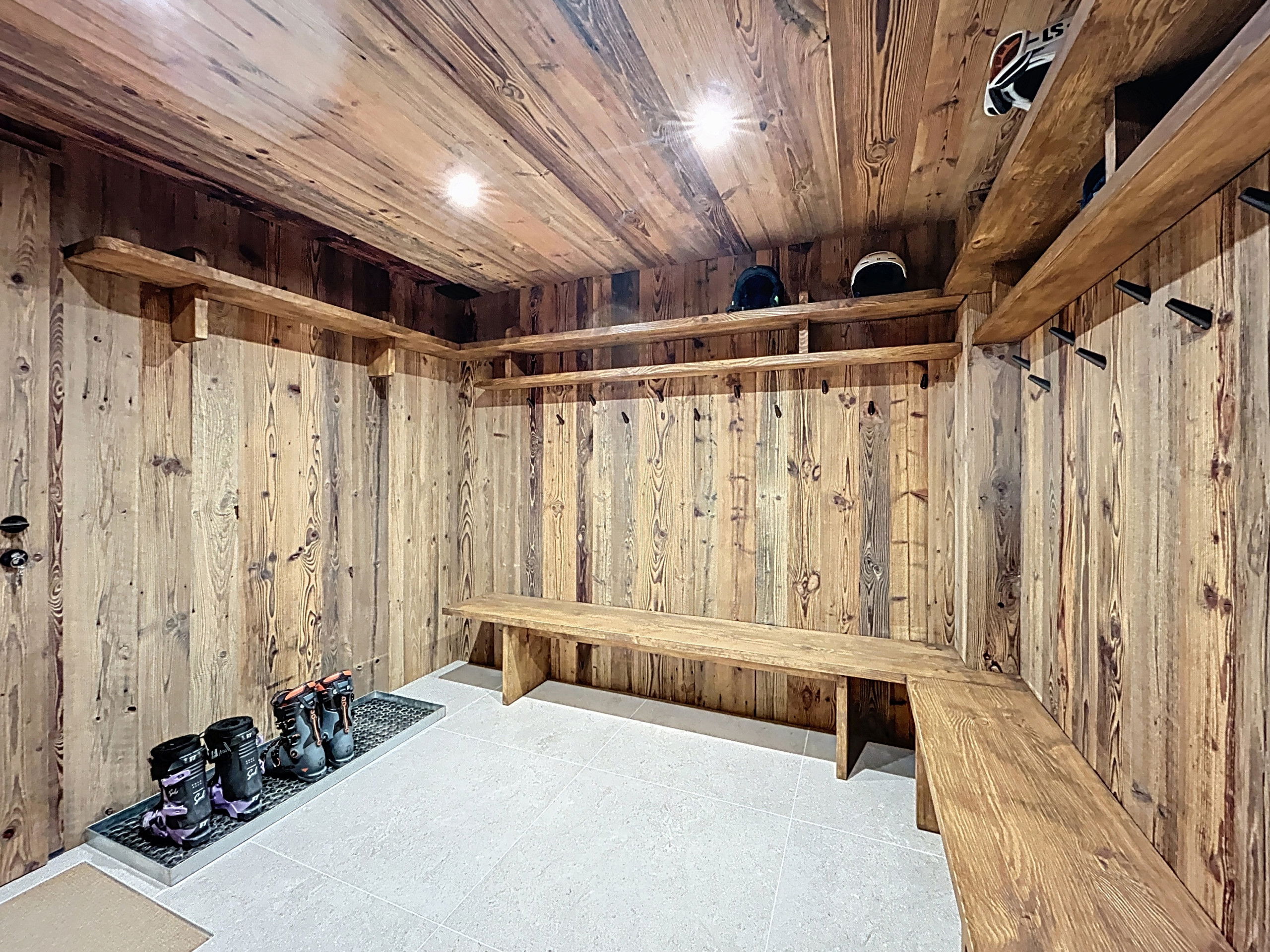 On the ground floor, the entrance with cloakroom and ski room serves two en-suite rooms, each equipped with a Queen size bed, as well as an independent WC. This level also houses a dormitory with six beds, accessible from the ground floor, with its own private bathroom. The dormitory includes a relaxation net, designed as a rest or reading area, particularly appreciated by children.