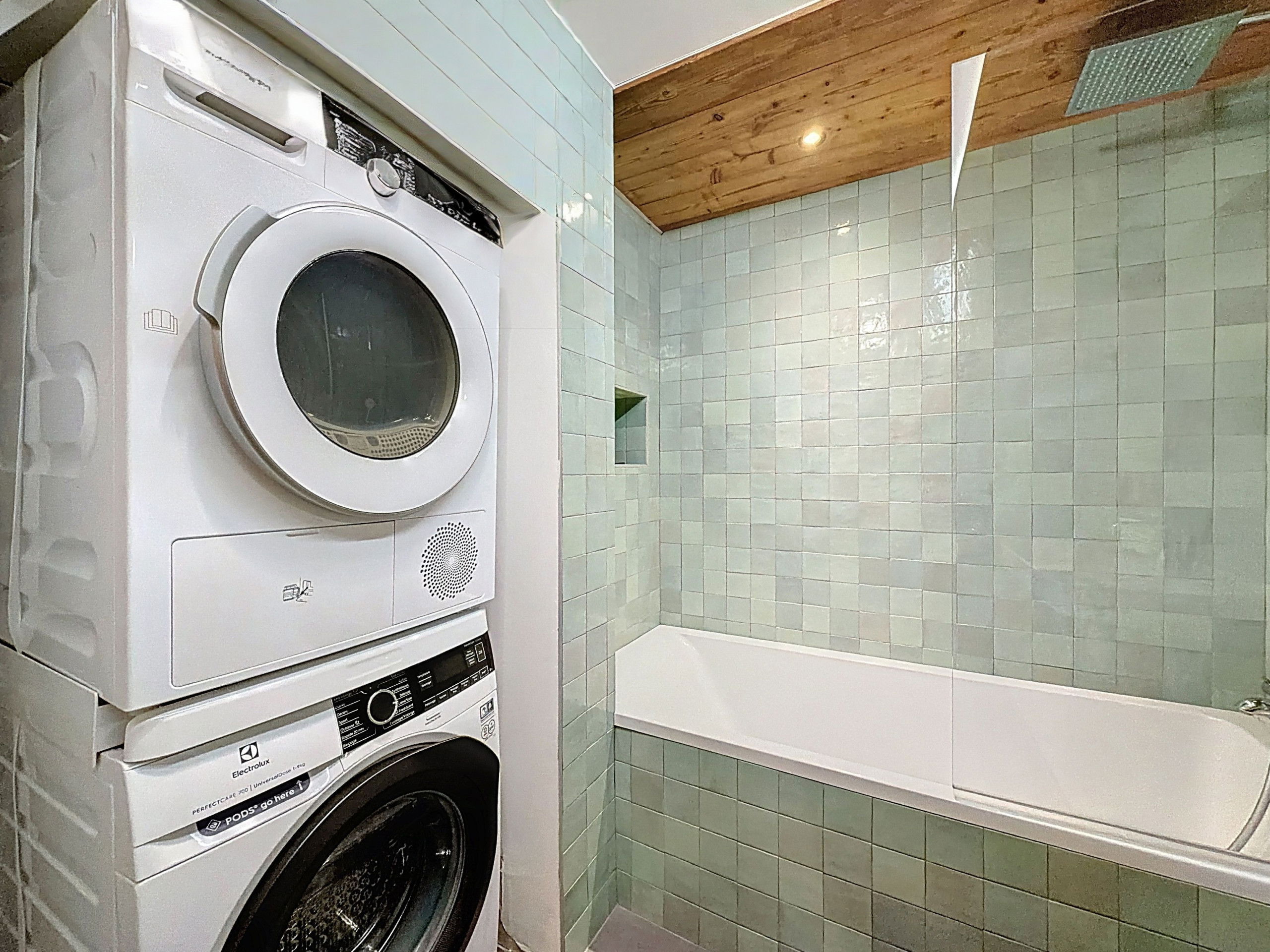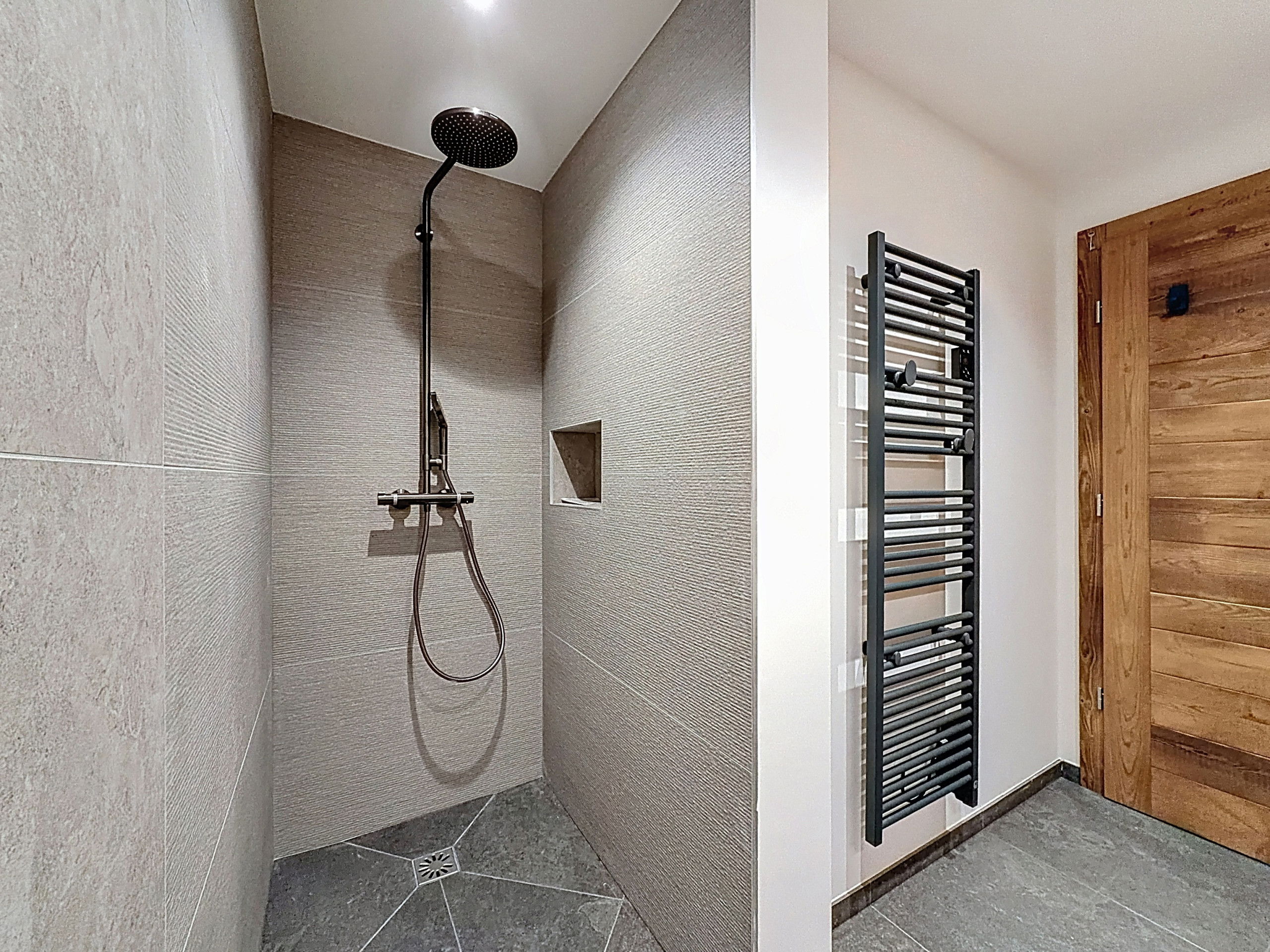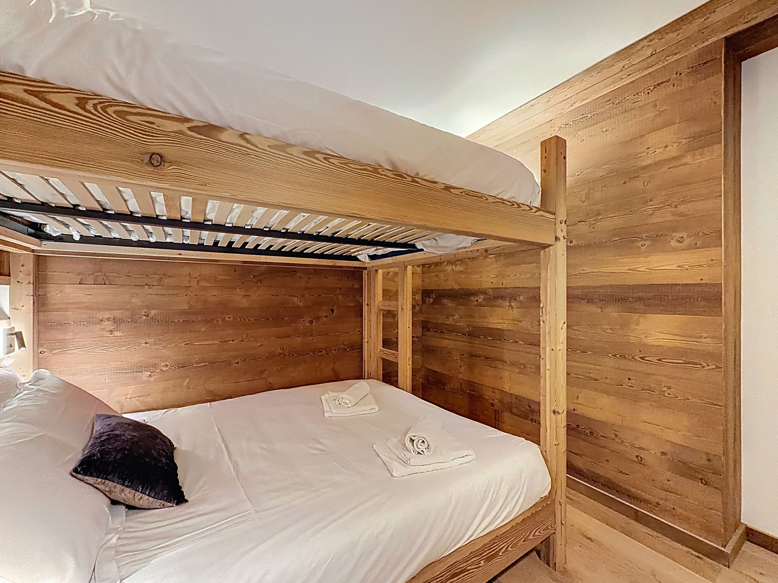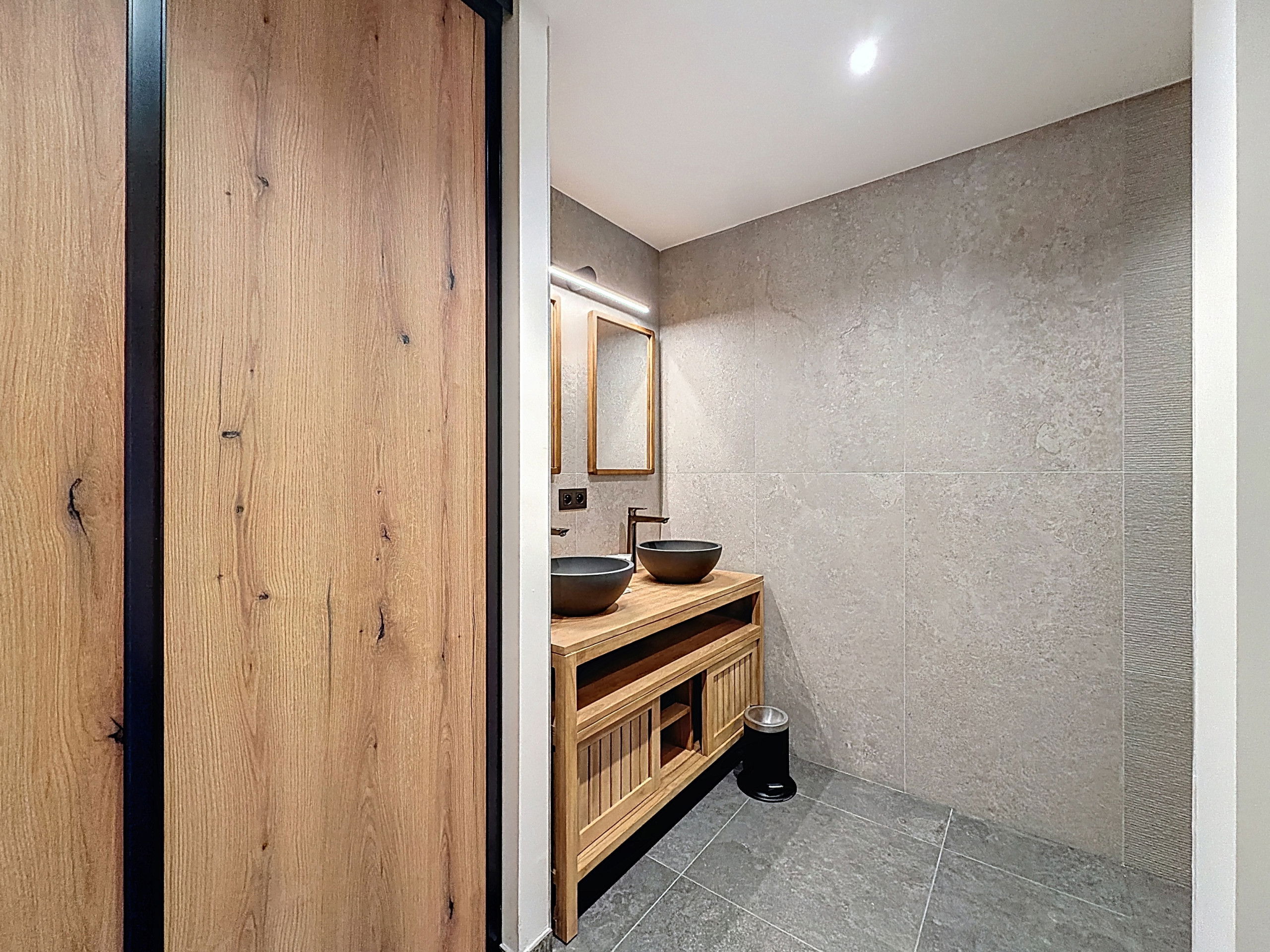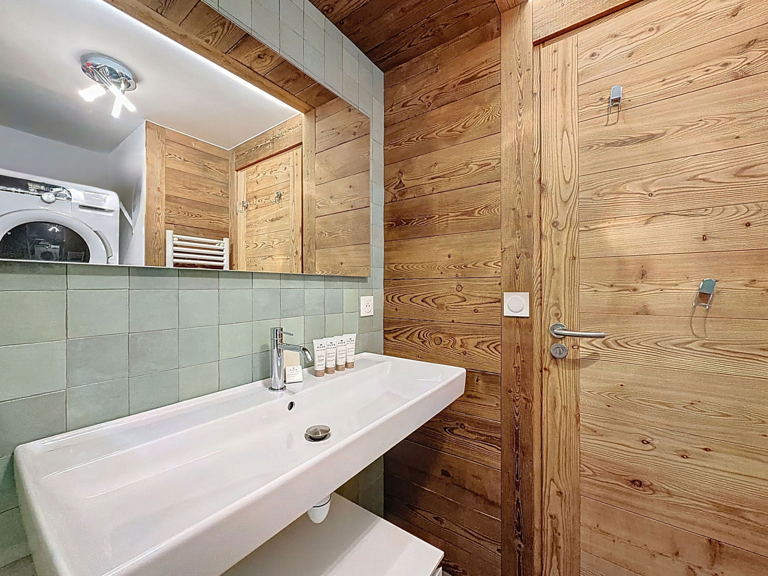 Located just 1.5 km from the village centre and perfectly served by free shuttles, it benefits from a calm environment while remaining close to activities and ski lifts. Its panoramic view and fully south-facing exposure, particularly sunny, create a bright and warm atmosphere throughout the day.