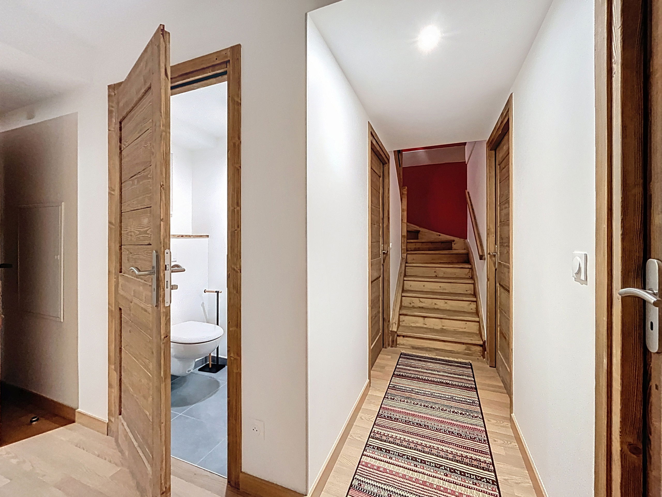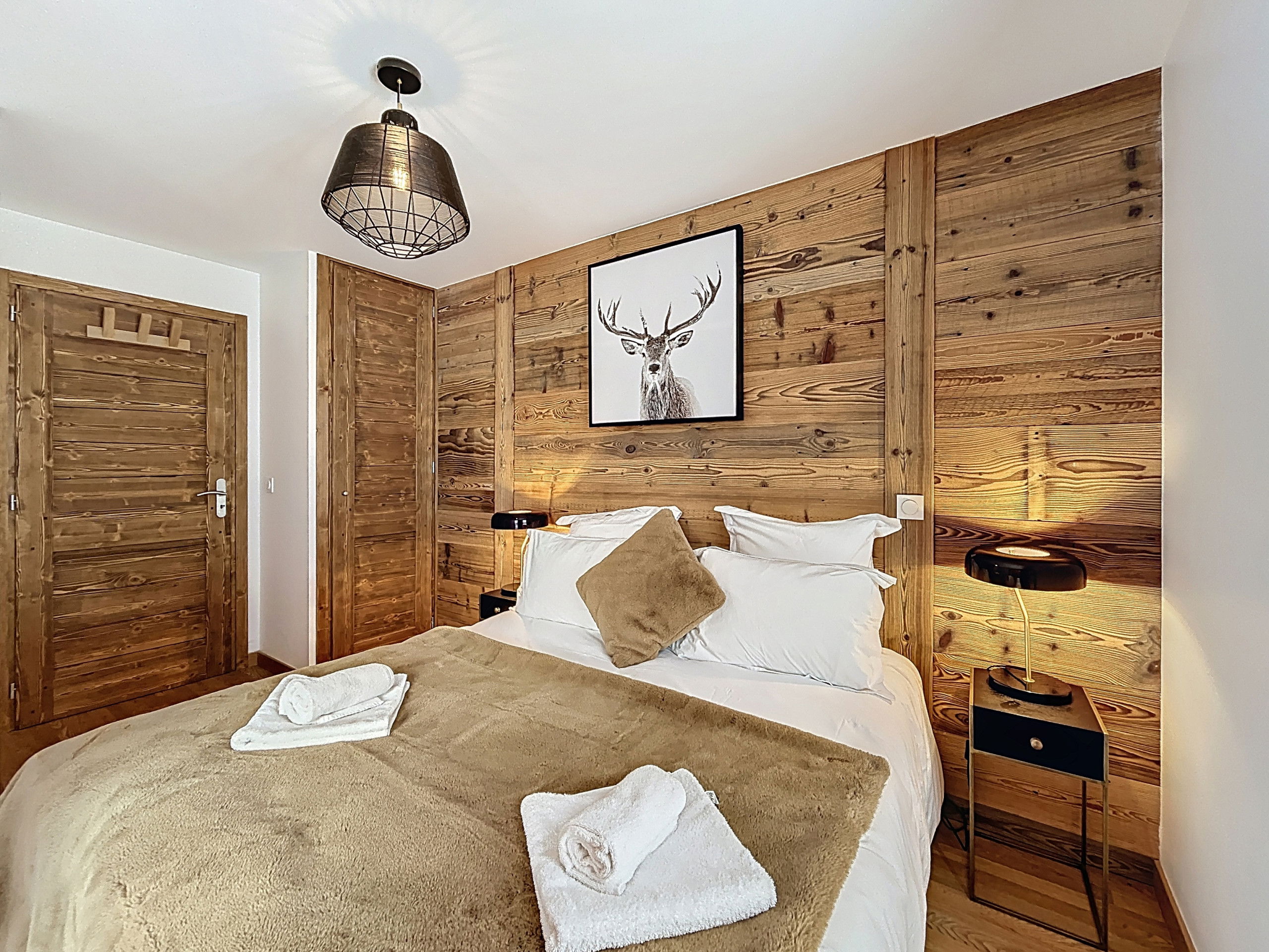 With an area of approximately 103 m², the apartment can accommodate up to eight people. It features four double bedrooms, each equipped with a queen-size bed, offering optimal comfort for family stays or trips with friends. The living spaces are bright, warm, and perfectly suited for convivial moments after skiing.