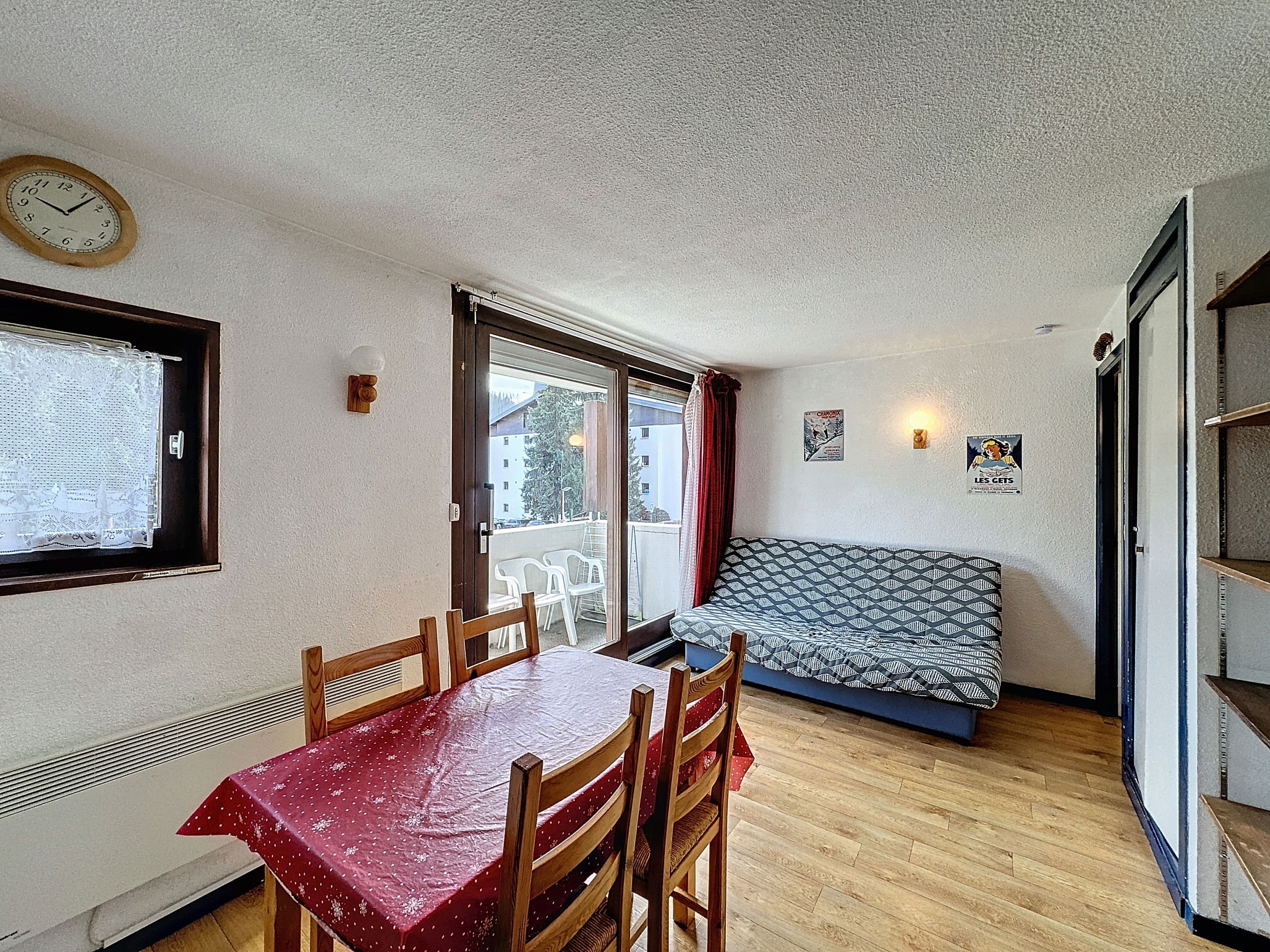 Here's a lovely opportunity in Les Gets! This cozy apartment features one bedroom and can accommodate up to 4 people. With its 26 m², this accommodation provides a snug space for a peaceful mountain getaway.