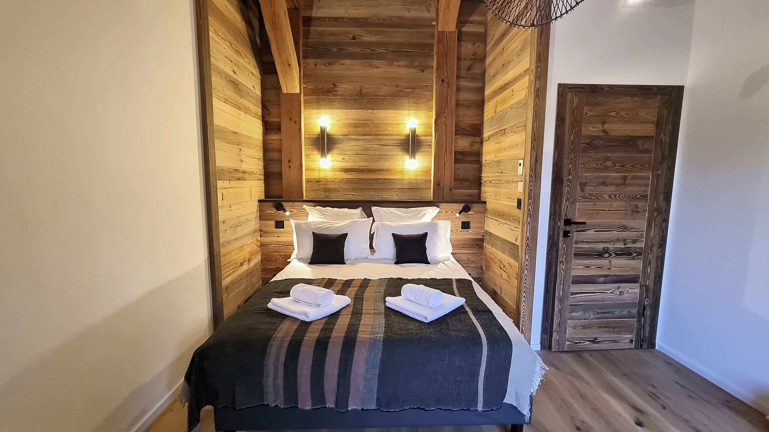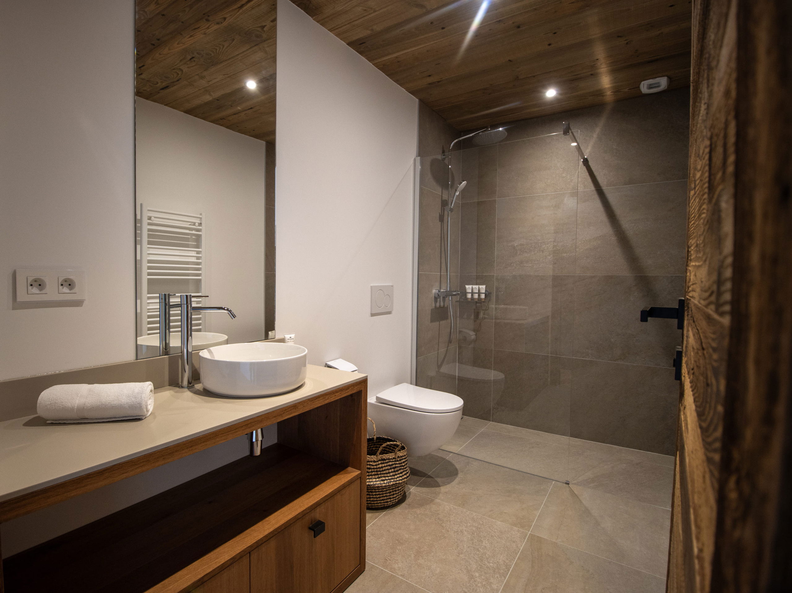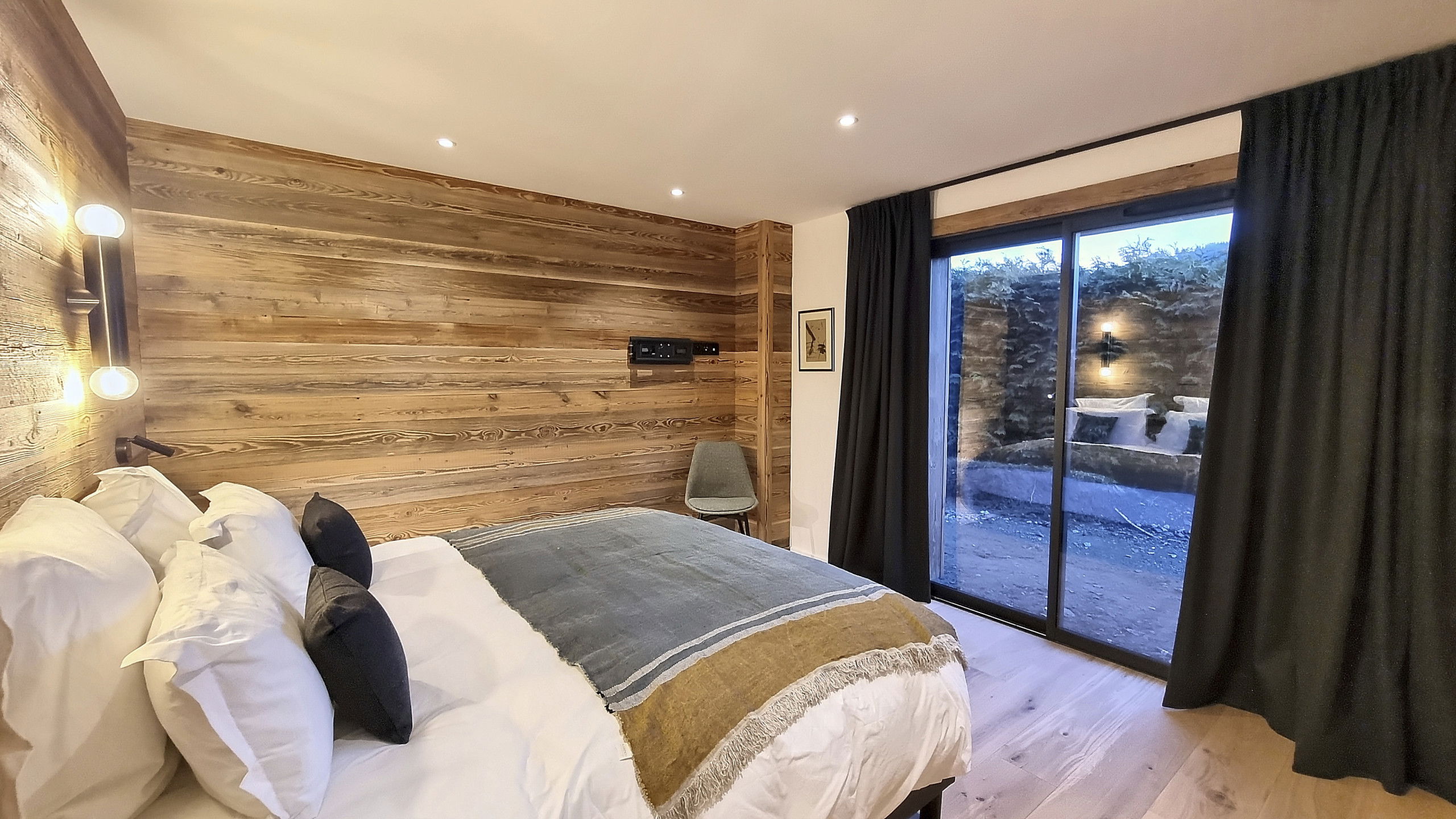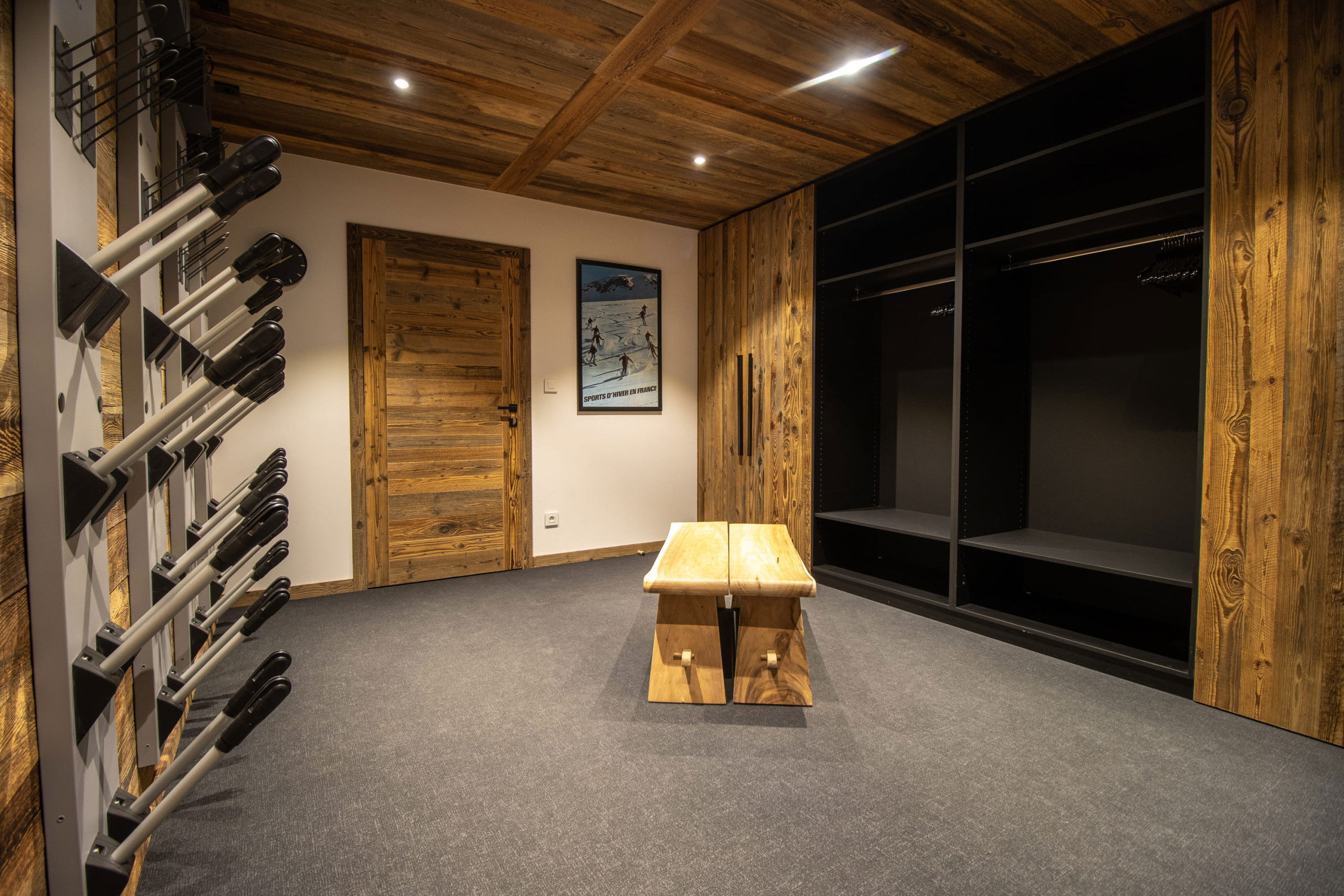 Two parking spaces in a garage equipped for recharging electric vehicles and a ski room complete the many assets of this remarkable chalet.