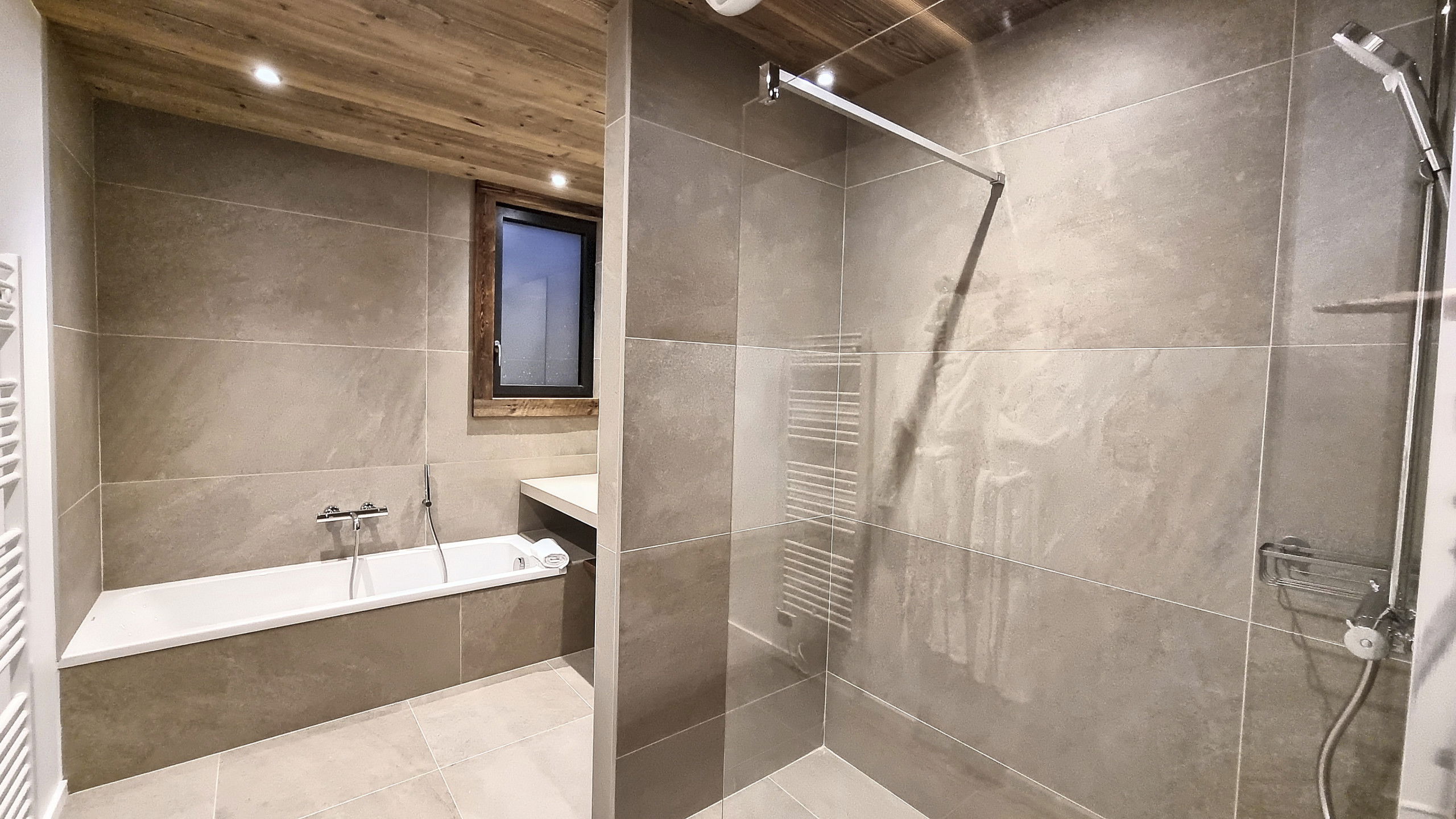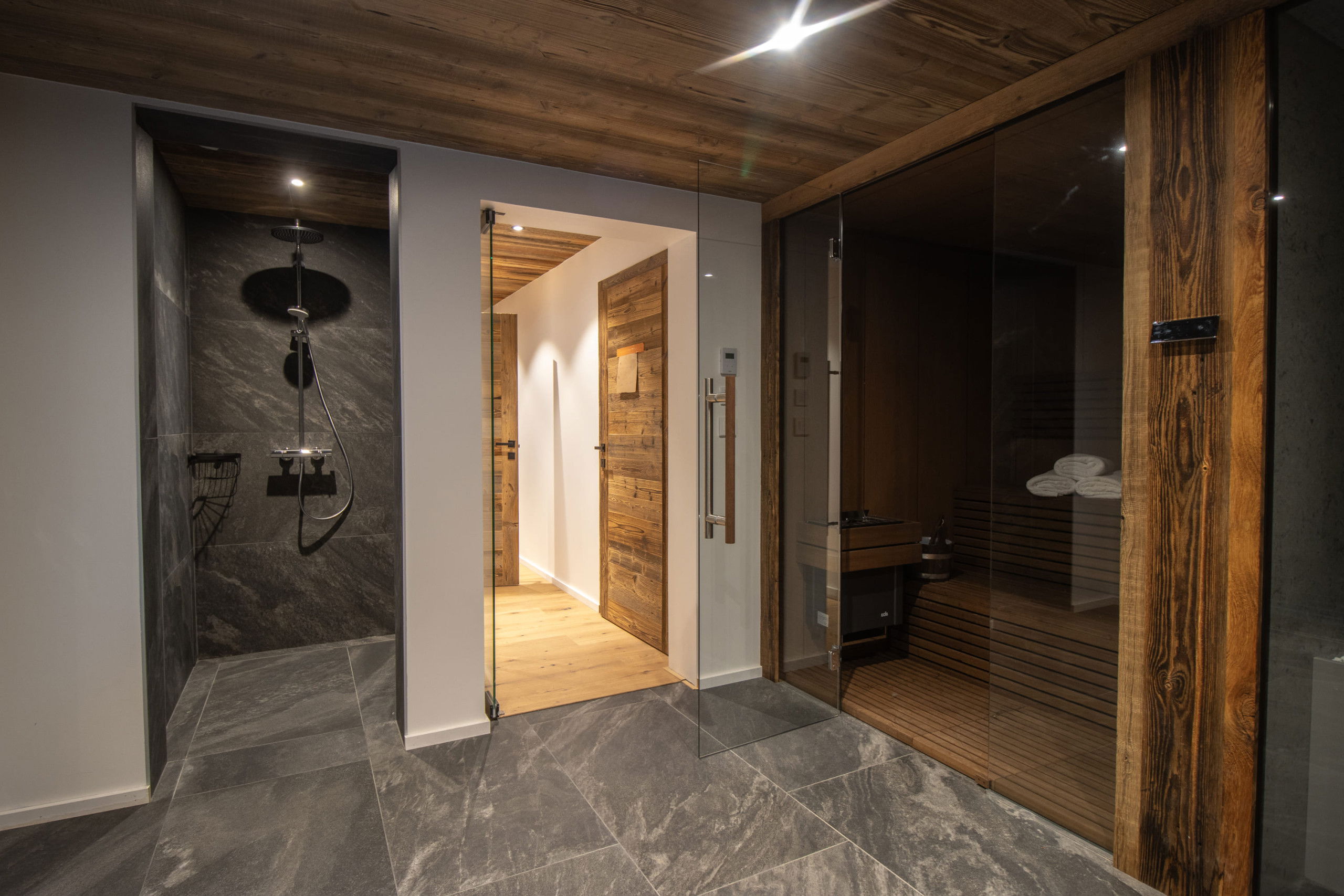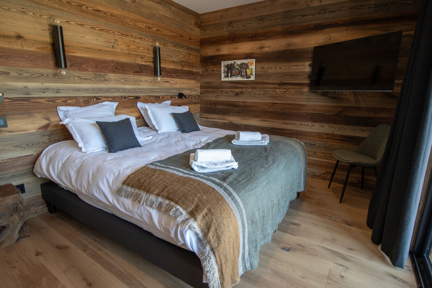 Two parking spaces in a garage equipped for recharging electric vehicles and a ski room complete the many assets of this remarkable chalet.