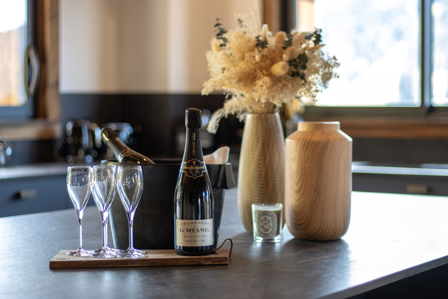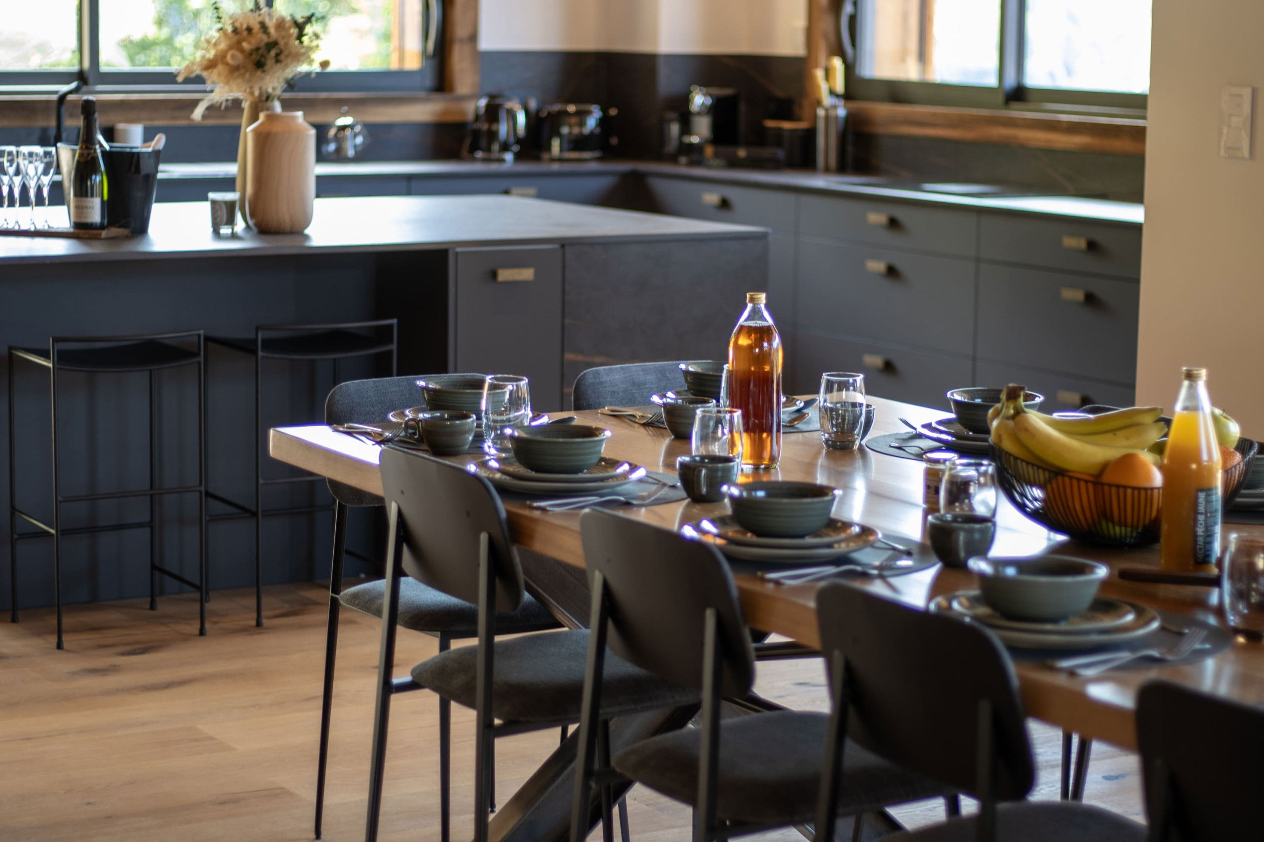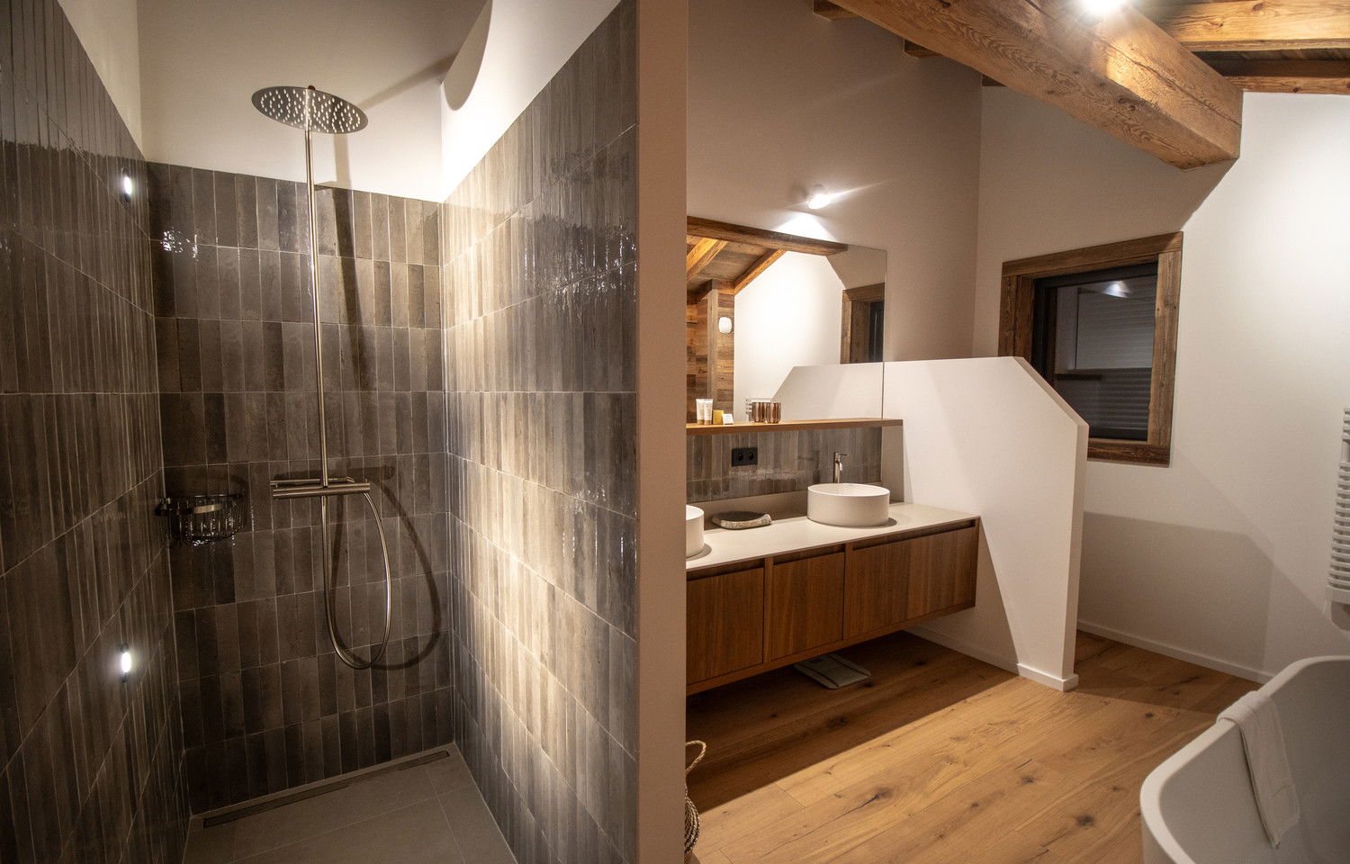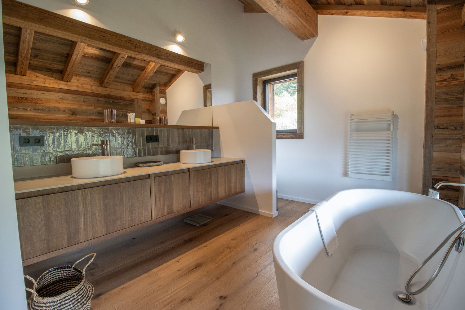 Two parking spaces in a garage equipped for recharging electric vehicles and a ski room complete the many assets of this remarkable chalet.