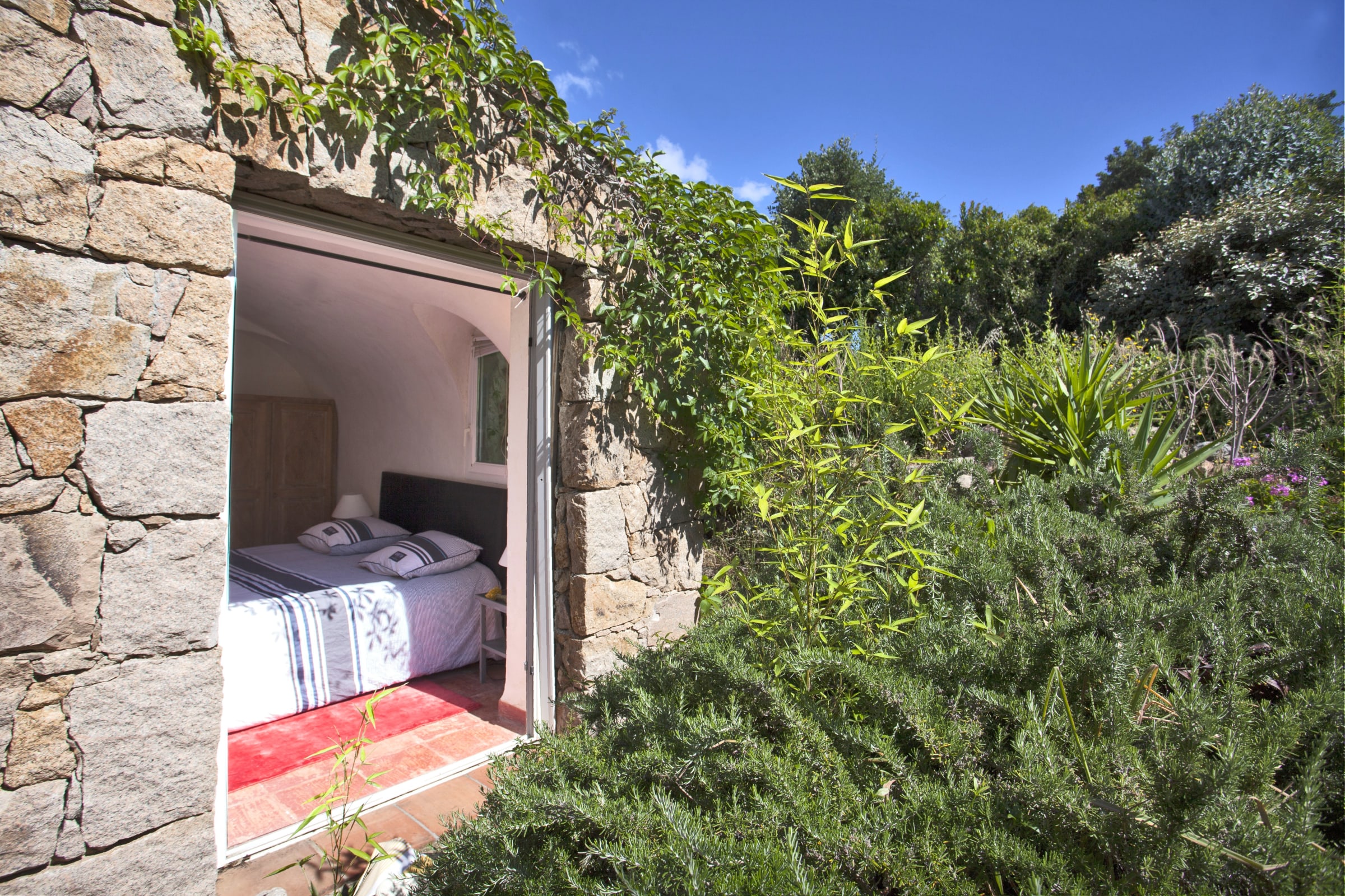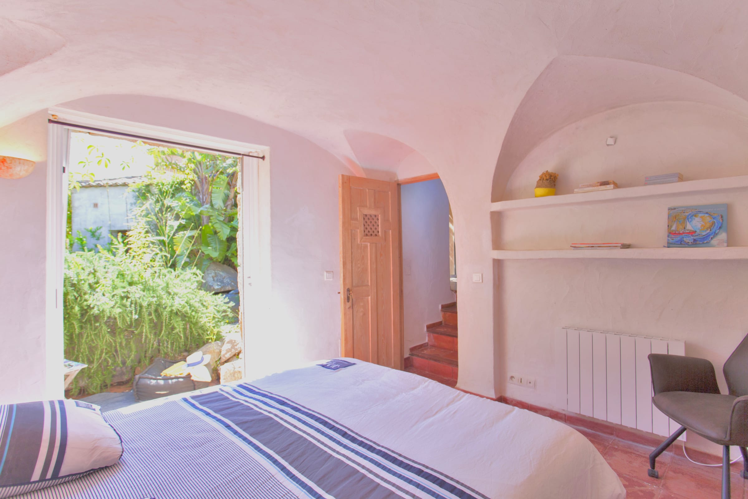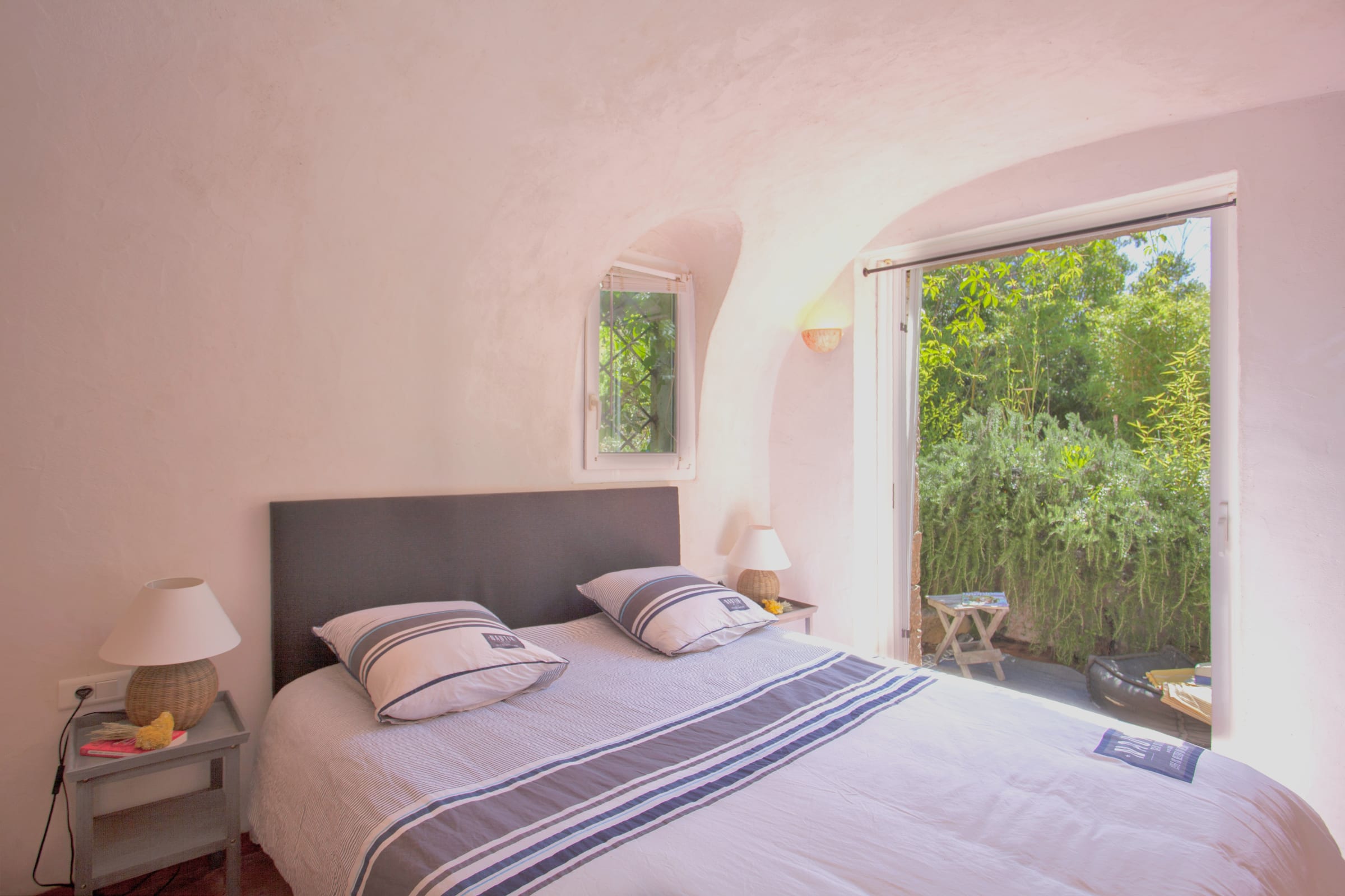 This villa seduces with its authenticity, enhanced by its various vaults, its ironwood frame from an old convent in Sardinia and its lime plaster.