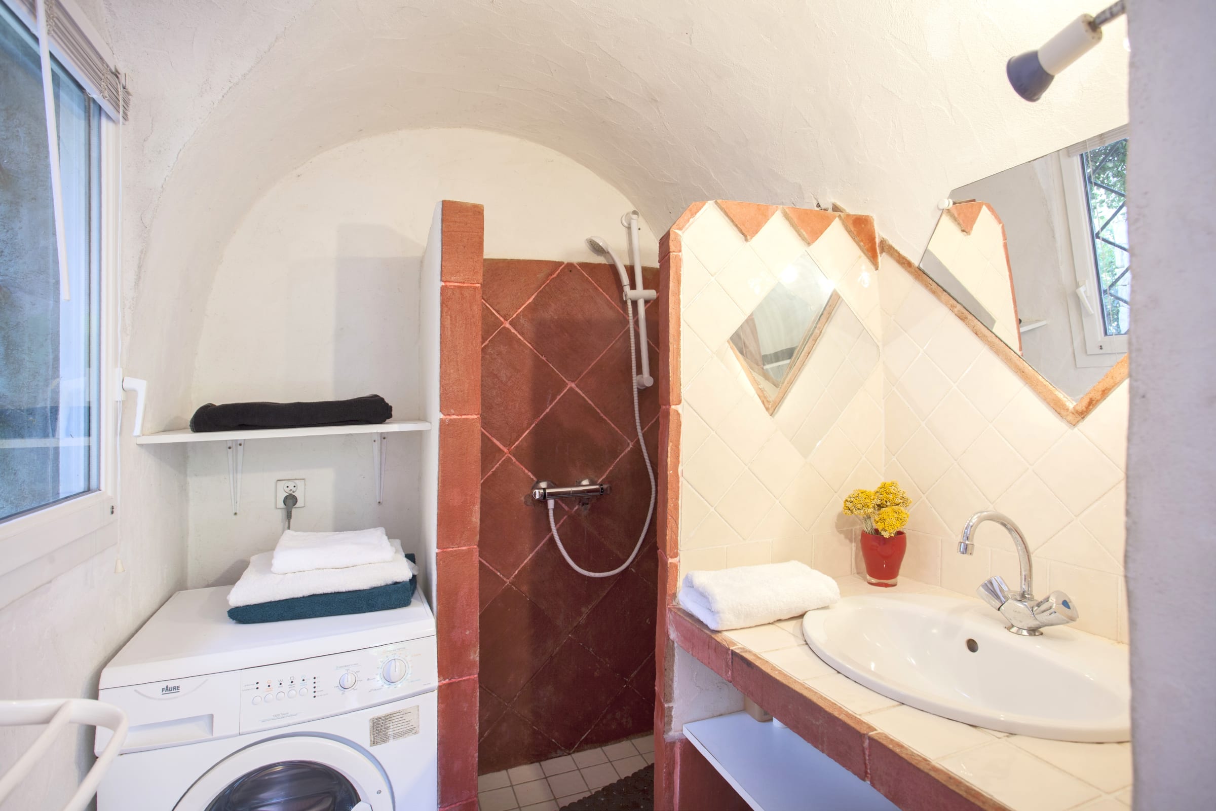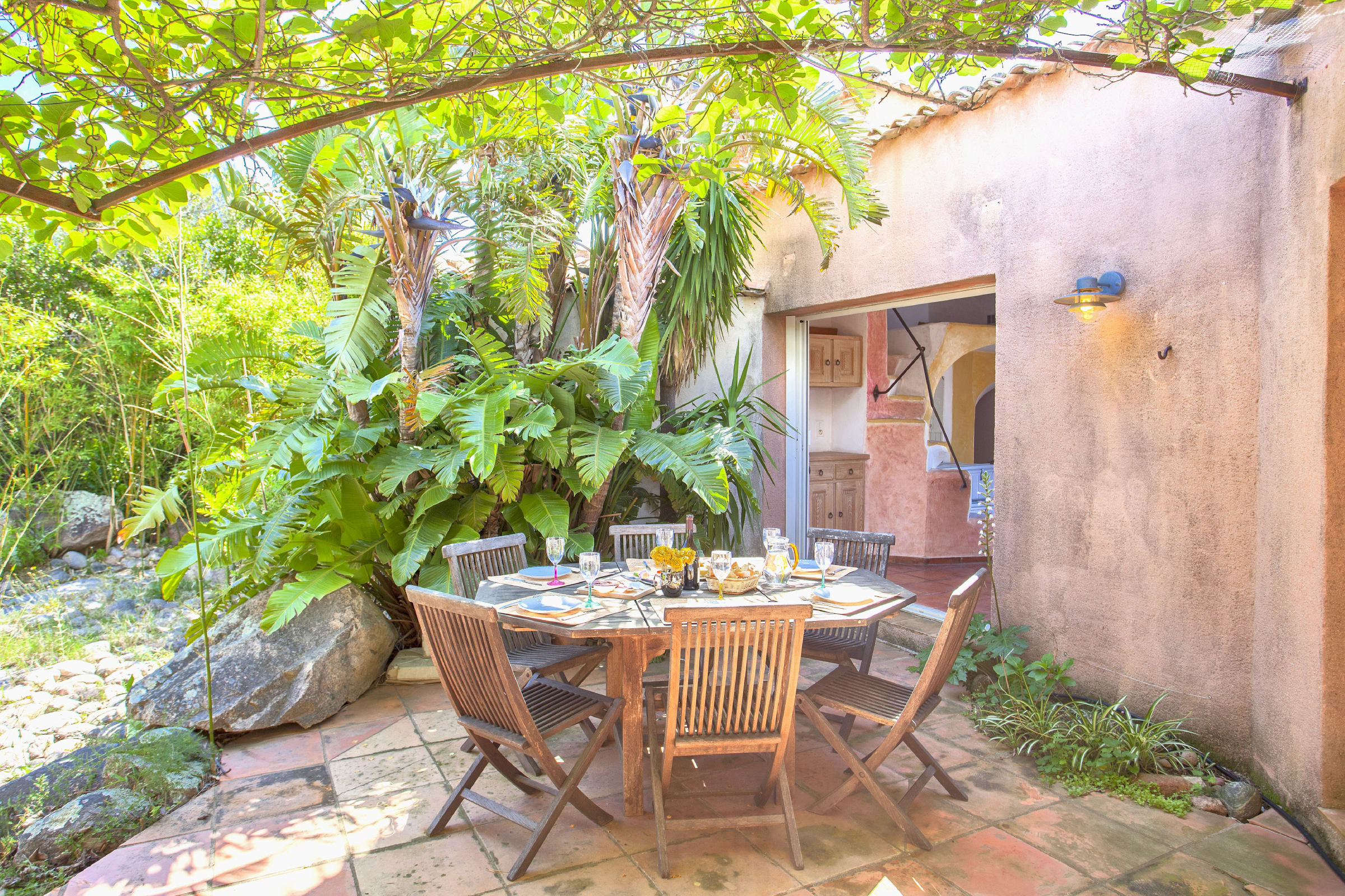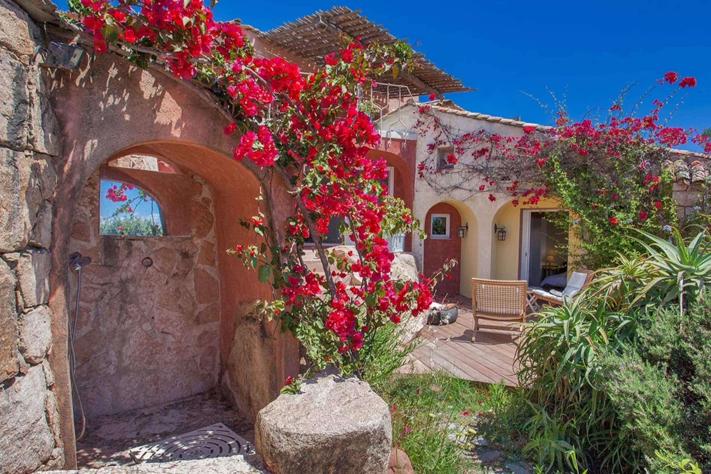 This villa seduces with its authenticity, enhanced by its various vaults, its ironwood frame from an old convent in Sardinia and its lime plaster.