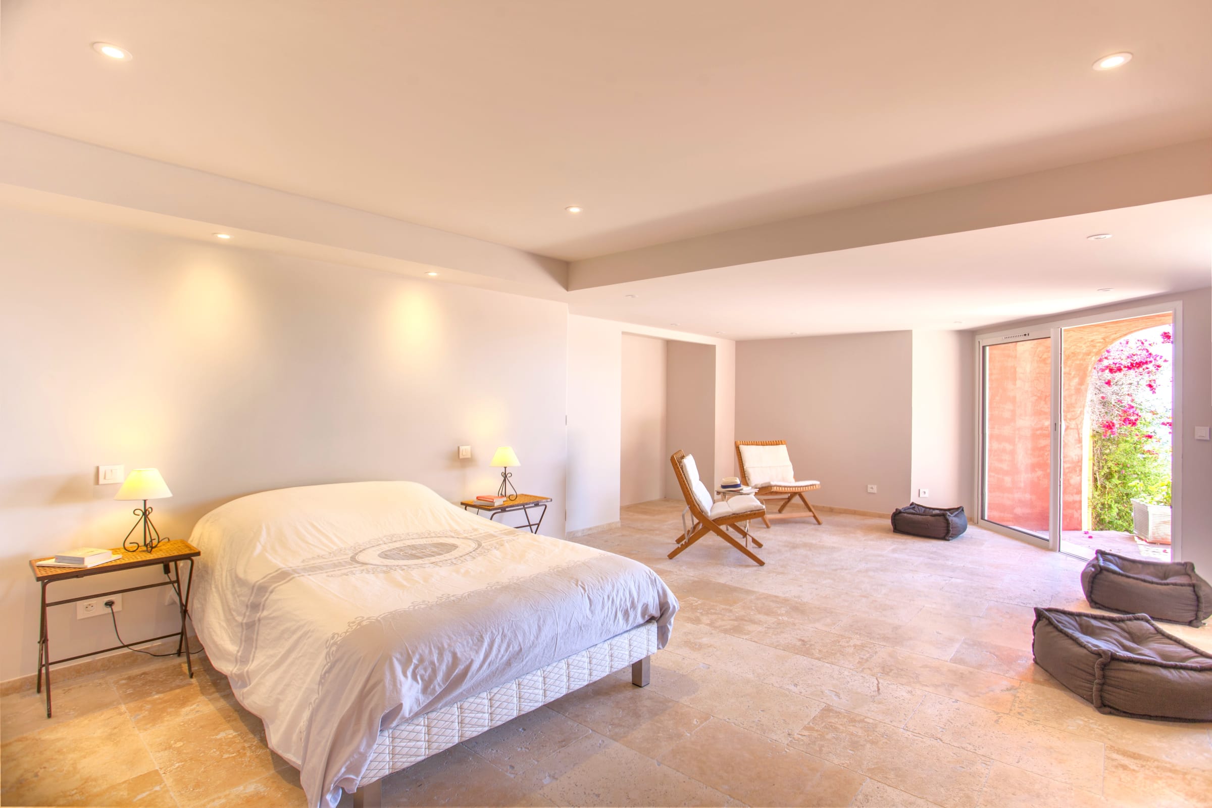 A suite opening onto a terrace is equipped with a large 200 * 200 bed, there is also a small adjoining office. This room has a bathroom with toilet.