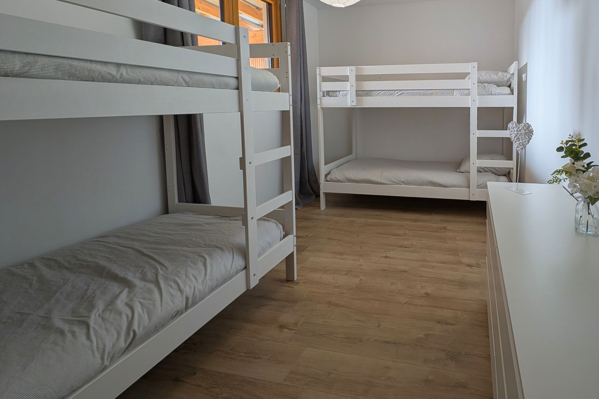 - 1 family bedroom with 2 bunk beds (90 x 200 cm) sleeping 4