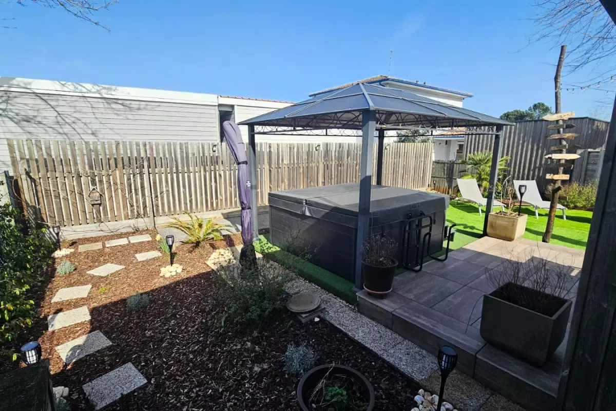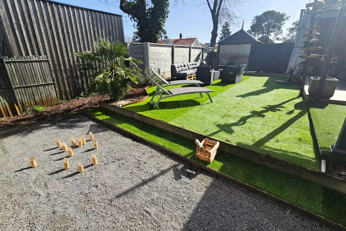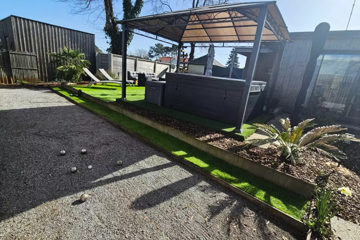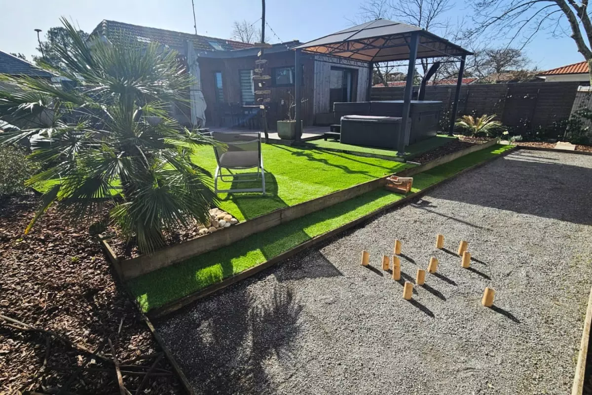 This house in La Teste-de-Buch is ideal for a comfortable and relaxing stay in a green and welcoming setting, close to Lake Cazaux and the must-see sites of the Arcachon Basin. You'll enjoy a well-maintained exterior with garden lighting (lanterns, spotlights, string lights, etc.) and spaces designed for relaxation, such as the pétanque court and the jacuzzi, available from May to September.