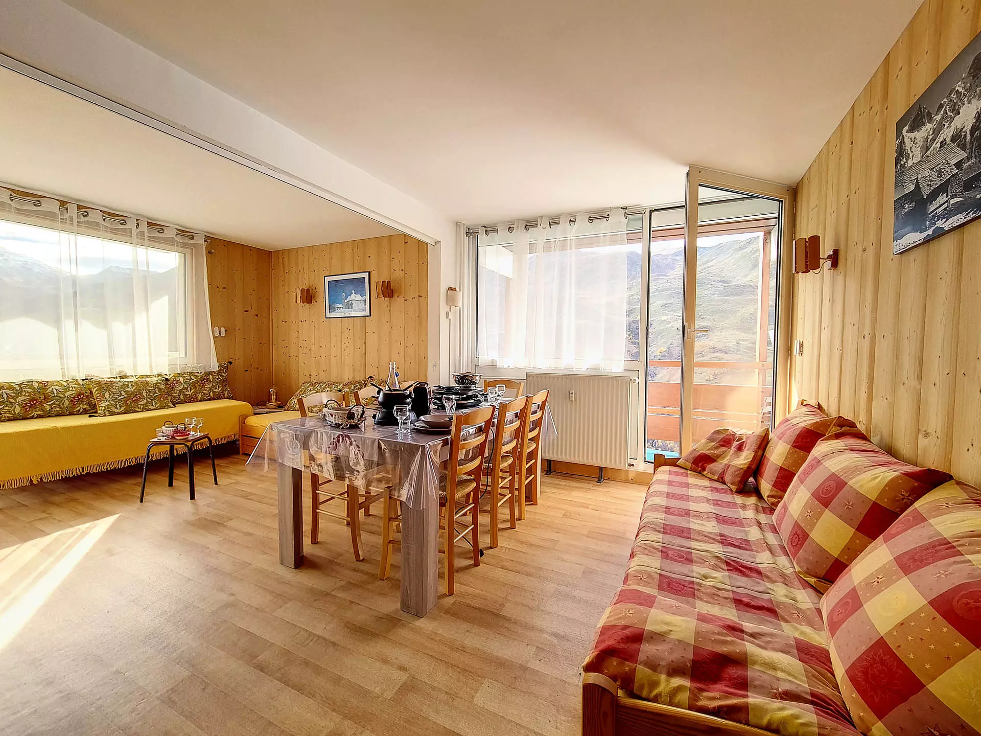 Living room: 1 single bed + 1 single pull-out bed. Equipped with a television.