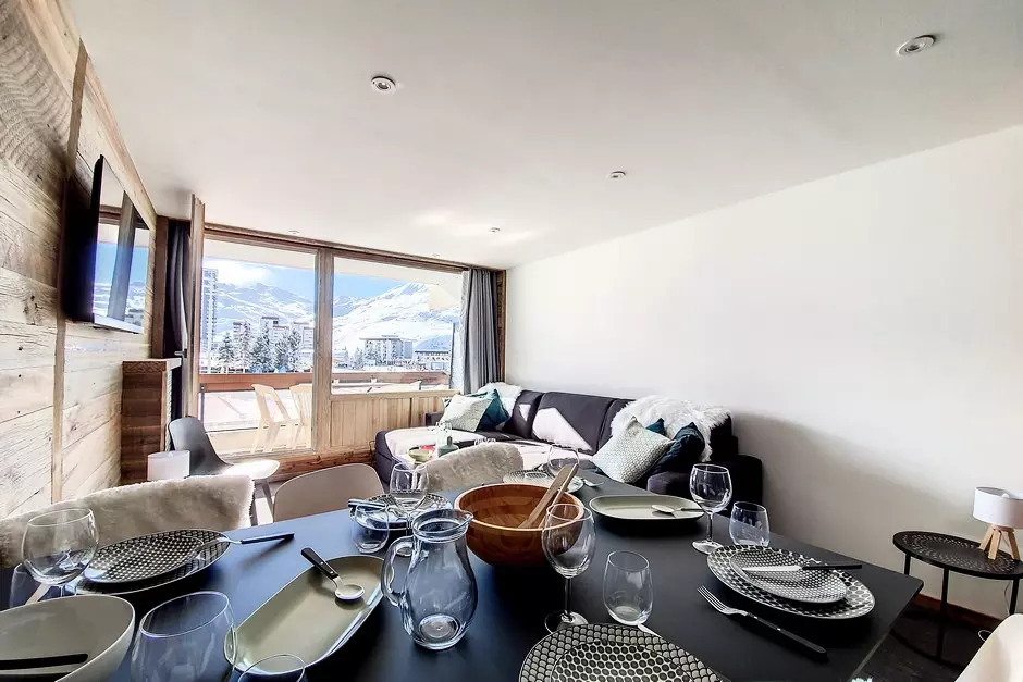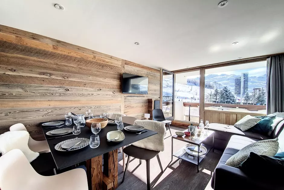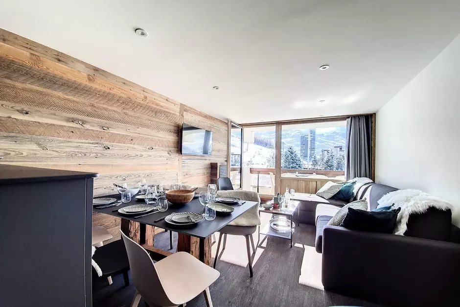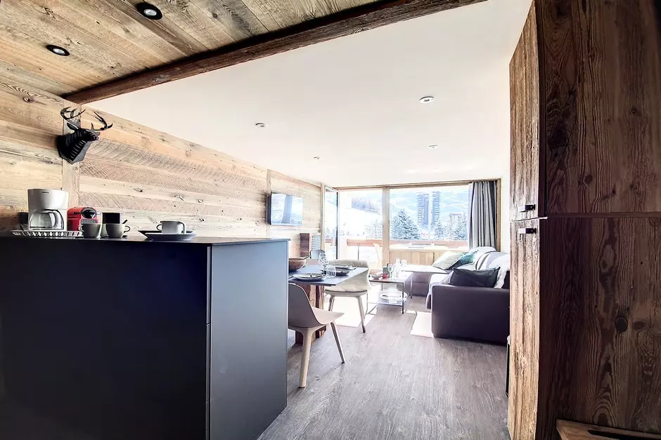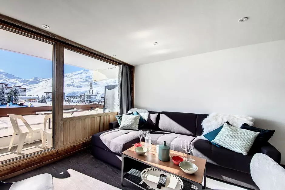 Fully renovated 2-room apartment with sleeping alcove, 40m², for 6 people with a south-facing balcony, located on the 1st floor with elevator.