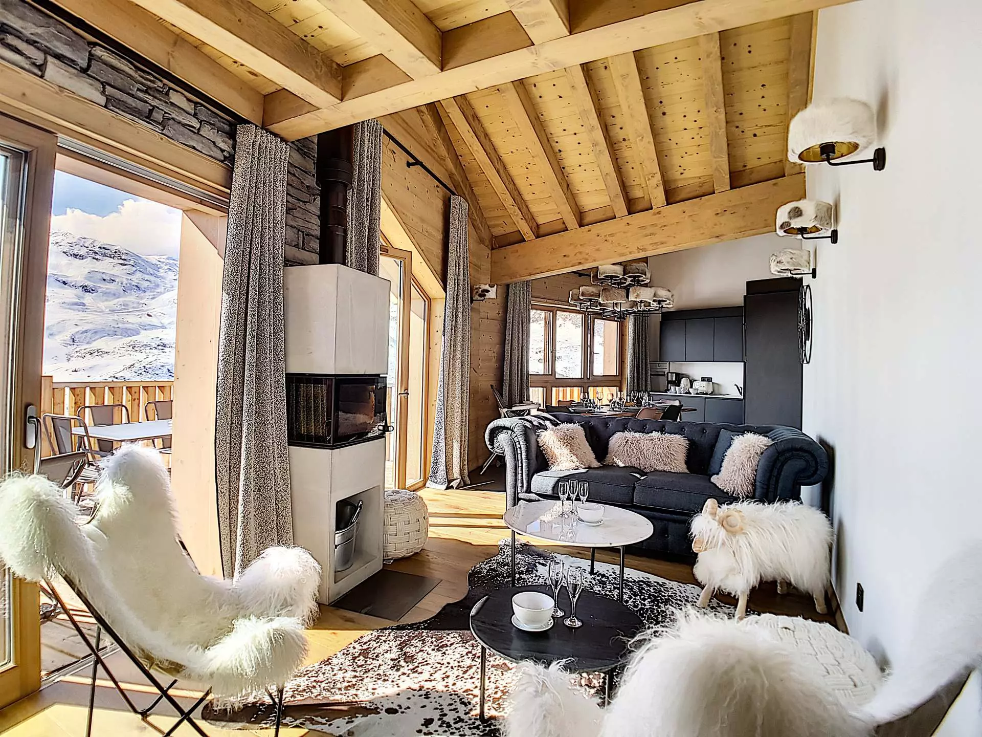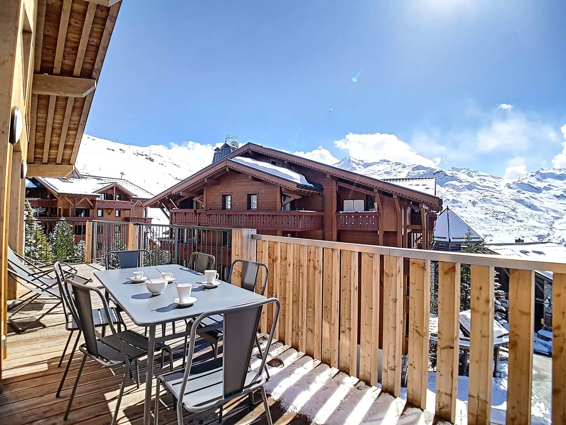 This 75m² duplex apartment sleeps 6 and enjoys a prime, sought-after location in the Reberty 2000 district: shops, ski rentals, and a ski school are right next to the residence, ski lifts are 50m away providing access to the 3 Valleys ski area, and there's a bus stop at the foot of the building. A 17m² west-facing terrace offers unobstructed views of the Pointe de la Masse and features a Jacuzzi.