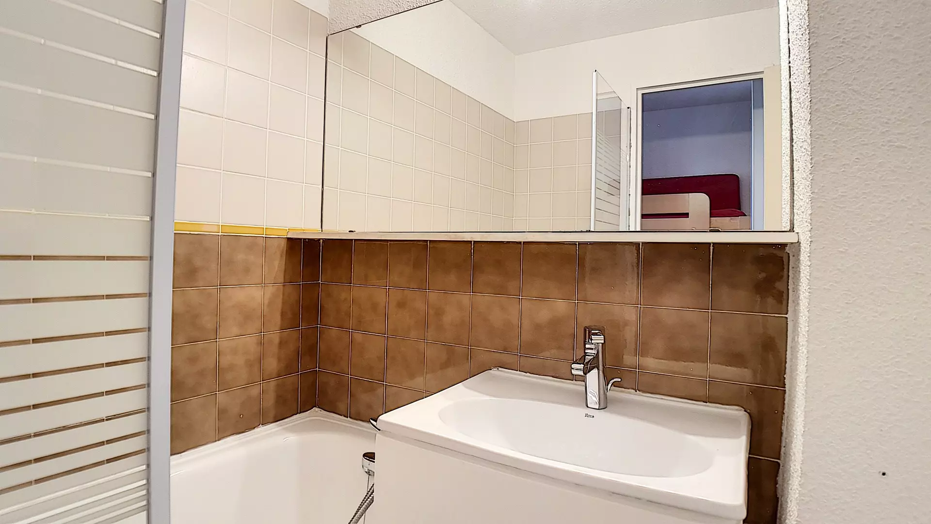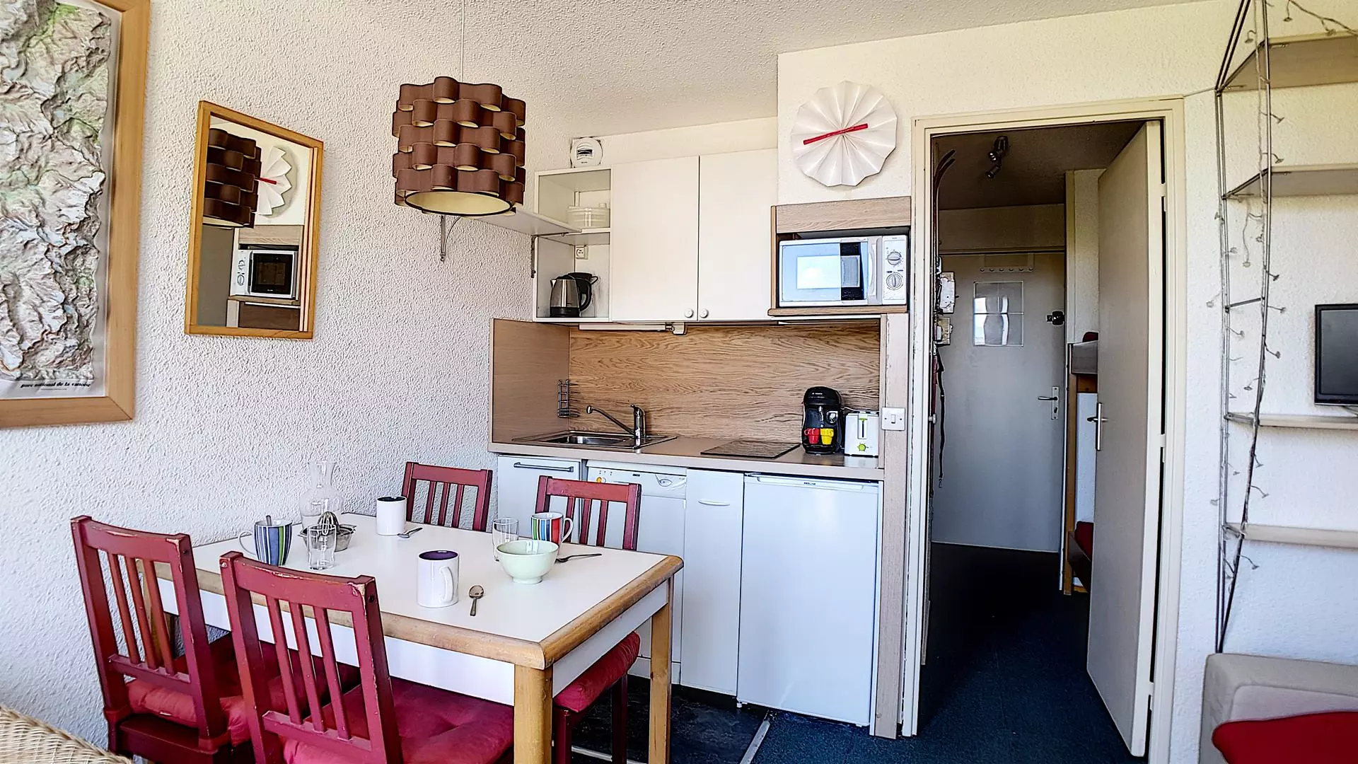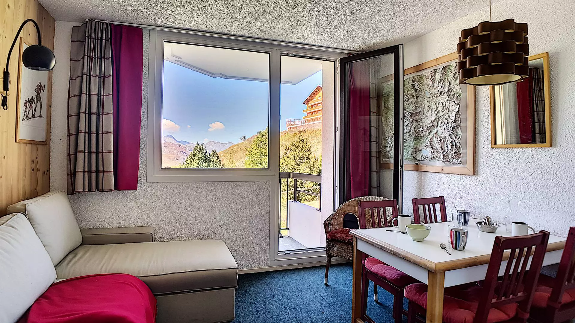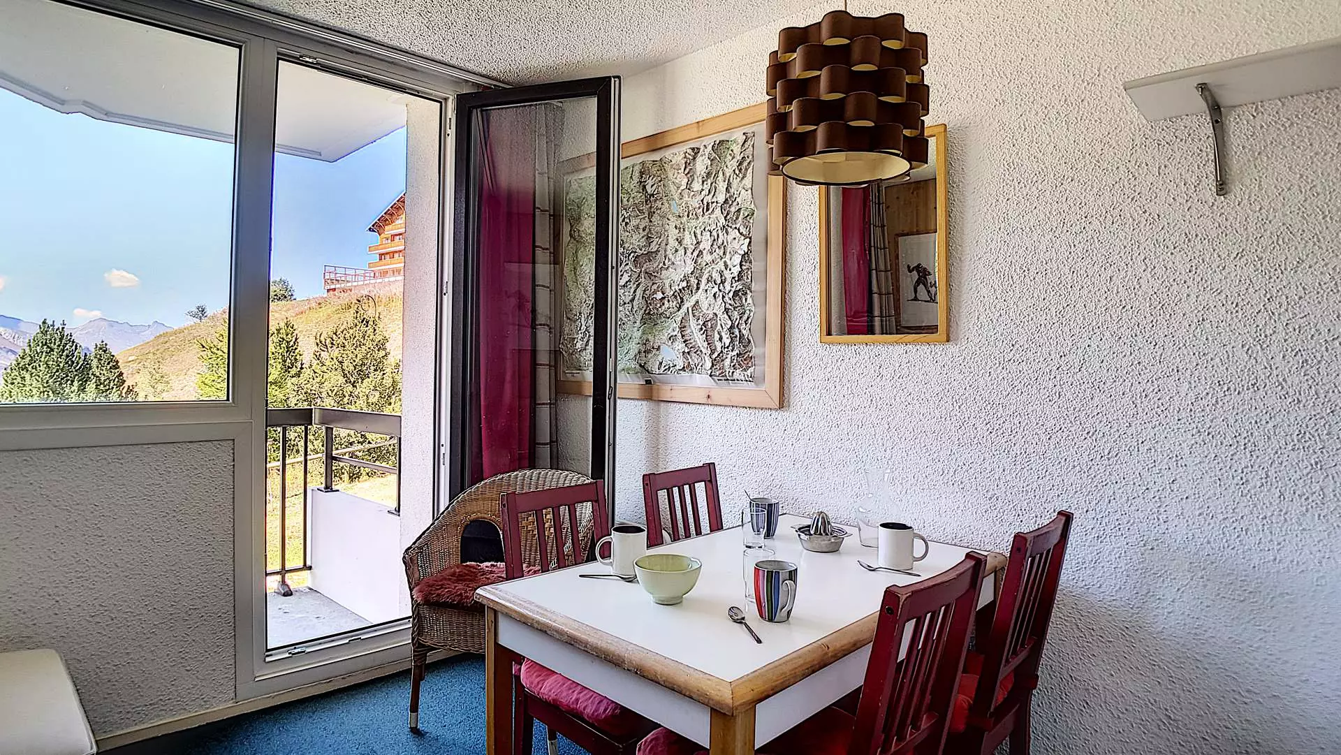 Studio apartment with sleeping alcove for 3 people. It is located on the 2nd floor with elevator and has a west-facing balcony.